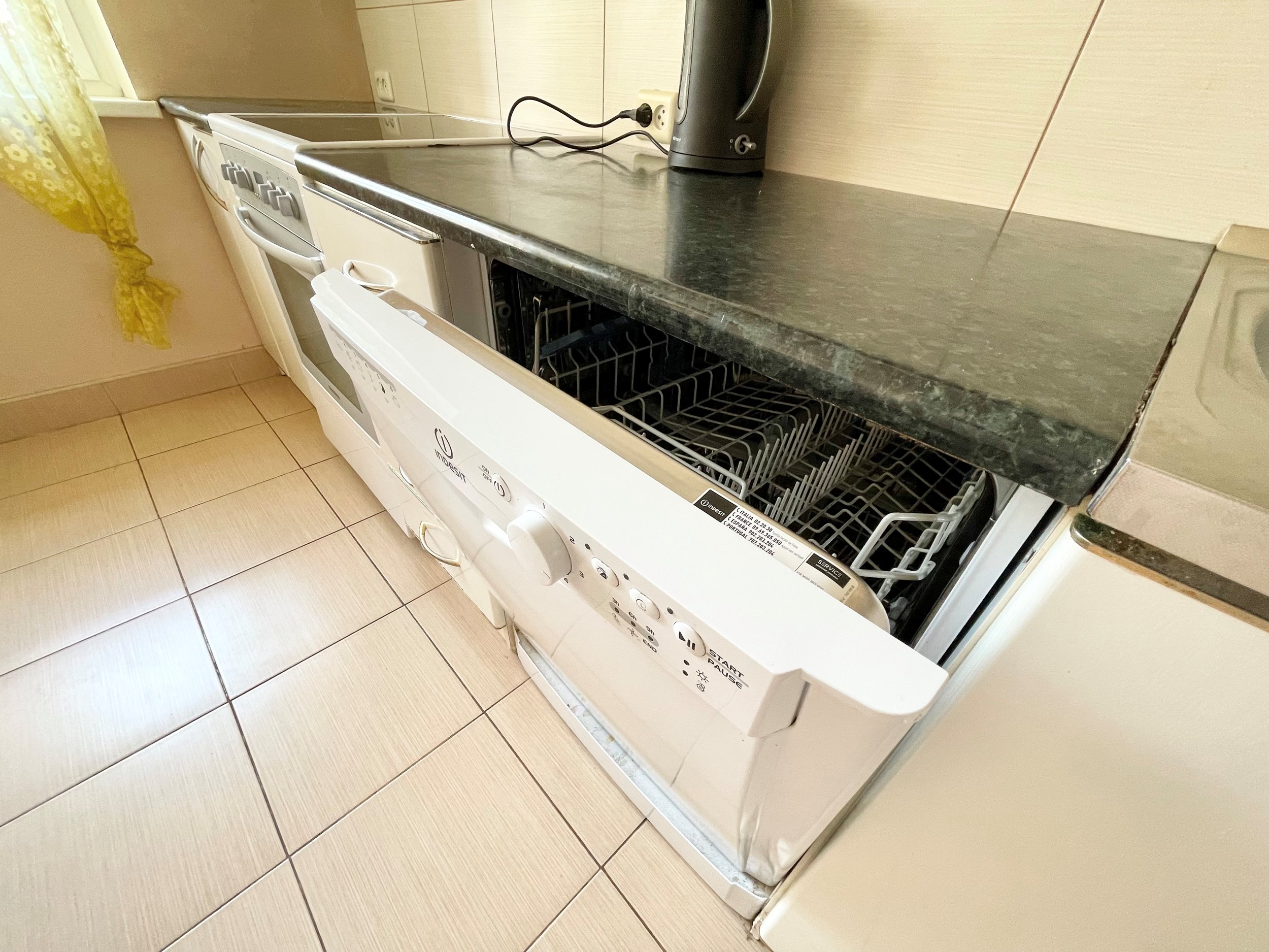 Bute yra visi reikalingiausi baldai, skalbimo mašina, indaplovė, šaldytuvas su šaldikliu, viryklė ir t.t.