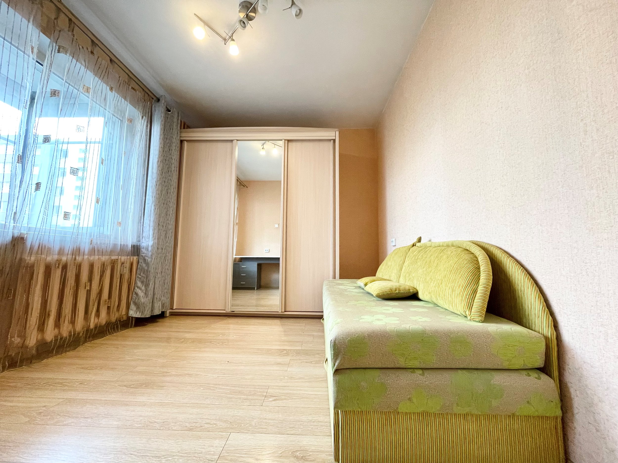 Išplanavimas: 3 kambariai, virtuvė, tualetas ir vonia atskirai, tamsus kambariukas.