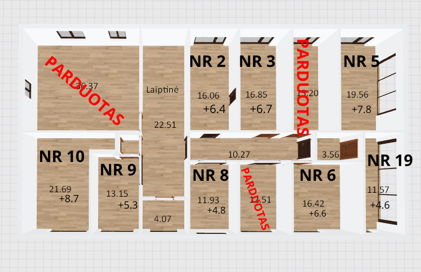 NR. 8- 16.702kv.m (11.93kv.m+ galima antresolė); Kaina- 15 000