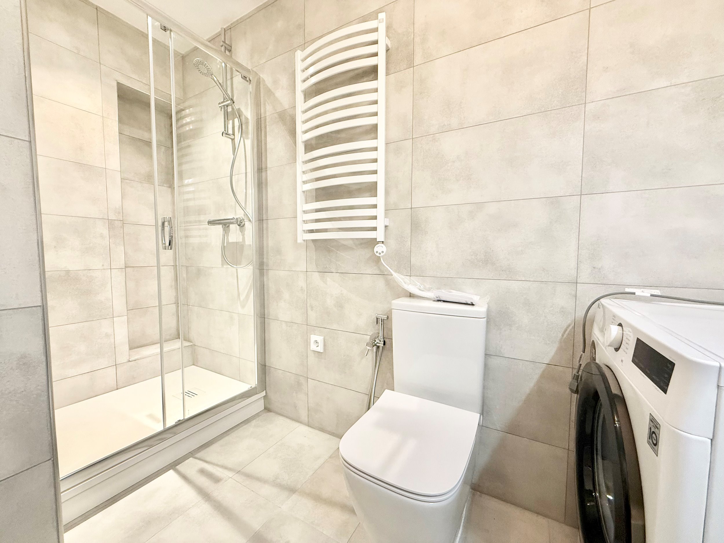 Bute yra visi reikalingiausi baldai, sofa, skalbimo mašina su džiovinimo funkcija, indaplovė, šaldytuvas su šaldikliu, viryklė ir t.t.