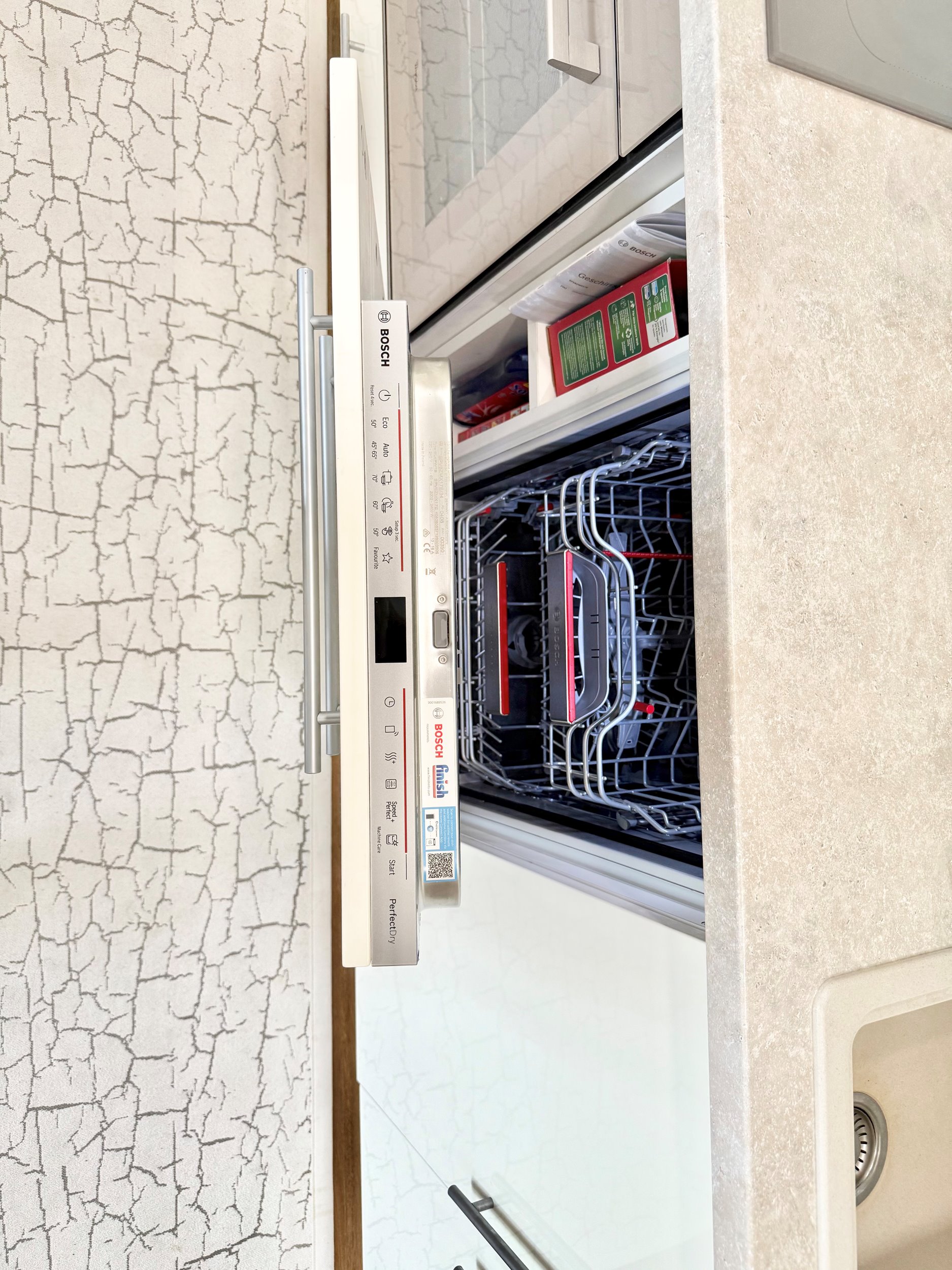 Bute yra visi reikalingiausi baldai, sofa-lova, skalbimo mašina, indaplovė, šaldytuvas su šaldikliu, viryklė ir t.t.