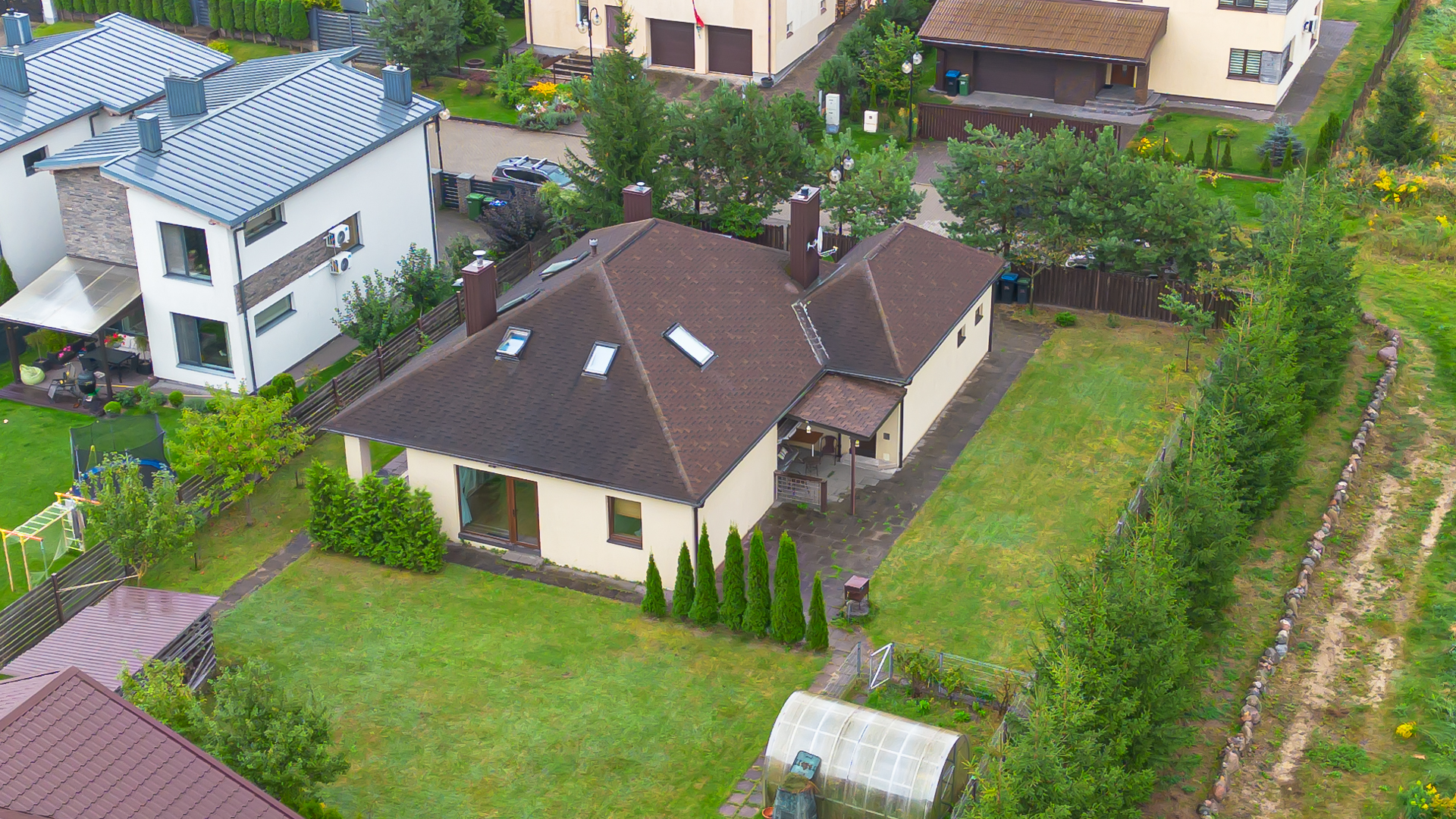 Ramioje, labai gražioje vietoje, Pilaitėje, išnuomojamas įrengtas 166 kv.m. ploto, 5 kambarių individualus namas su garažu bei 10 arų kraštiniu sklypu.