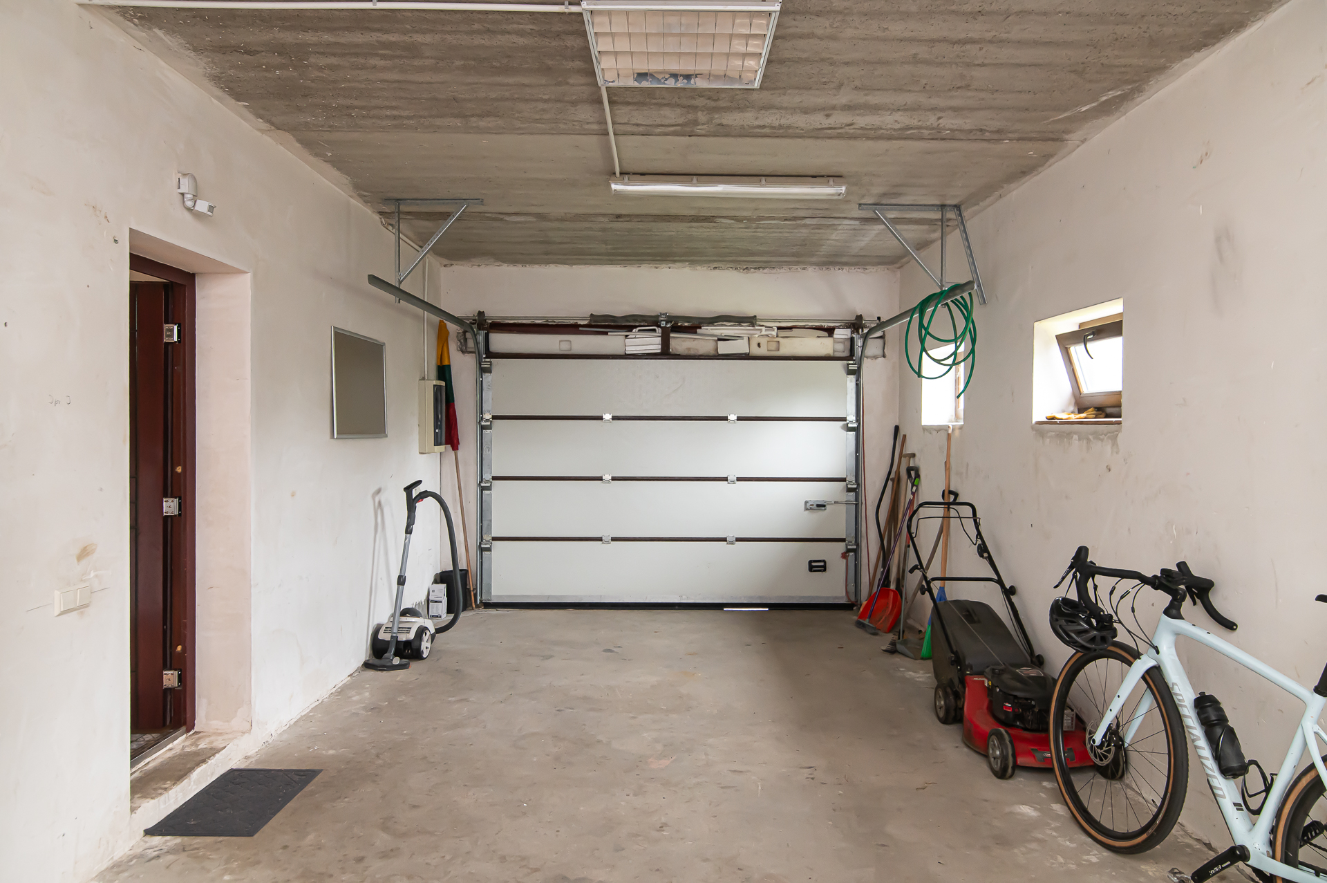 1 aukštas- svetainė sujungta su virtuve, vonios kambarys ir dušas kartu, darbo kambarys, skalbimo kambarys su katiline, garažas, terasa.