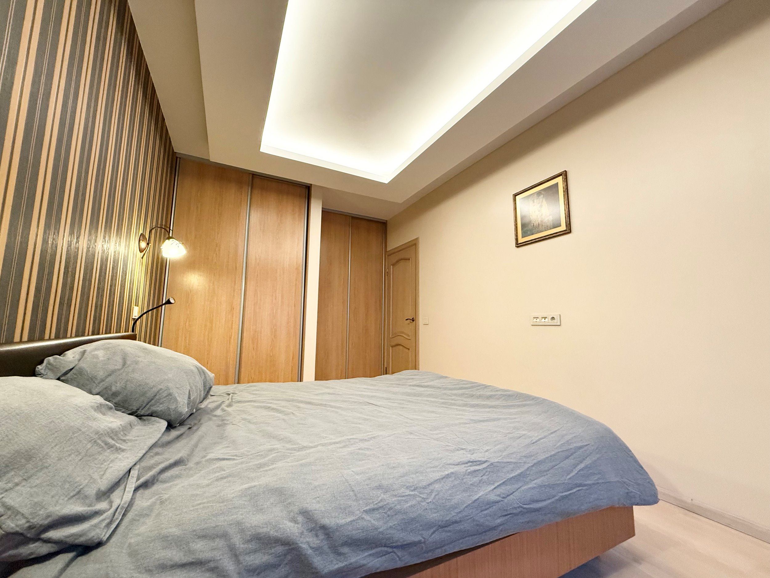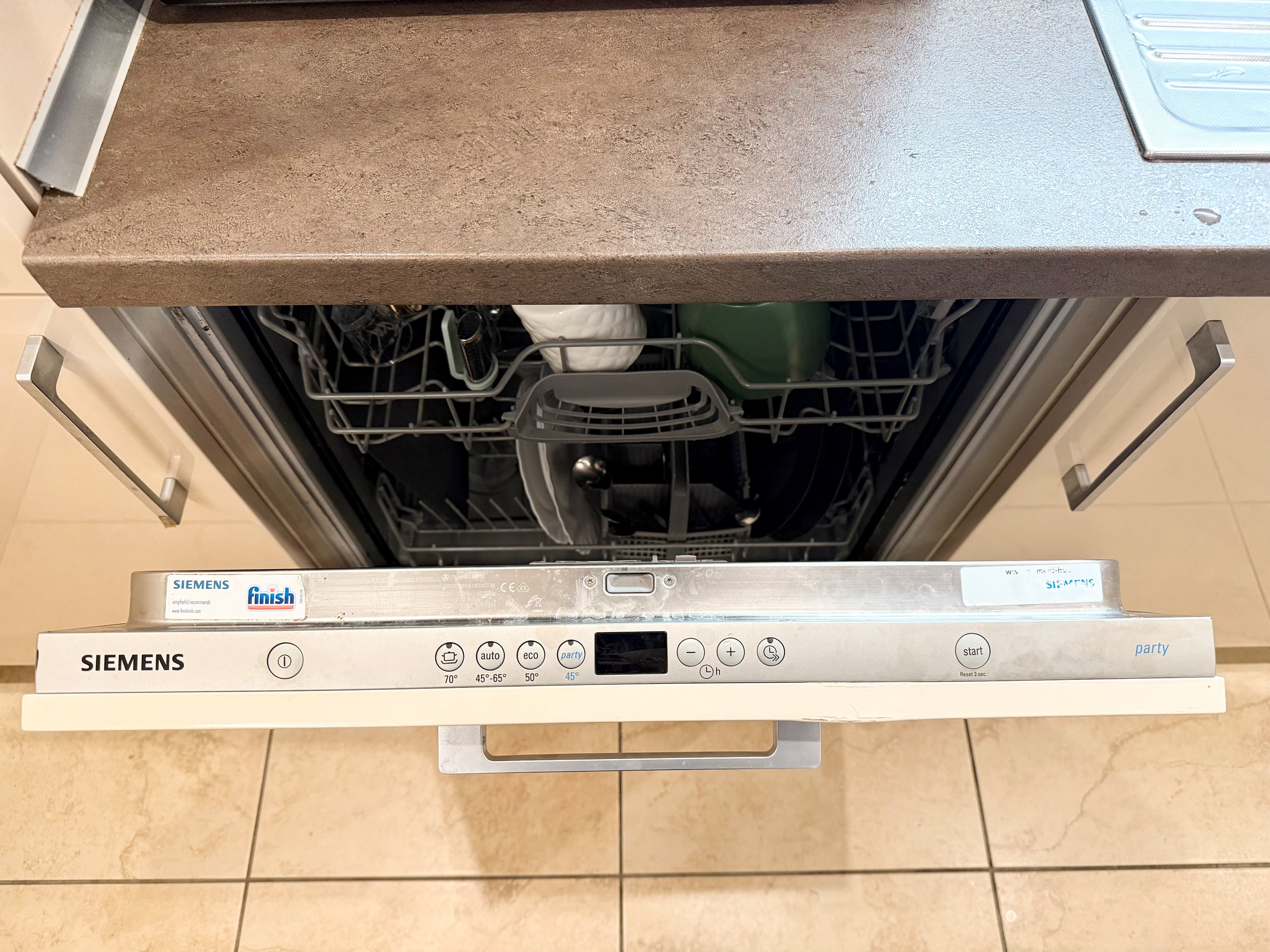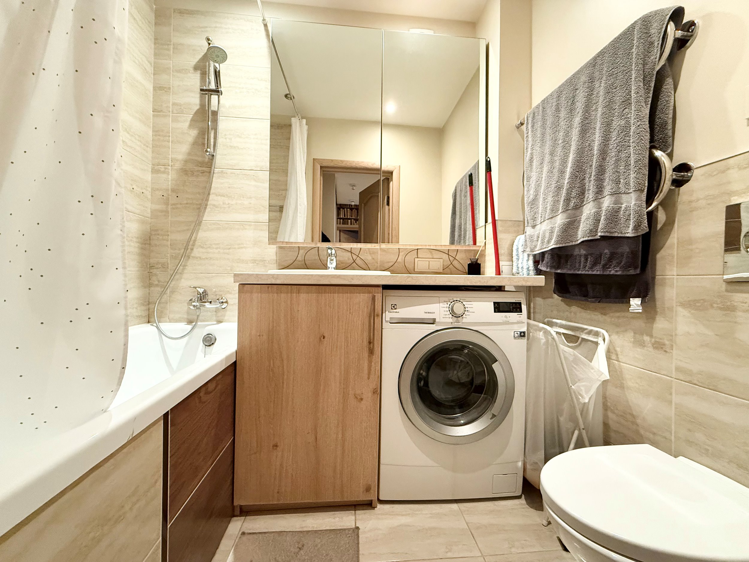 Bute yra visi reikalingiausi baldai, sofa-lova, skalbimo mašina su džiovykle, šaldytuvas, indaplovė, viryklė ir t.t.