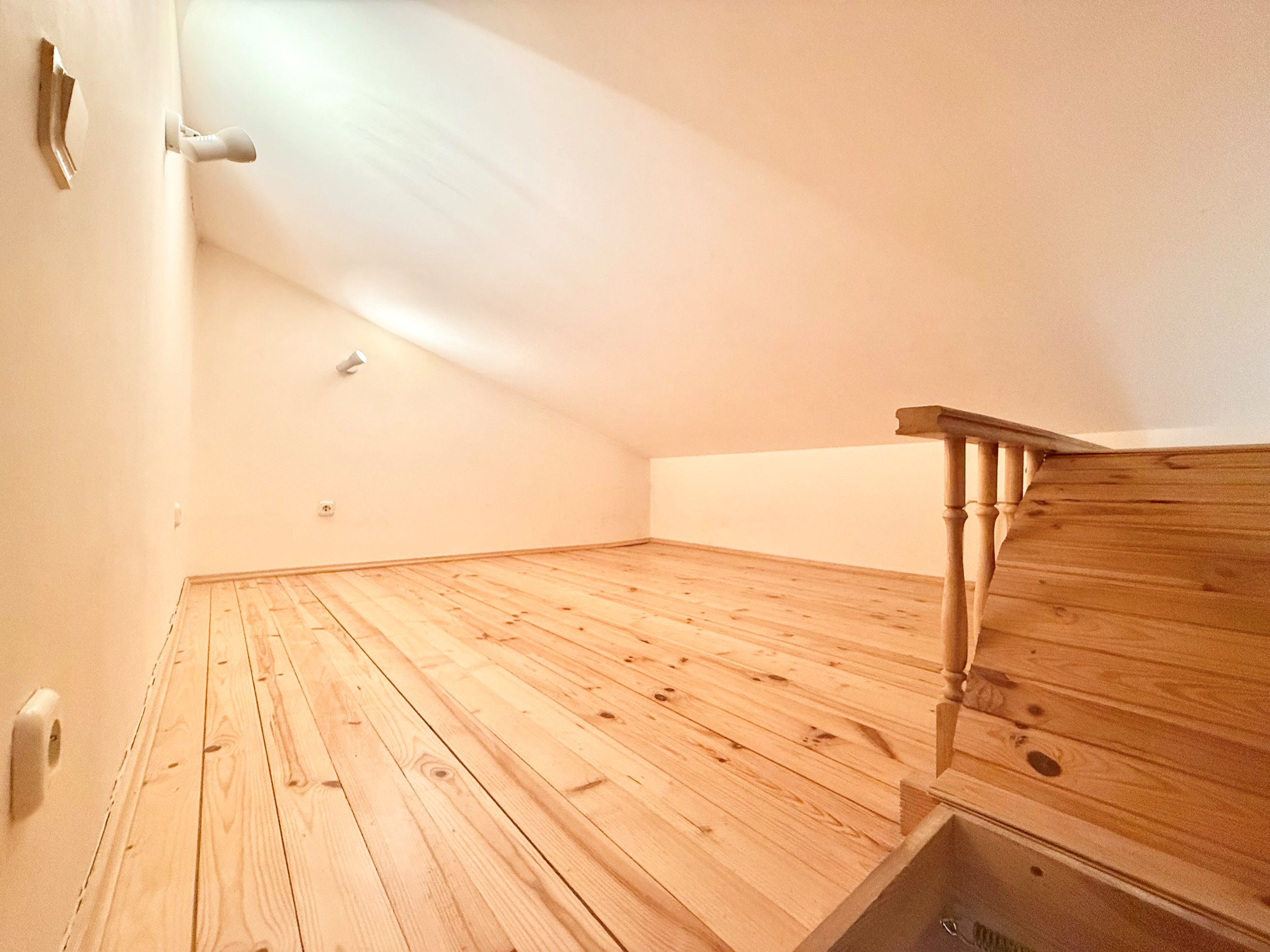 Išplanavimas: svetainė/virtuvė, miegamasis, kambarys, vonios kambarys ir vonia kartu, antresolė.