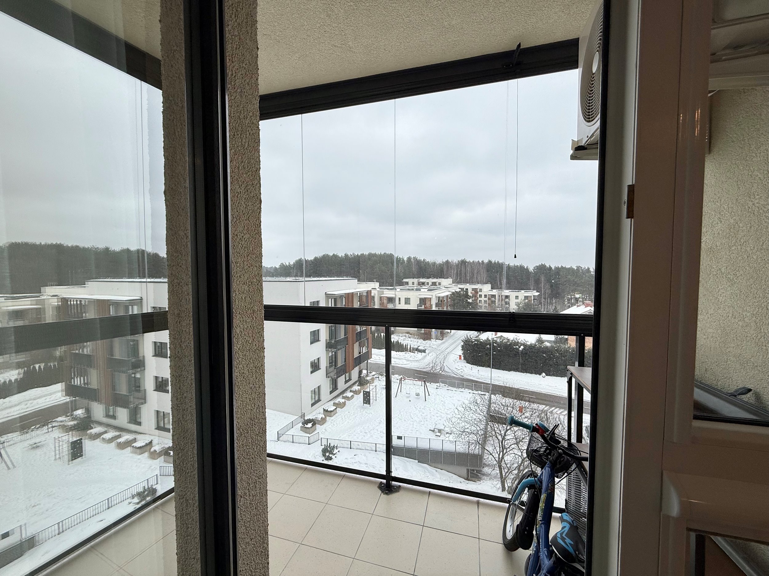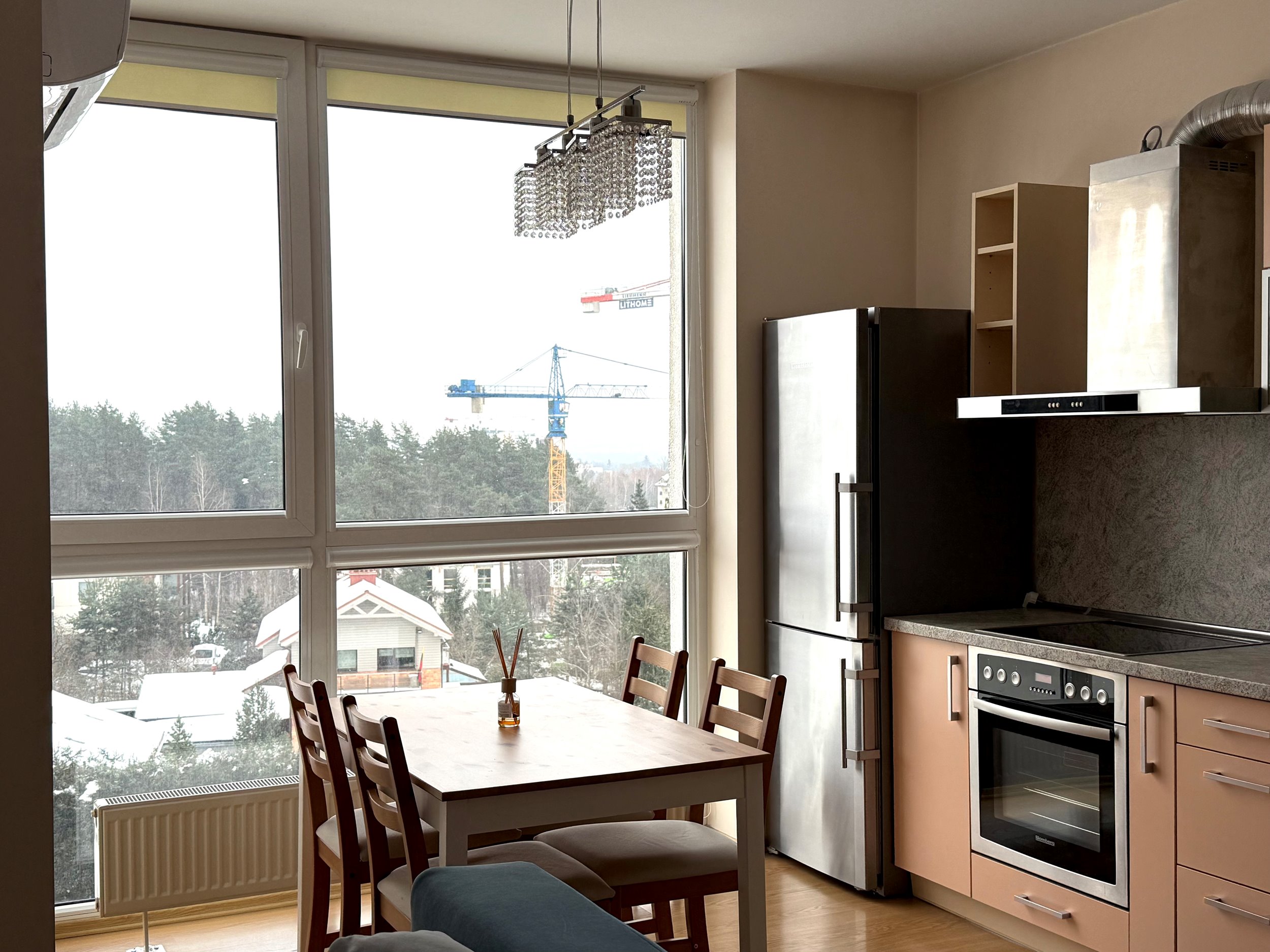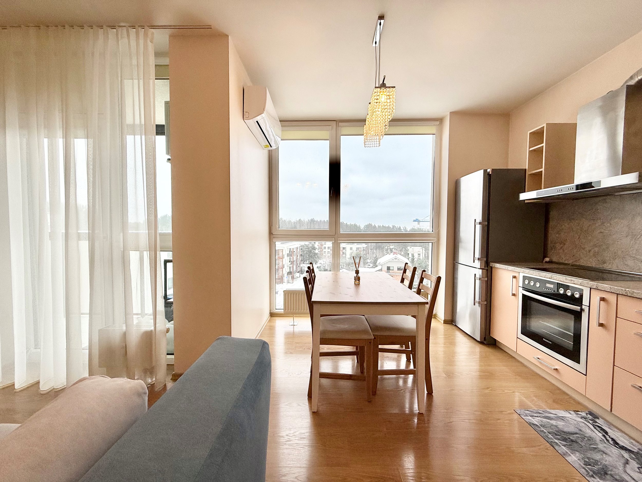 Puikioje, gražioje vietoje, Bajoruose, išnuomojamas jaukus ir šviesus 57 kv. m ploto, 2 kambarių butas su panoraminiais langais ir vaizdu į mišką.