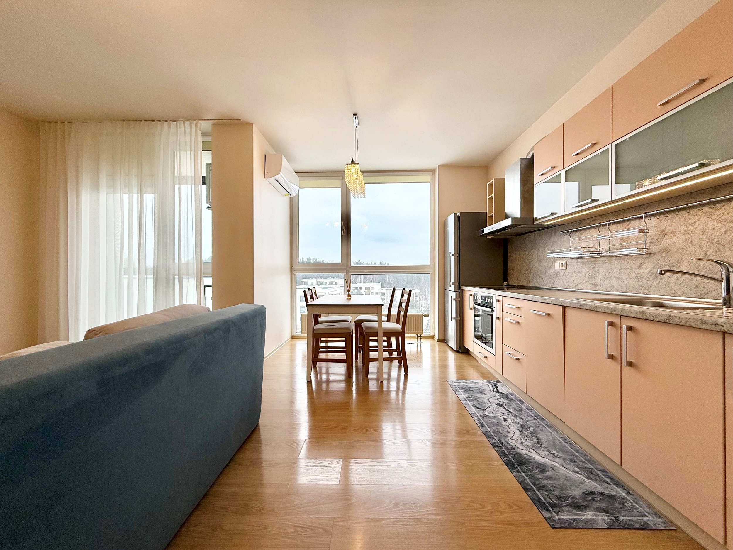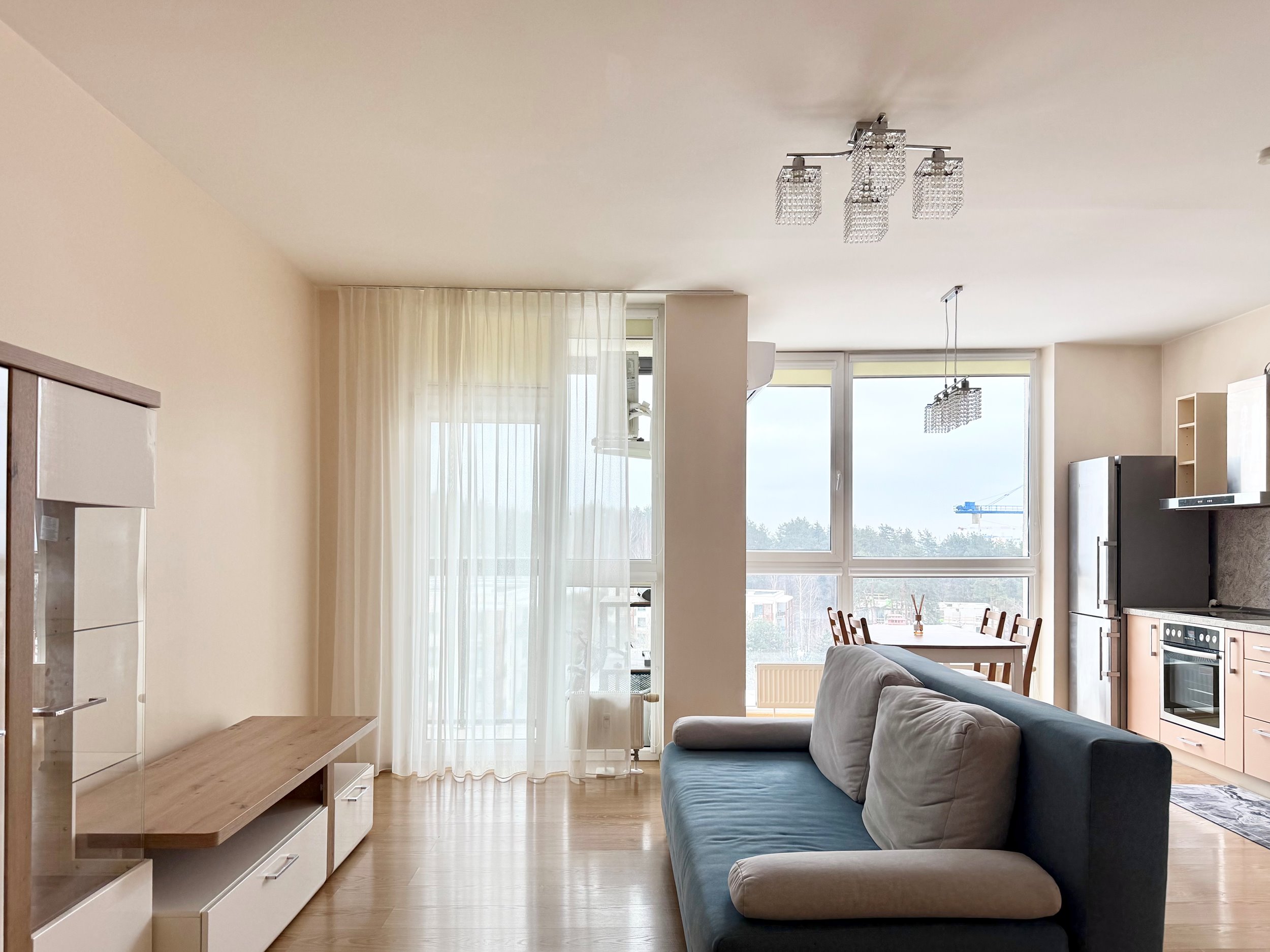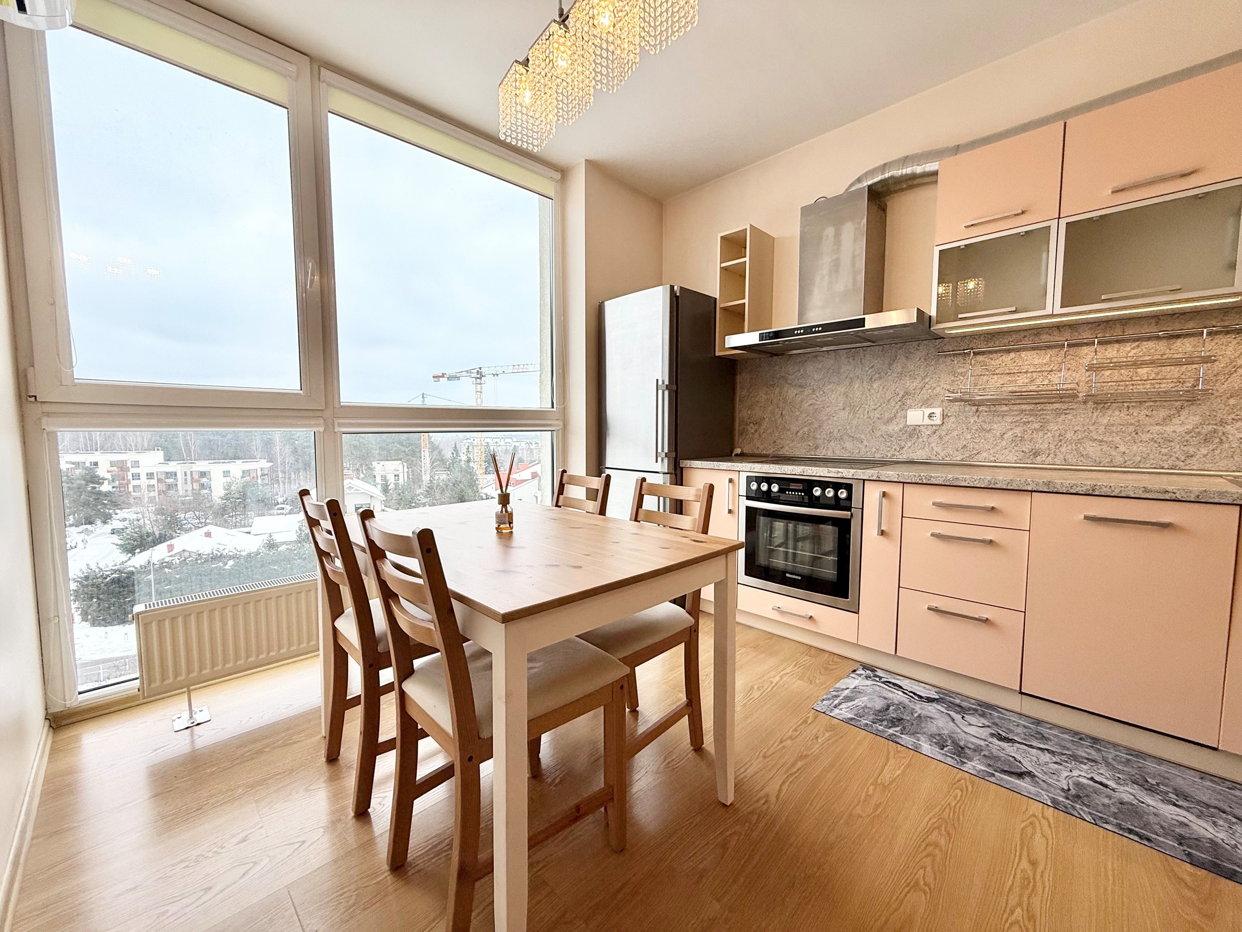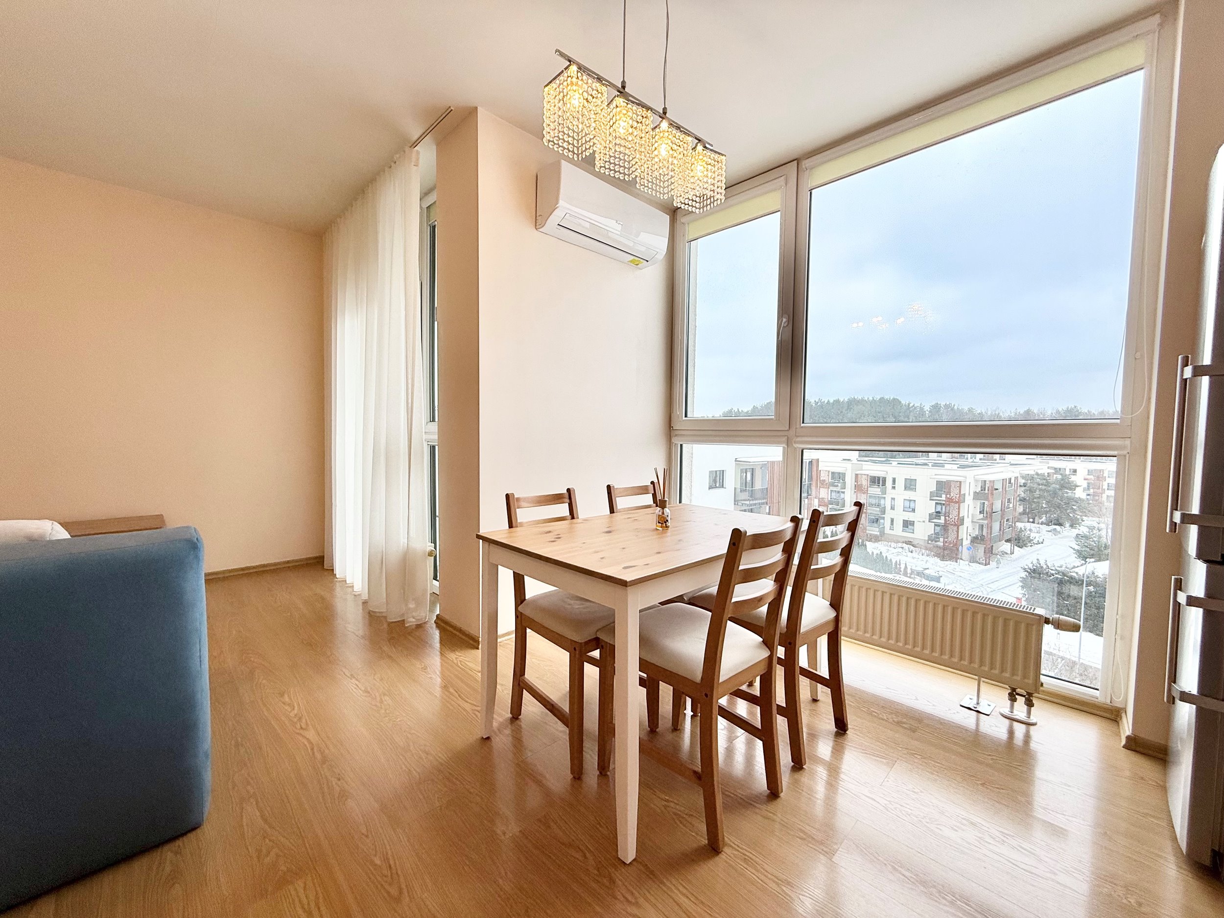 Puikioje, gražioje vietoje, Bajoruose, išnuomojamas jaukus ir šviesus 57 kv. m ploto, 2 kambarių butas su panoraminiais langais ir vaizdu į mišką.