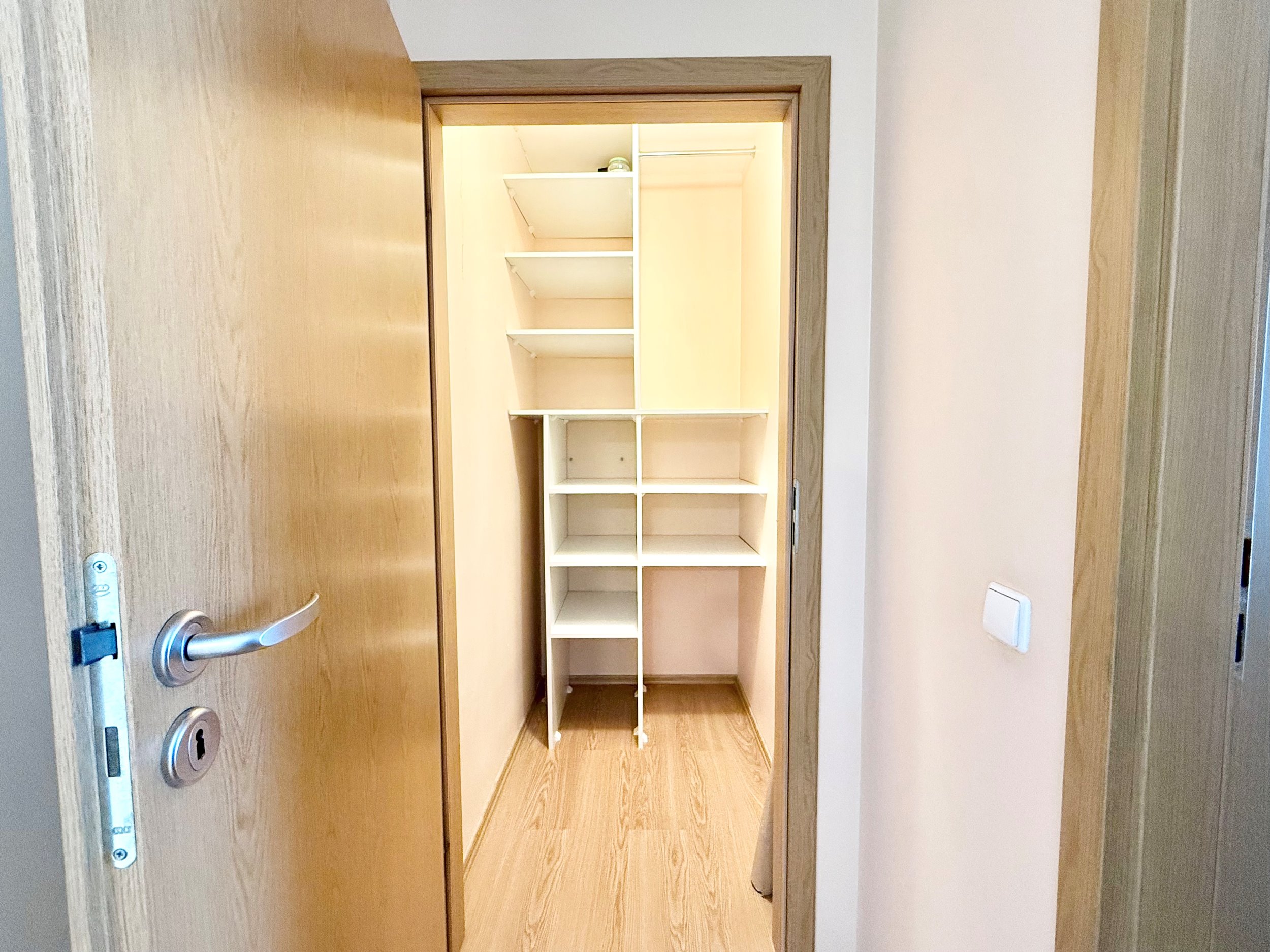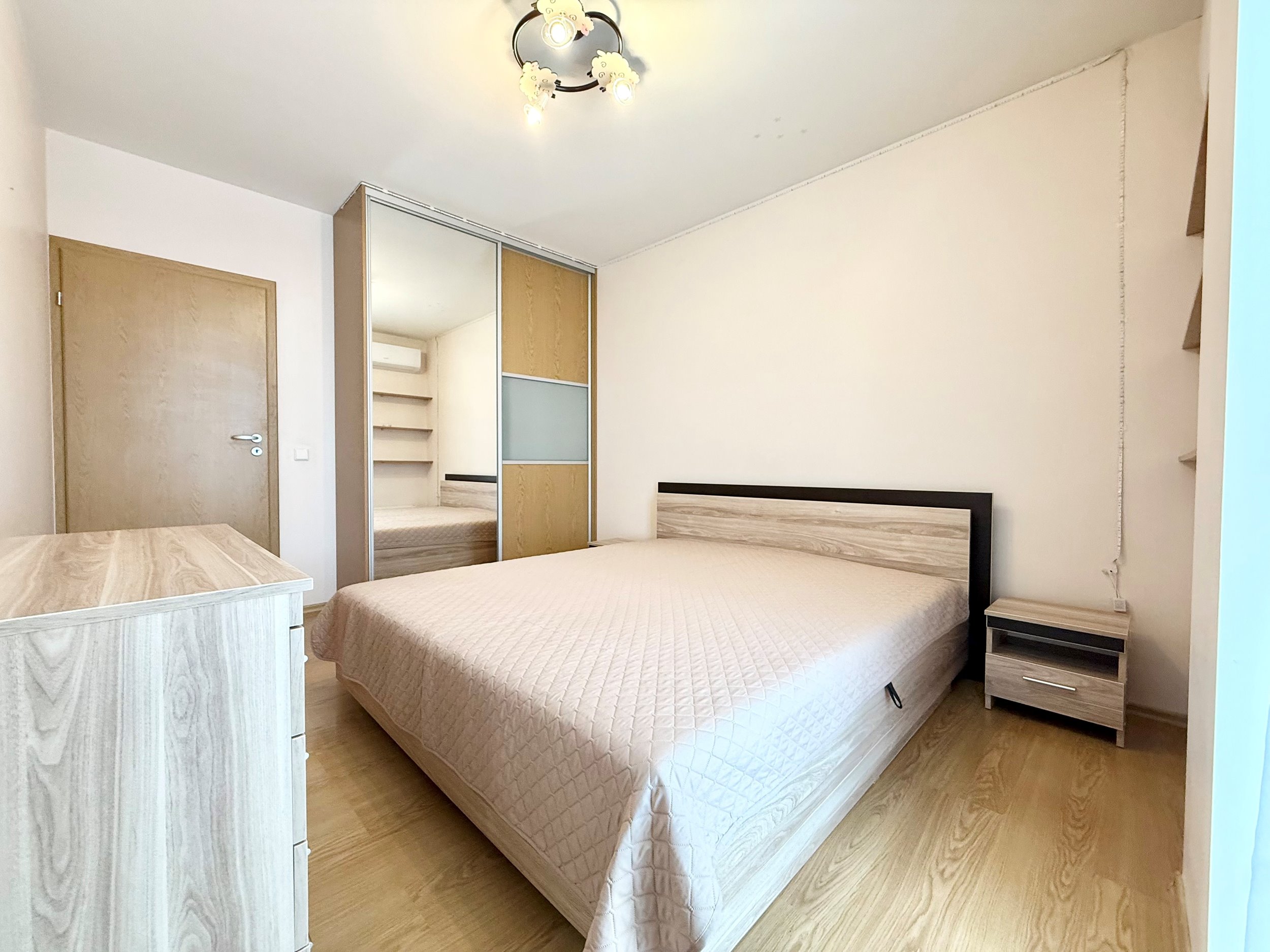 Išplanavimas: svetainė su virtuve, miegamasis, vonios kambarys ir tualetas kartu, drabužinė/tamsusis kambariukas, erdvus balkonas.