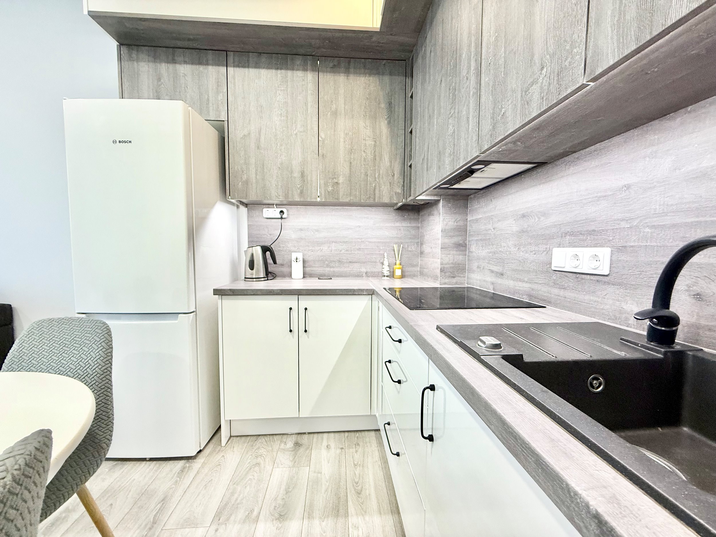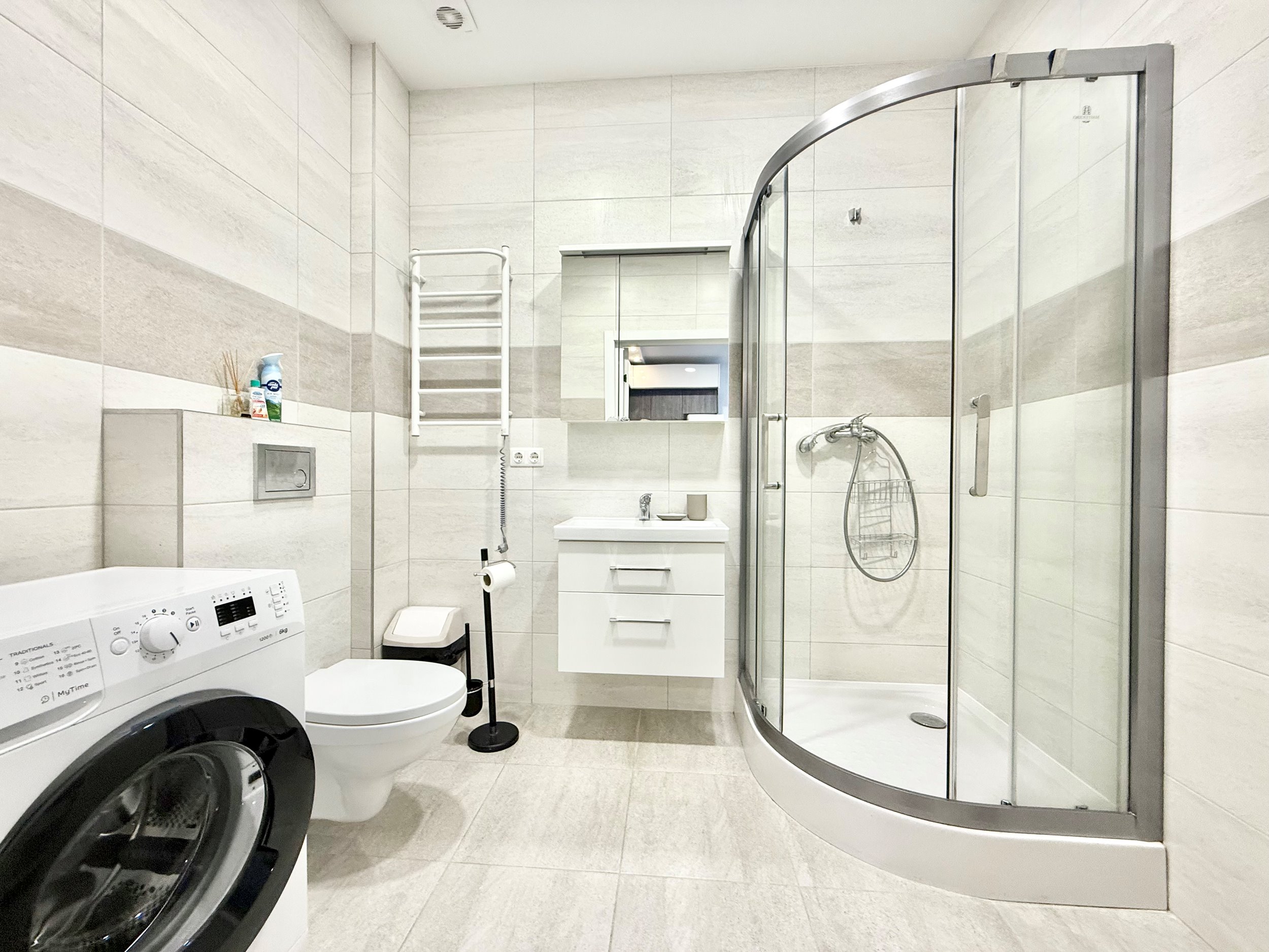 Bute yra visi reikalingi baldai, sofa-lova, dvigulė lova miegamajame, drabužių spinta, šaldytuvas su šaldikliu, viryklė, skalbimo mašina, indaplovė.