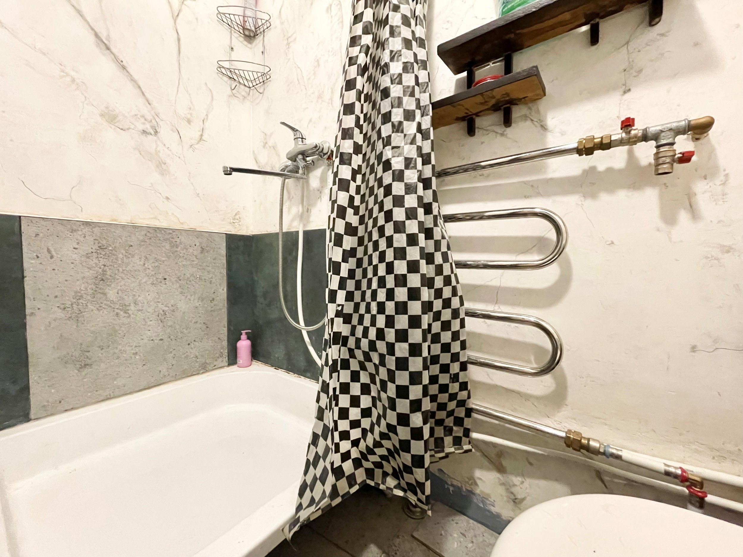 Išplanavimas: kambarys, virtuvė, tualetas ir dušas kartu.