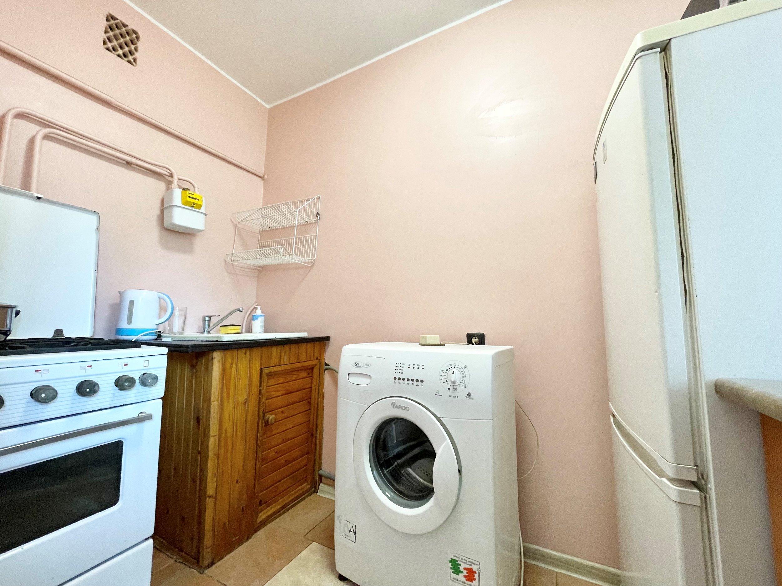 Bute yra visi reikalingiausi baldai, skalbimo mašina, šaldytuvas su šaldikliu, viryklė ir t.t.