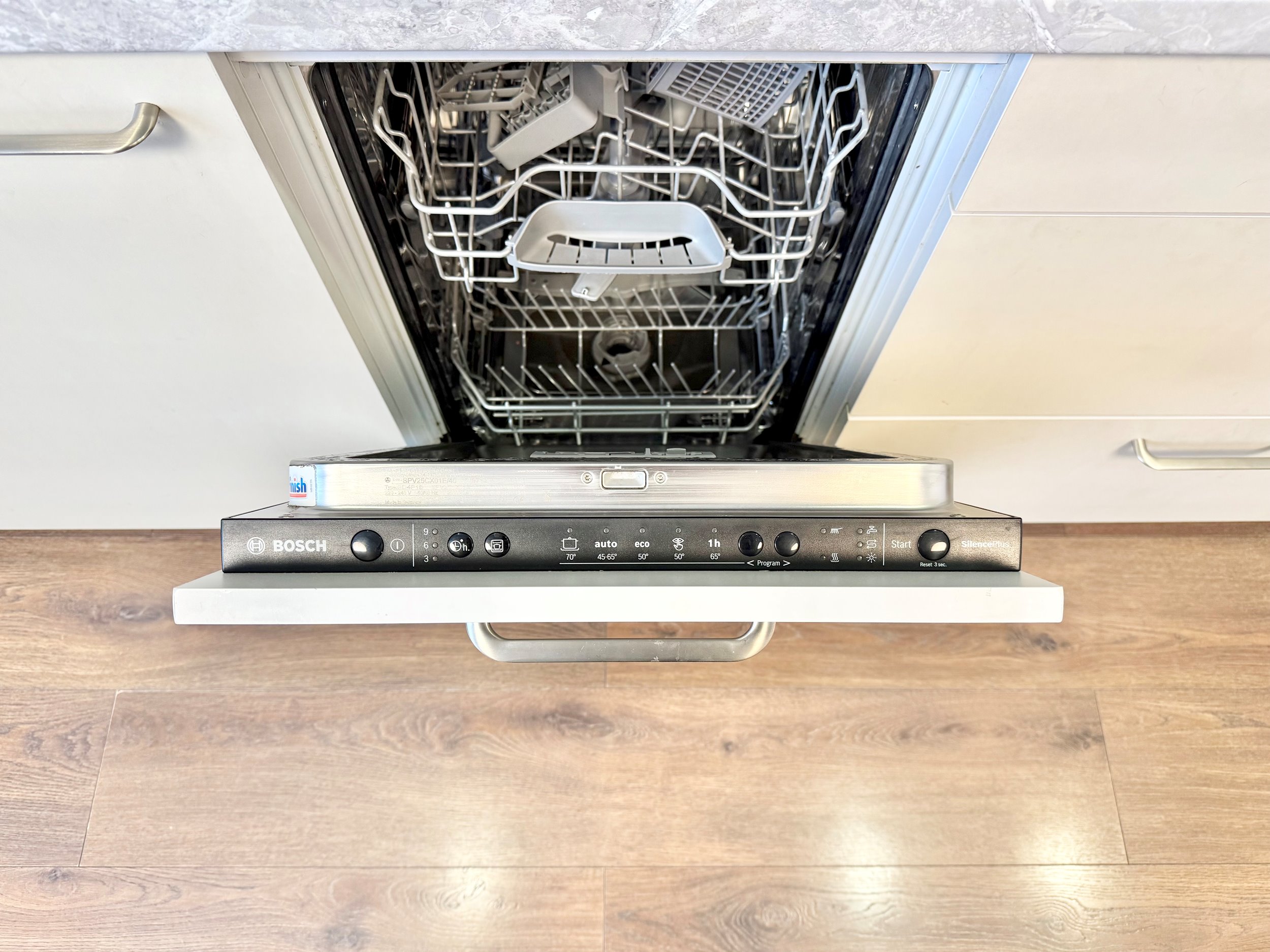 Bute yra visi reikalingiausi baldai, sofa, skalbimo mašina, šaldytuvas, indaplovė, viryklė ir t.t.