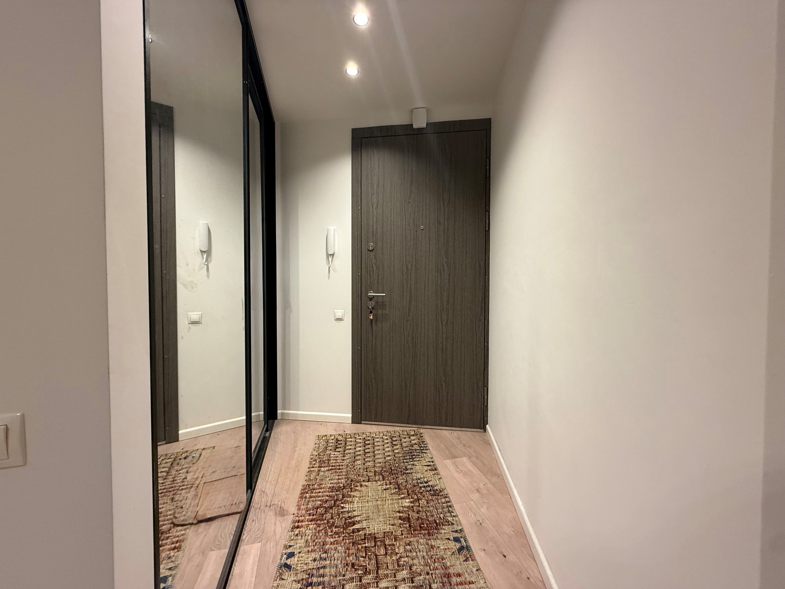 Bute yra visi reikalingiausi baldai, indaplovė, skalbimo mašina, šaldytuvas su šaldikliu, viryklė ir t.t.