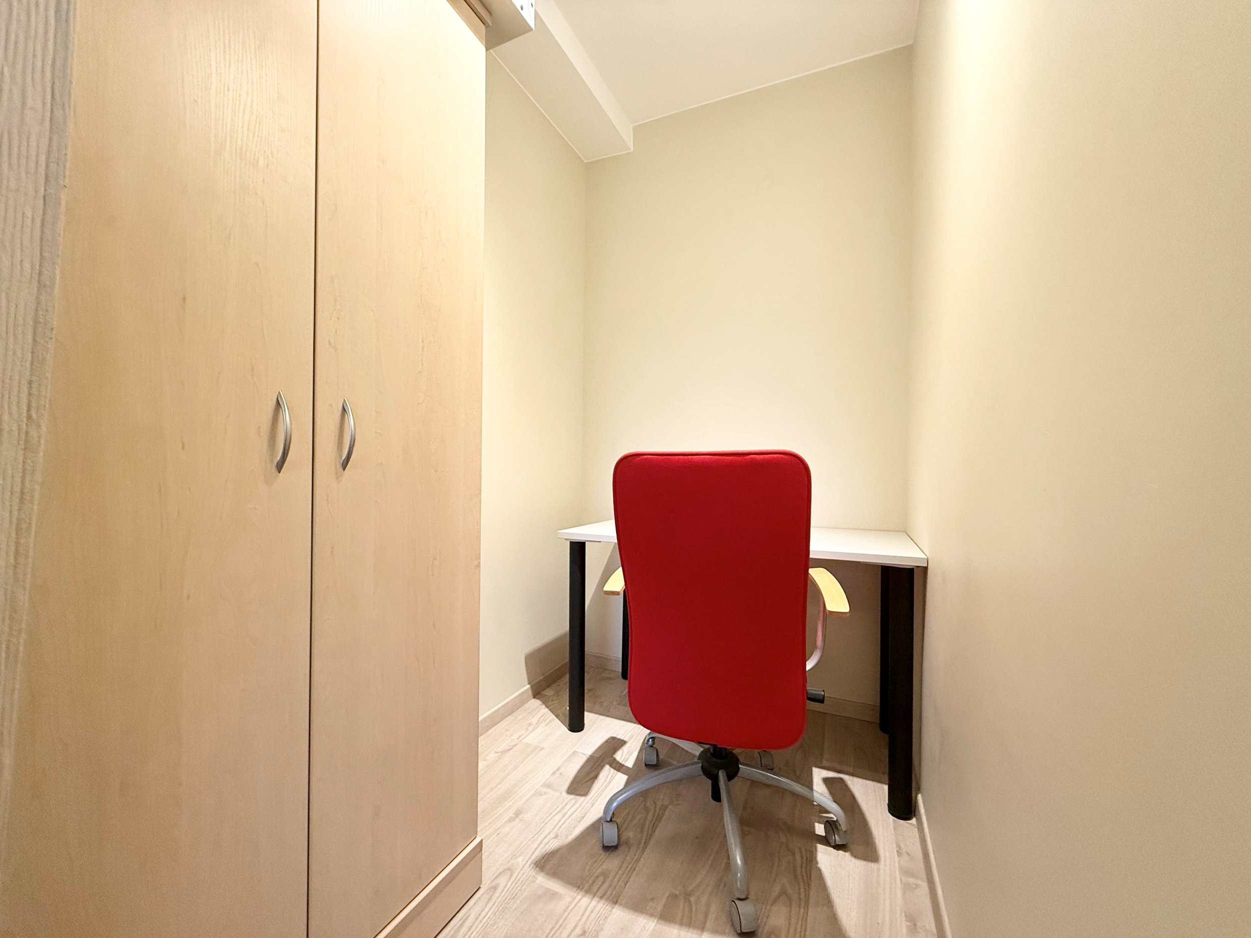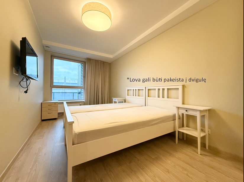 Išplanavimas: svetainė/virtuvė, miegamasis/atskirtas darbo kambarėlis, tualetas ir dušas kartu.