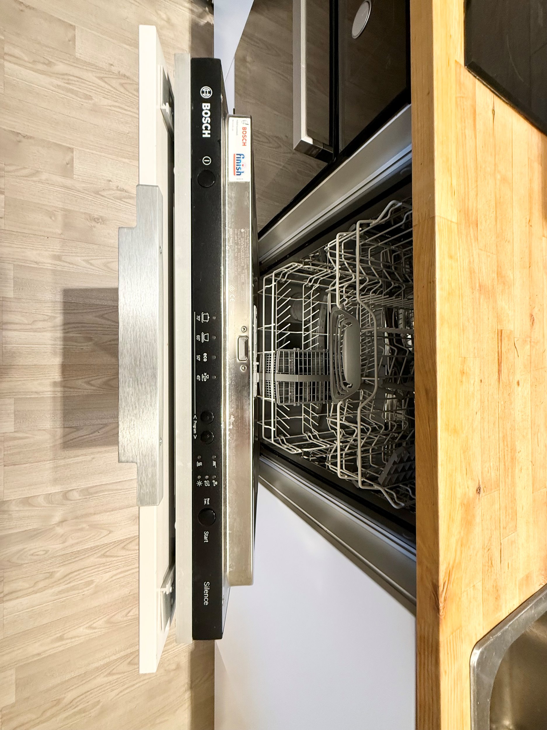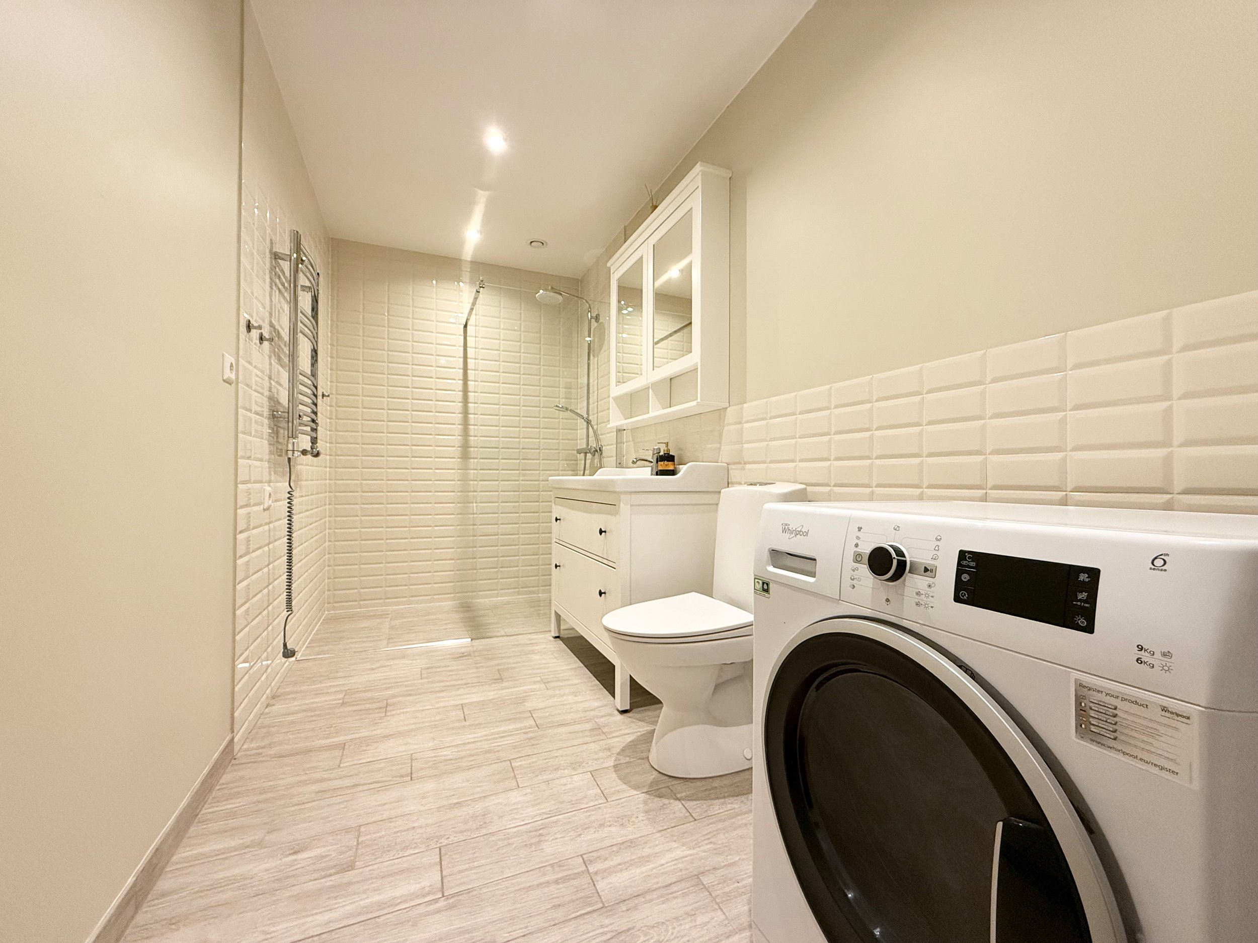 Bute yra visi reikalingiausi baldai, sofa-lova, skalbimo mašina su džiovykle, šaldytuvas, indaplovė, viryklė ir t.t.