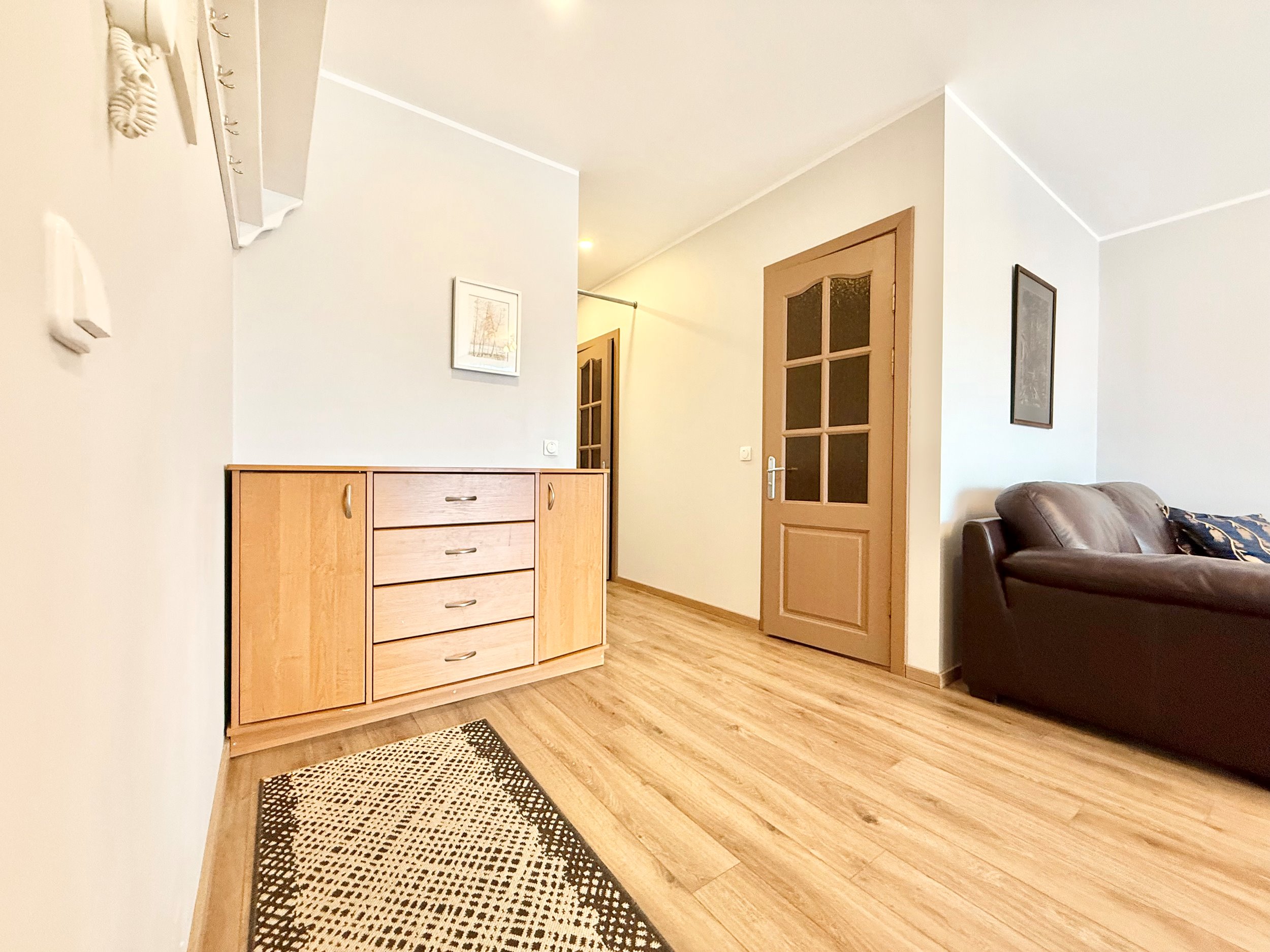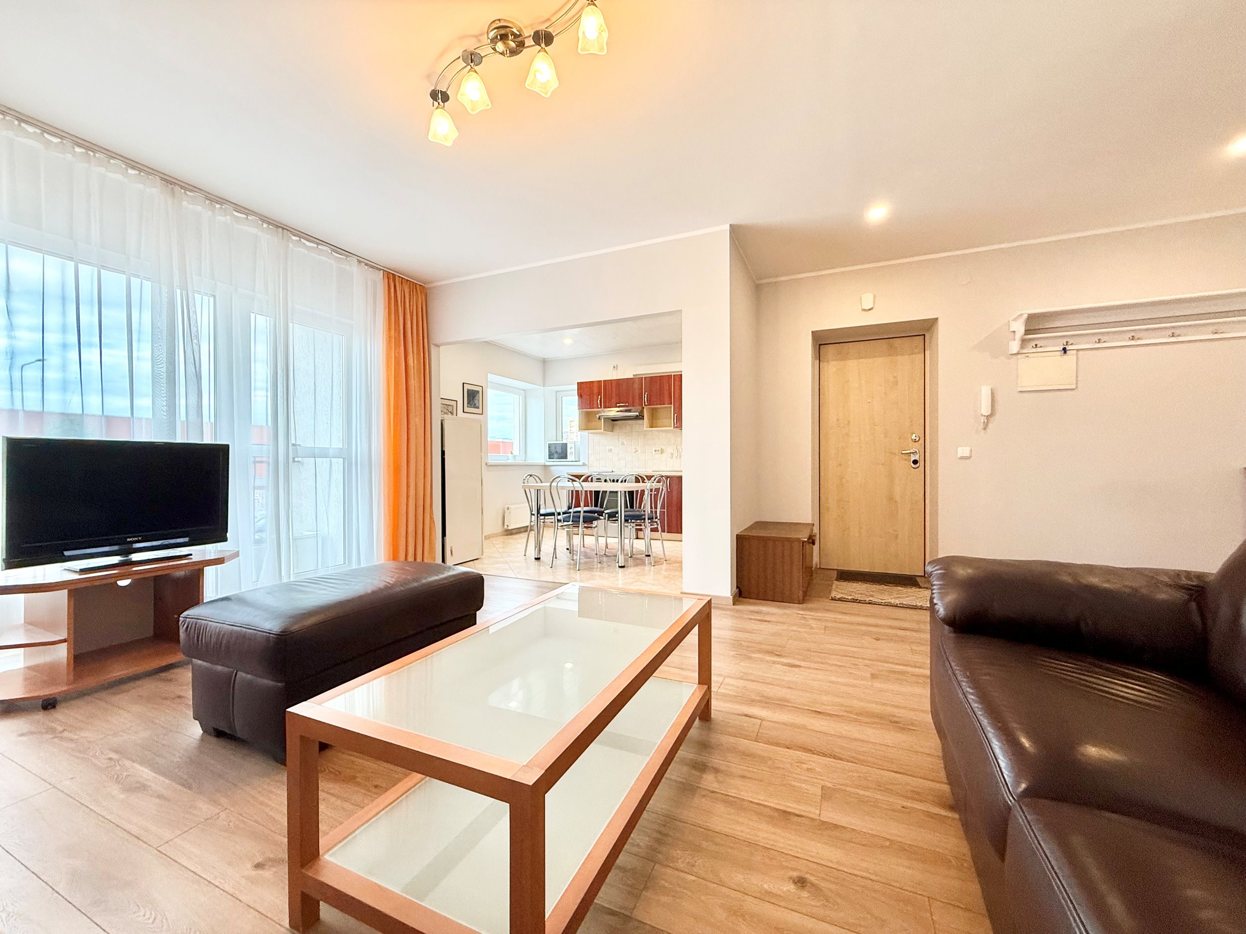 Išplanavimas: svetainė/virtuvė, miegamasis, tualetas ir vonia atskirai, balkonas.