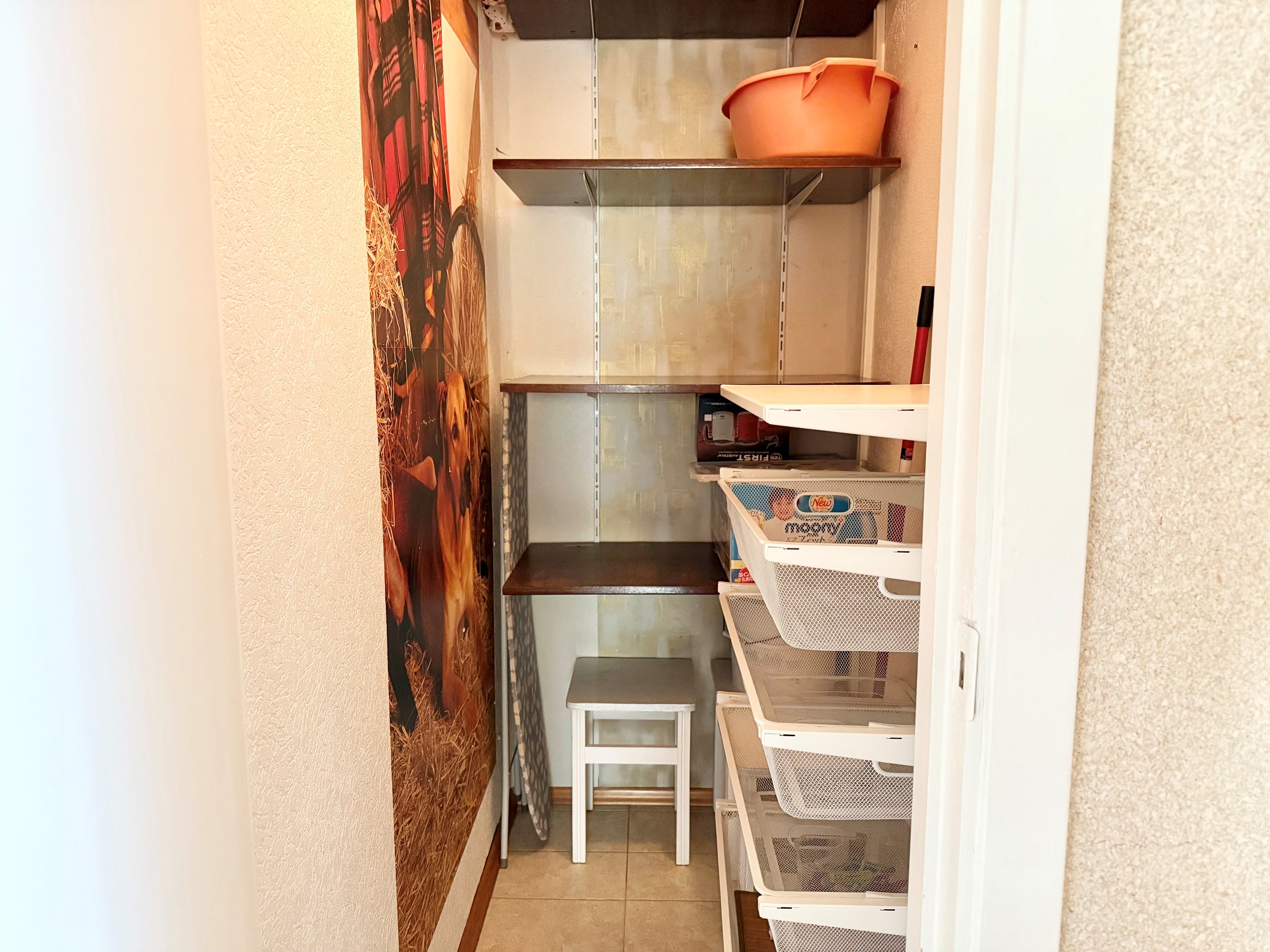 Bute yra visi reikalingiausi baldai, sofa-lova, skalbimo mašina, šaldytuvas su šaldikliu, viryklė ir t.t.