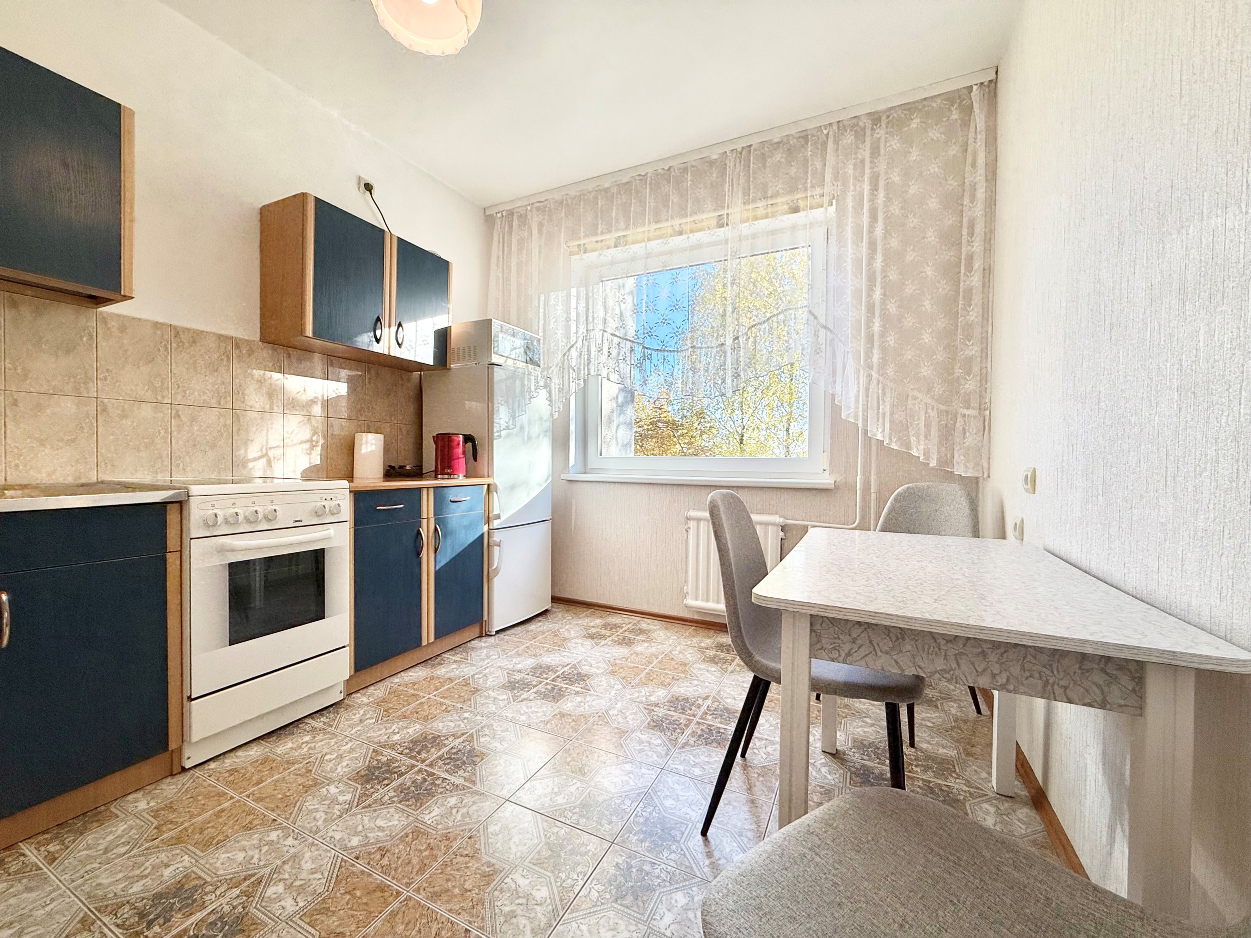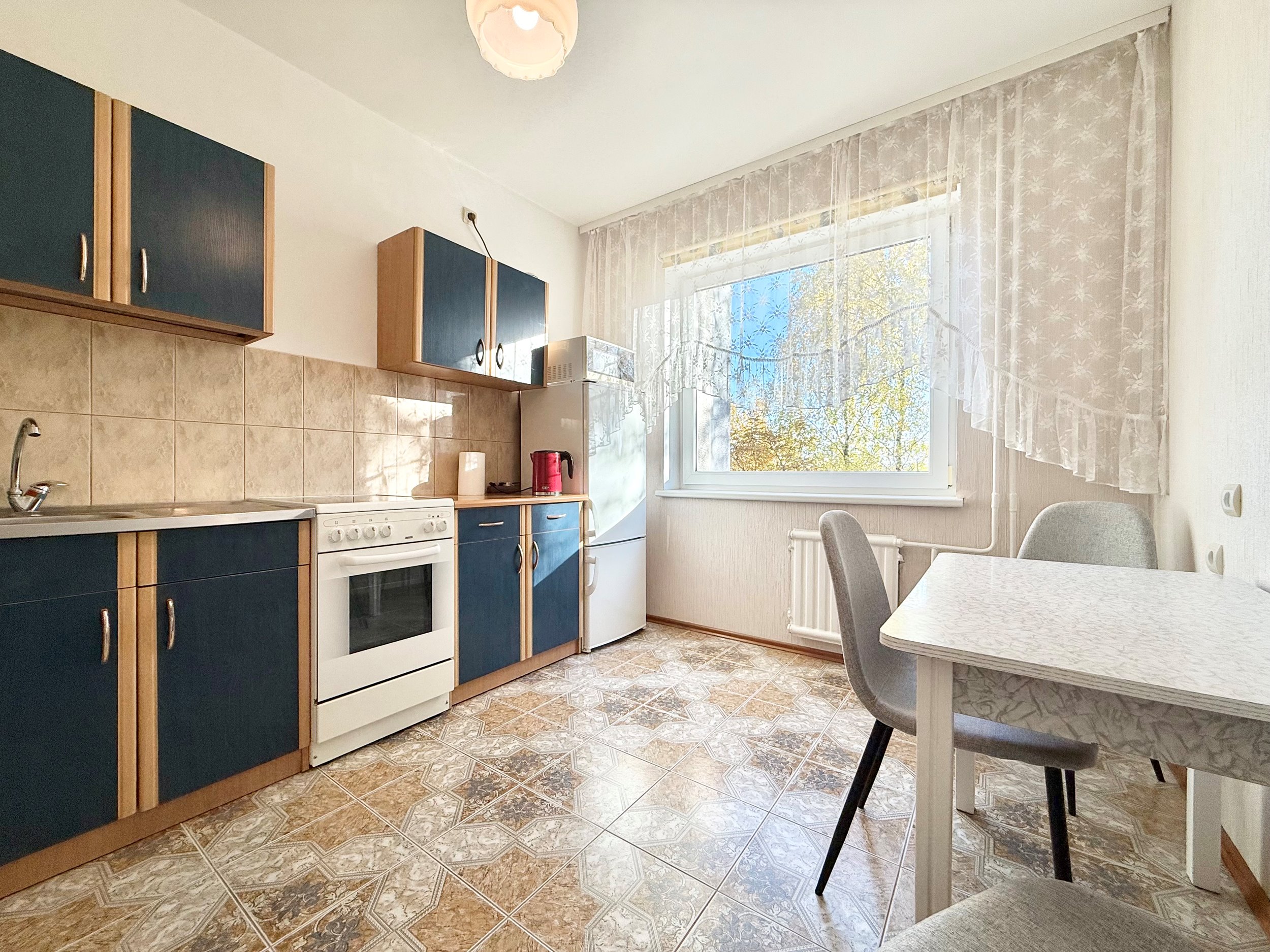 Geroje, ramioje vietoje, Justiniškėse, išnuomojamas įrengtas 50 kv.m. ploto, 2 izoliuotų kambarių jaukus, šviesus butas.