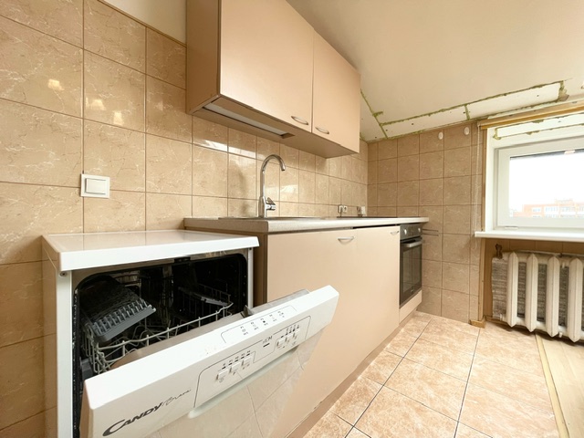 Bute yra visi reikalingiausi baldai, indaplovė, skalbimo mašina, šaldytuvas su šaldikliu,viryklė ir t.t.