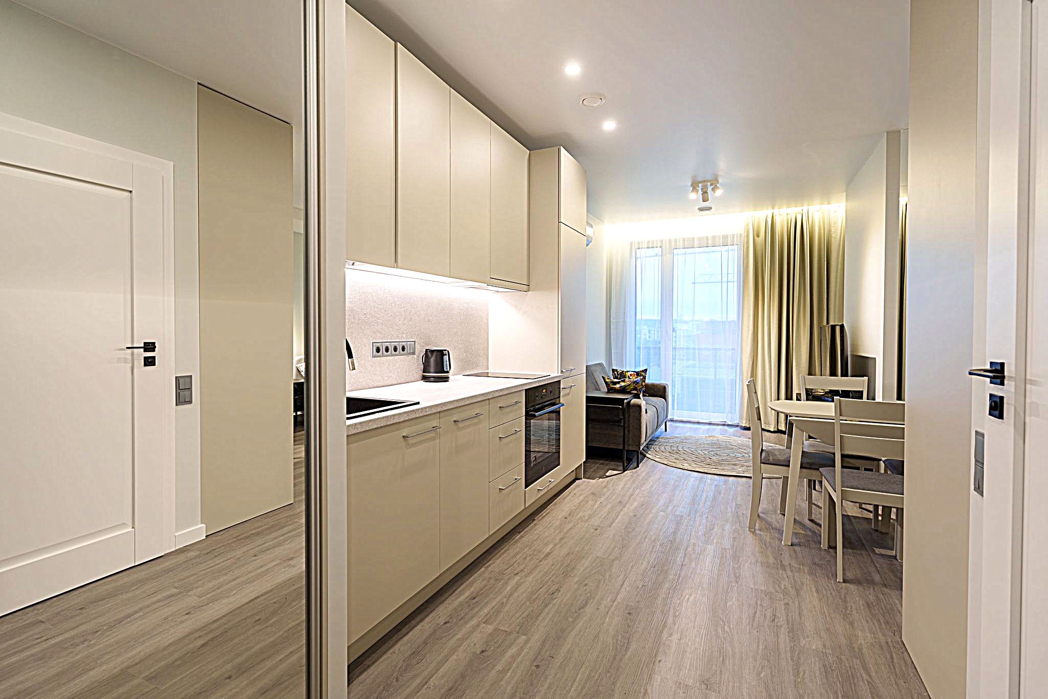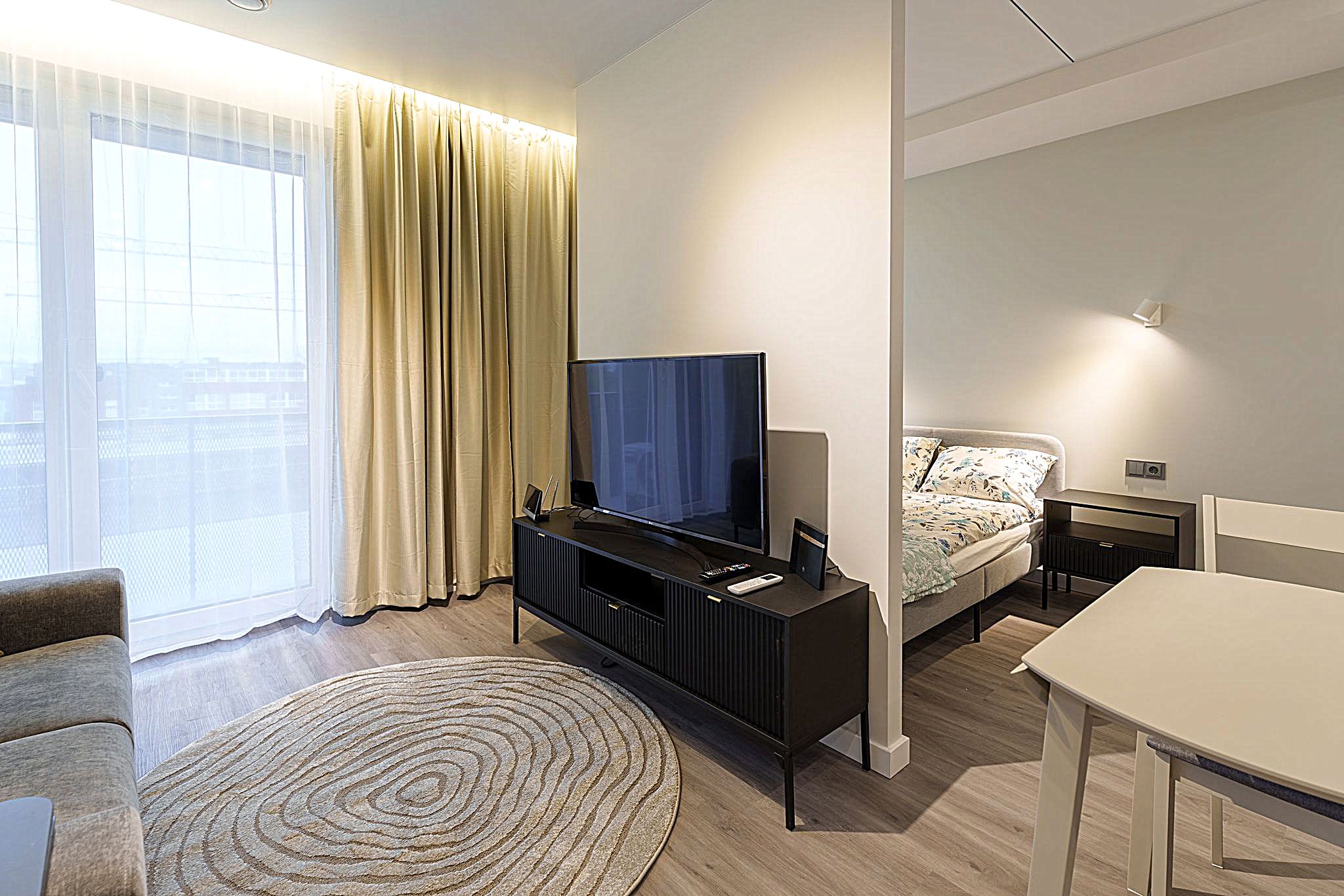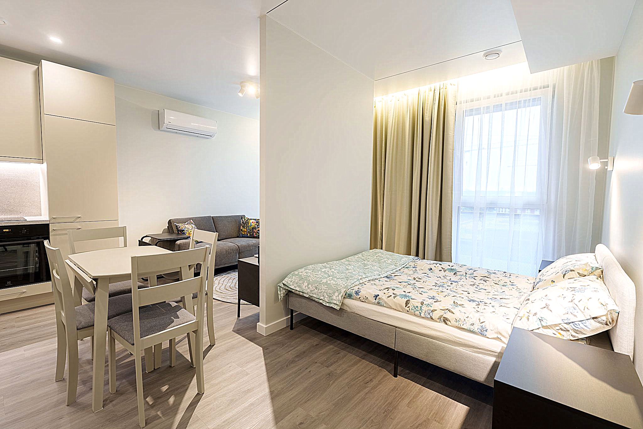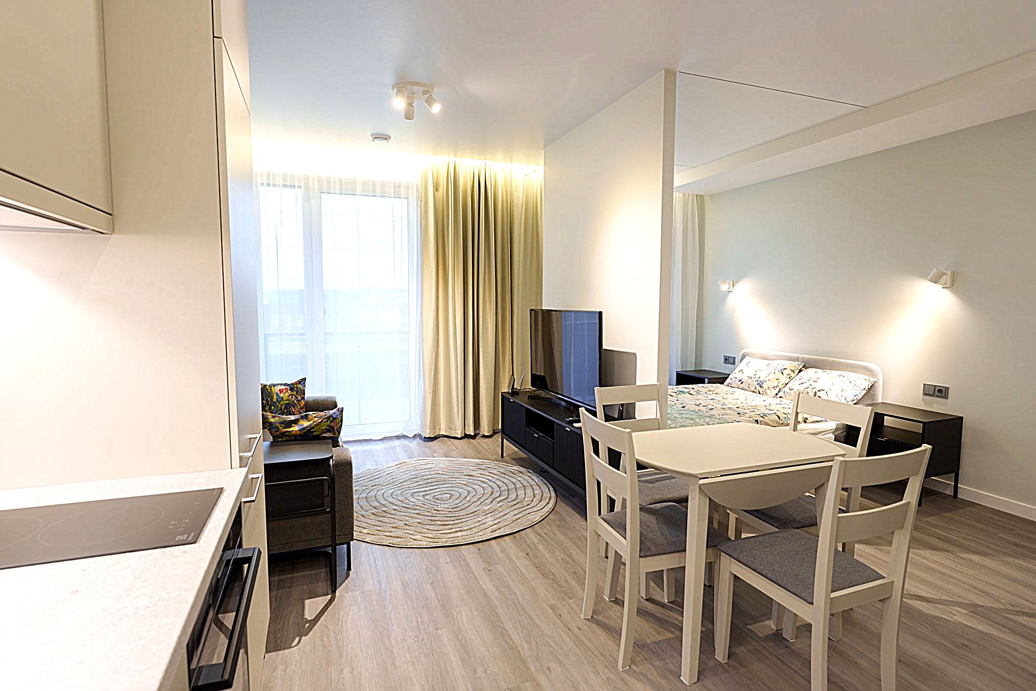 Kambariu skaičius: 1,5 (svetainė su virtuve + miegamasis)