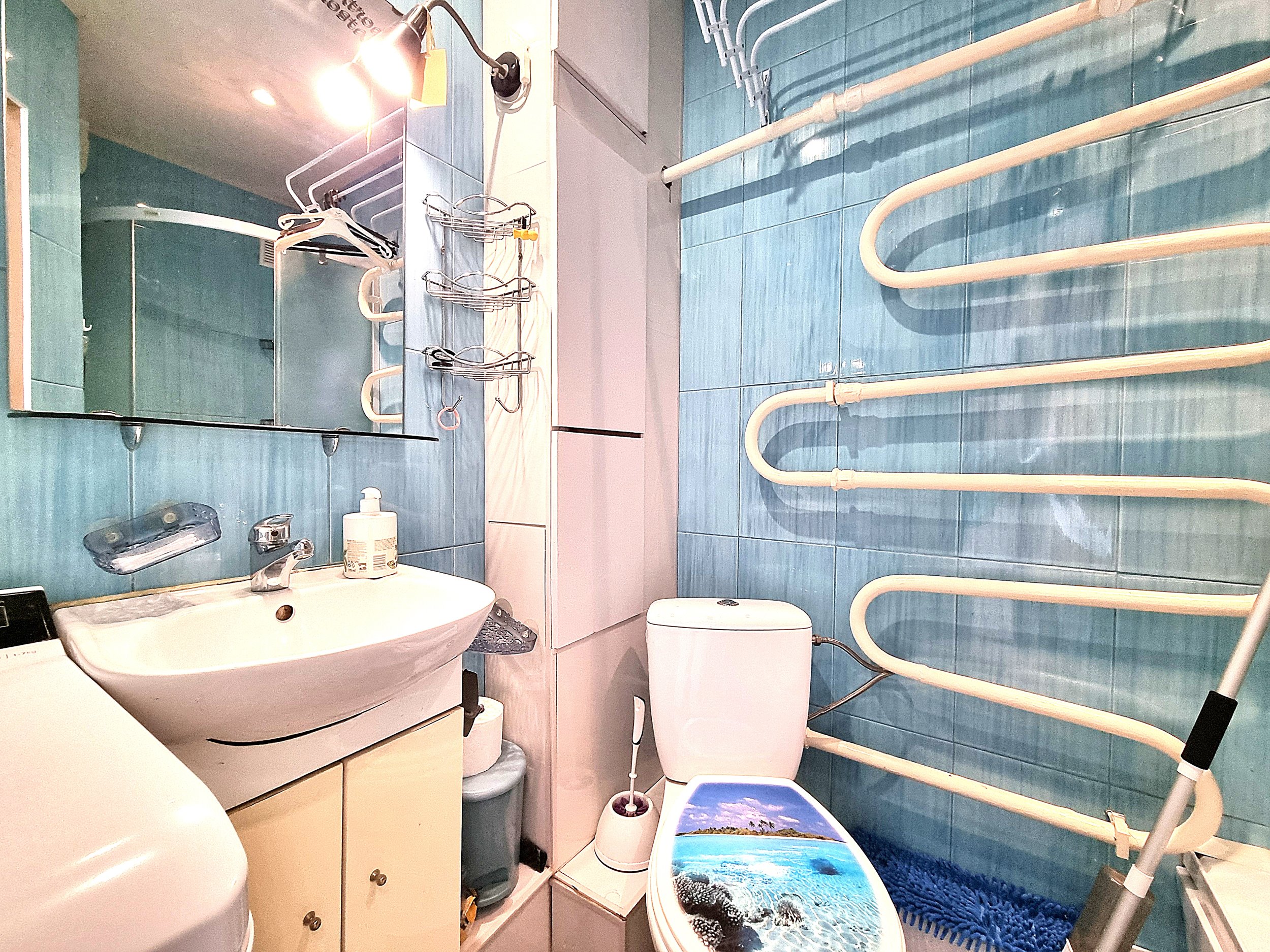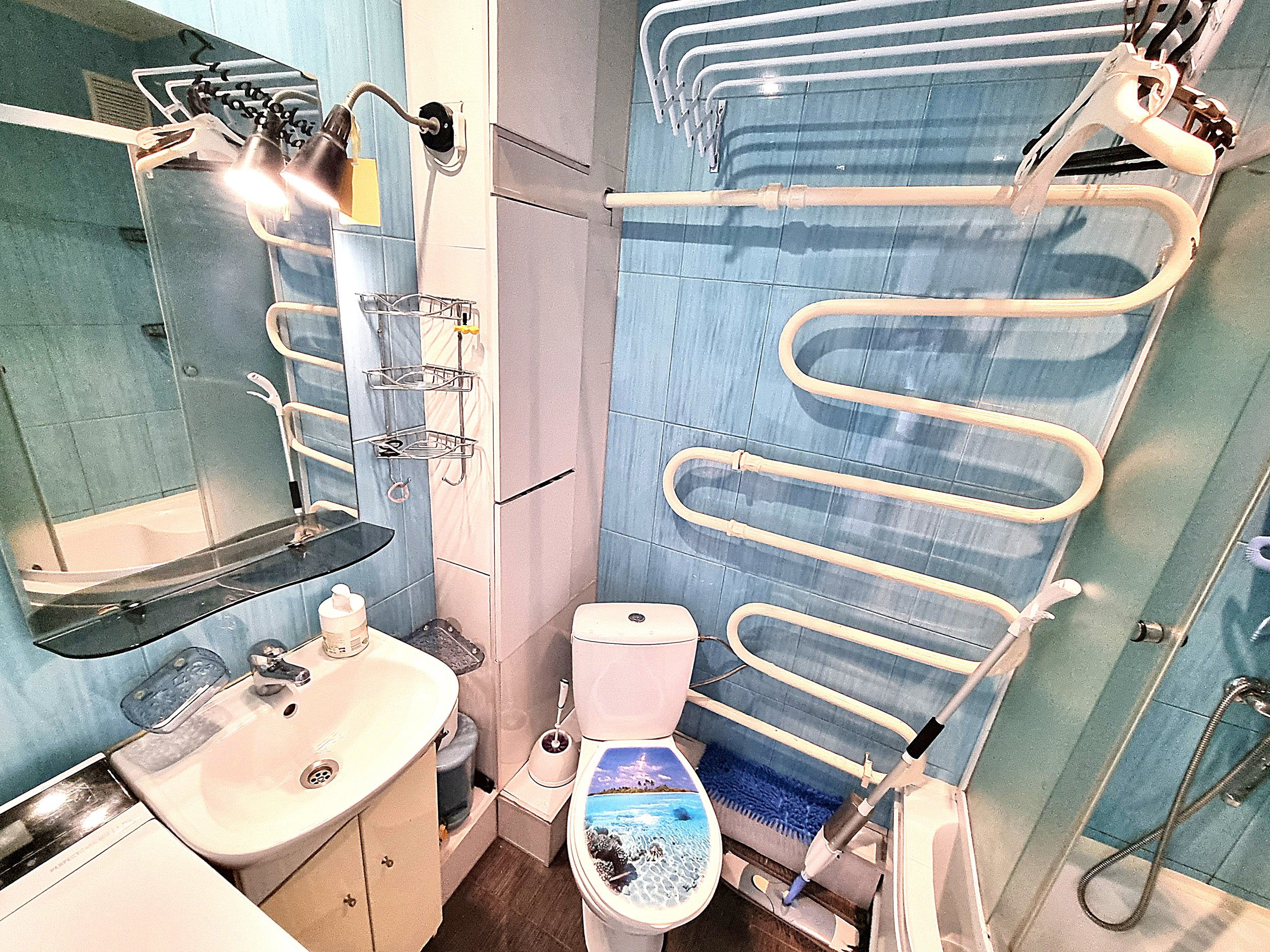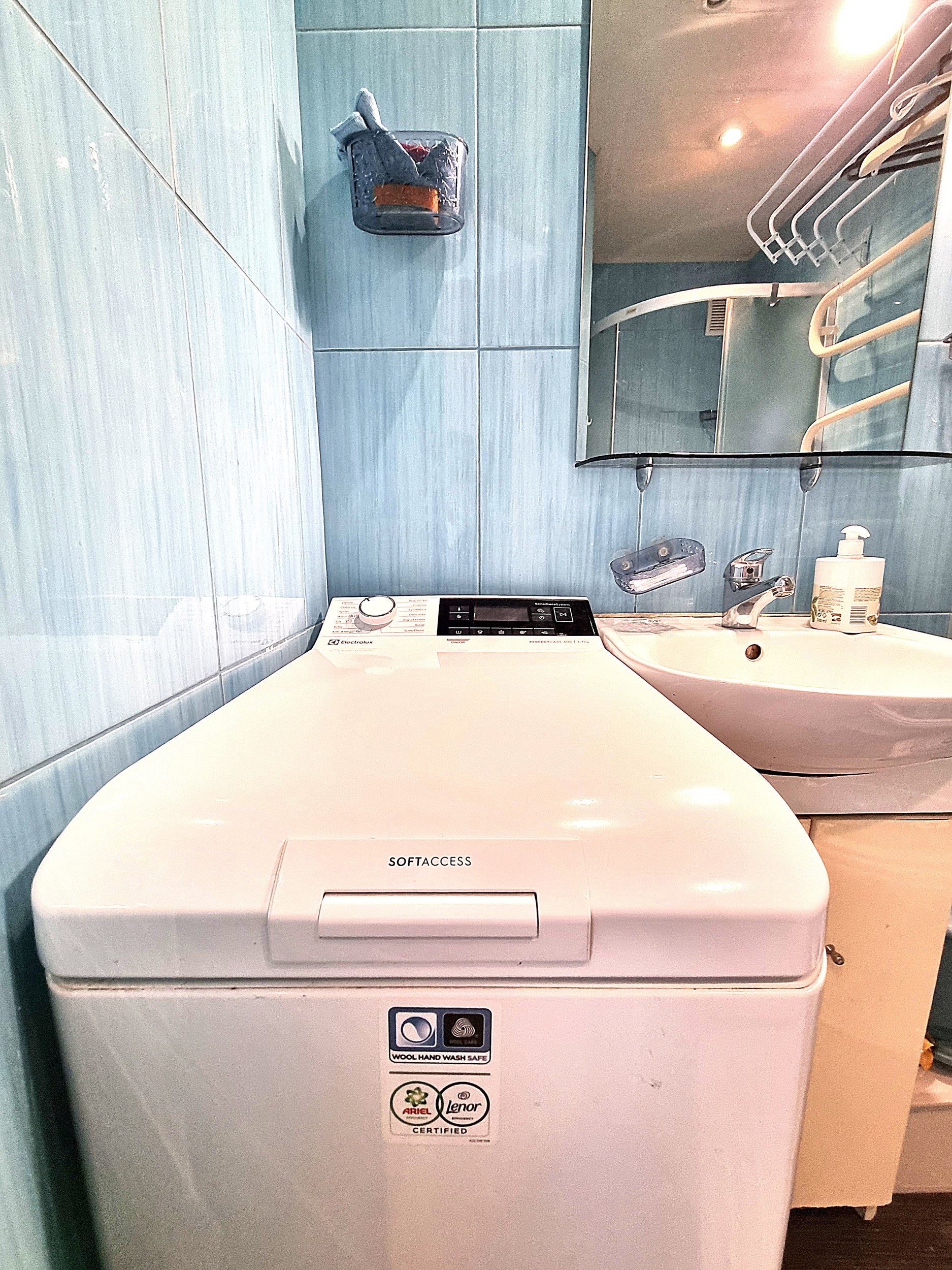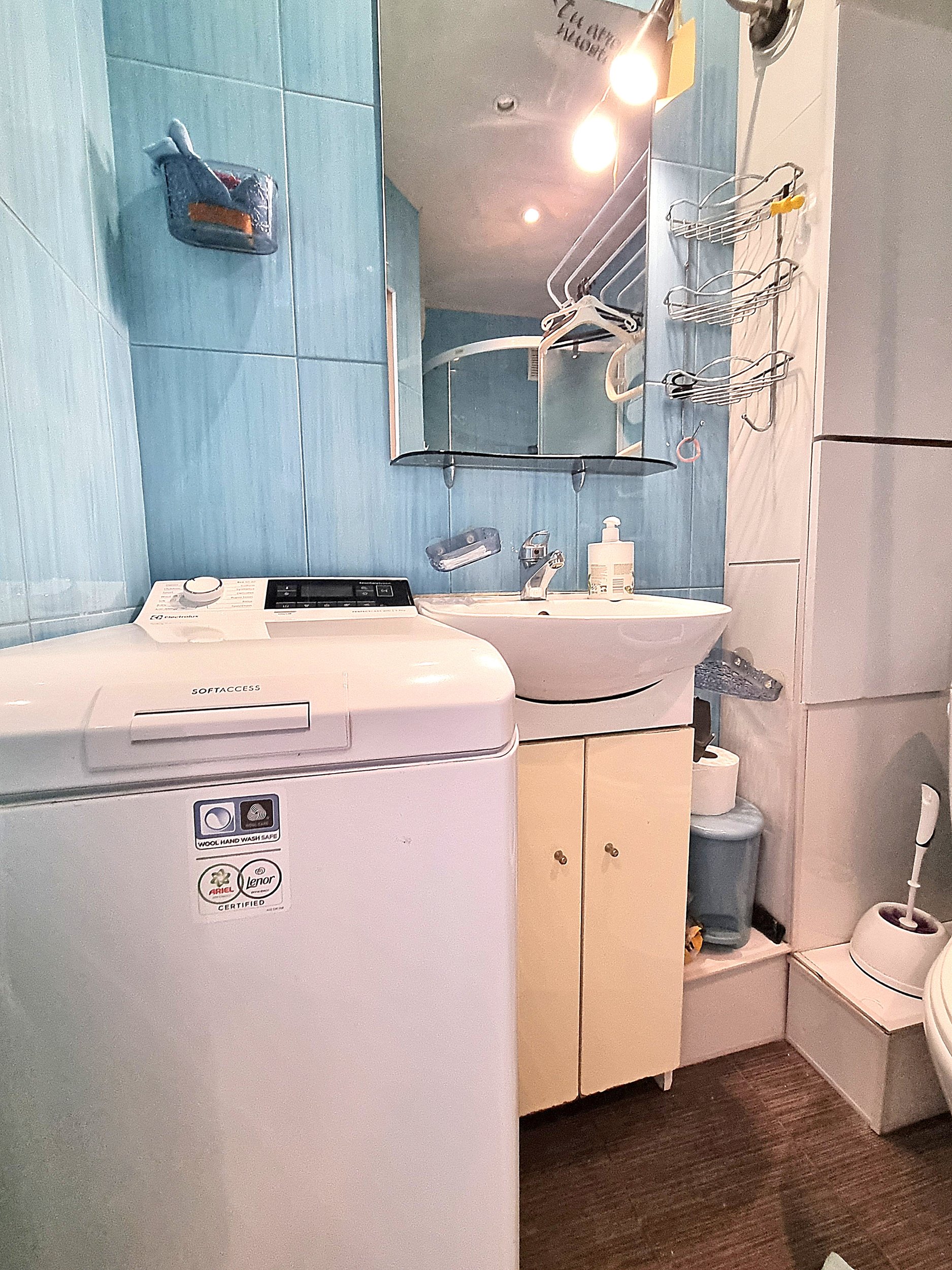 • Vonioje yra skalbimo mašina.