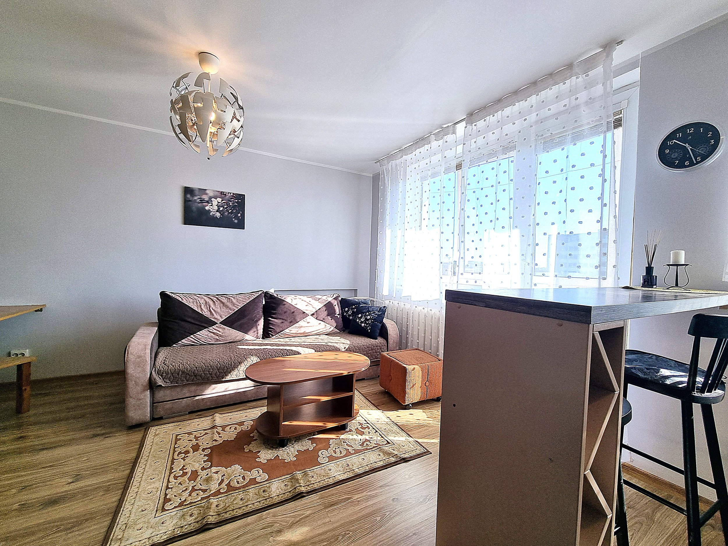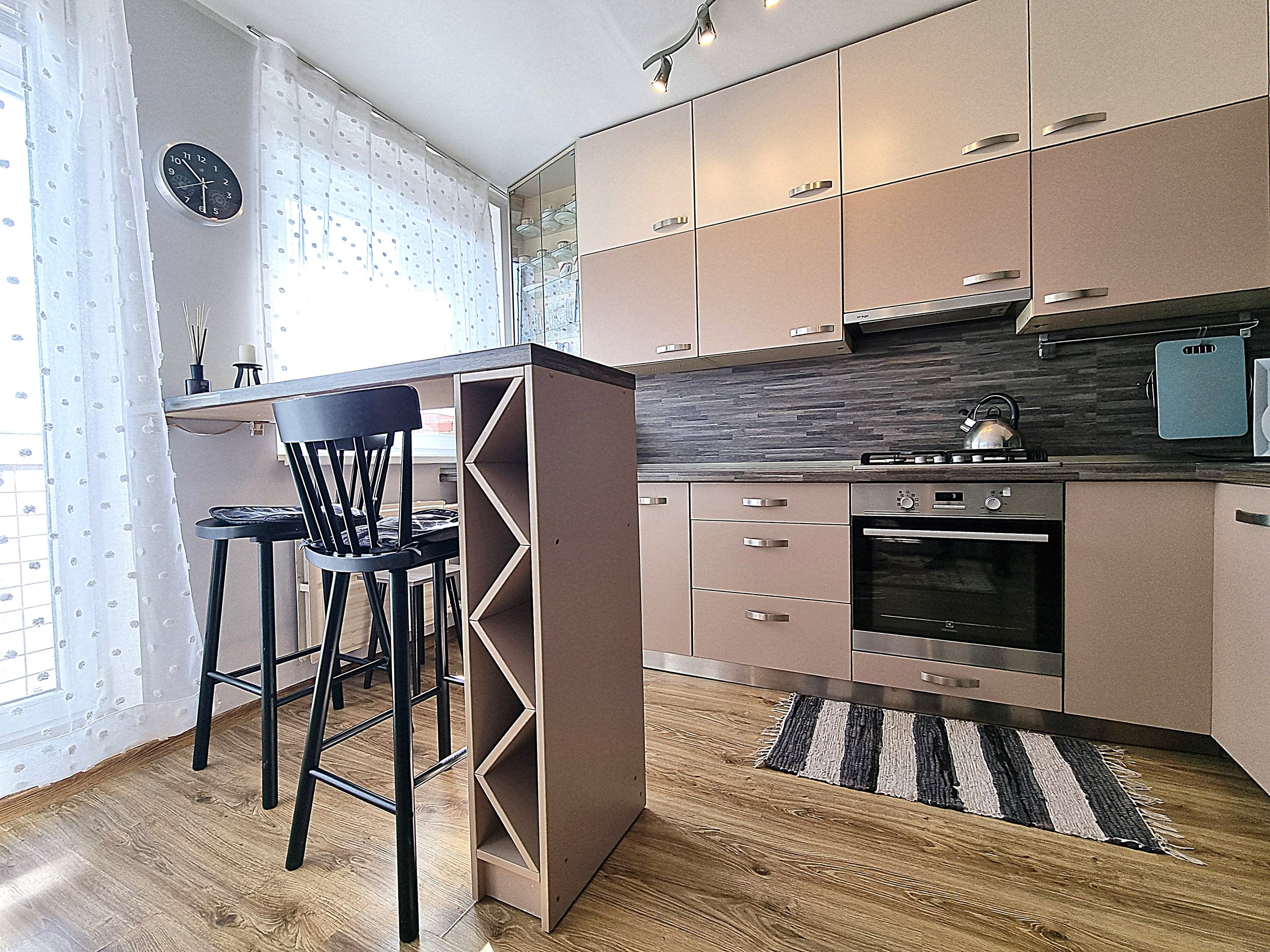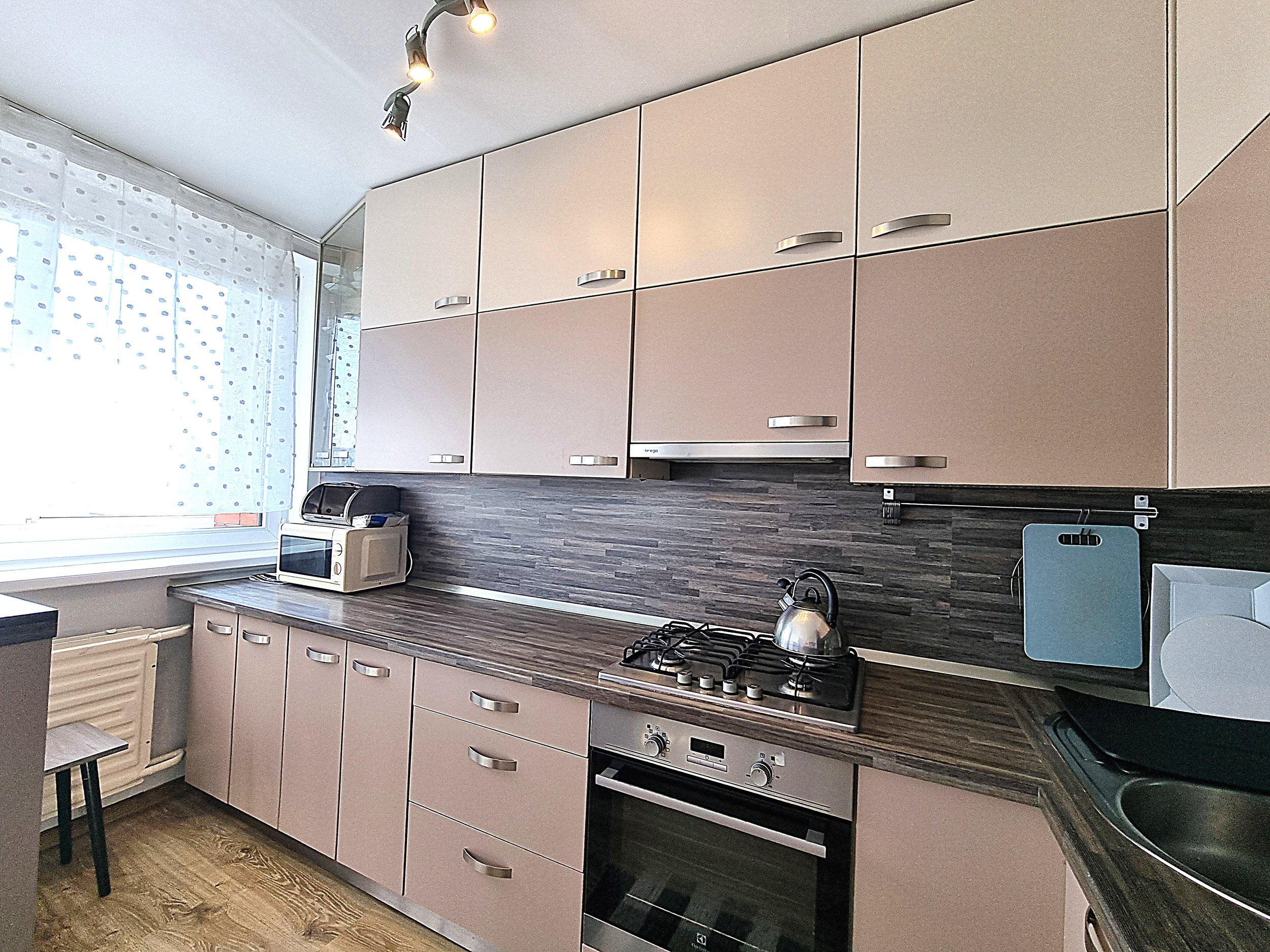 • Butas nuomojamas su visais nuotraukose matomais baldais ir buitine technika (orkaitė, šaldytuvas, mikrobangų krosnelė, skalbimo mašina), minimaliais virtuvės indais (įrankiai, lėkštės, puodeliai).