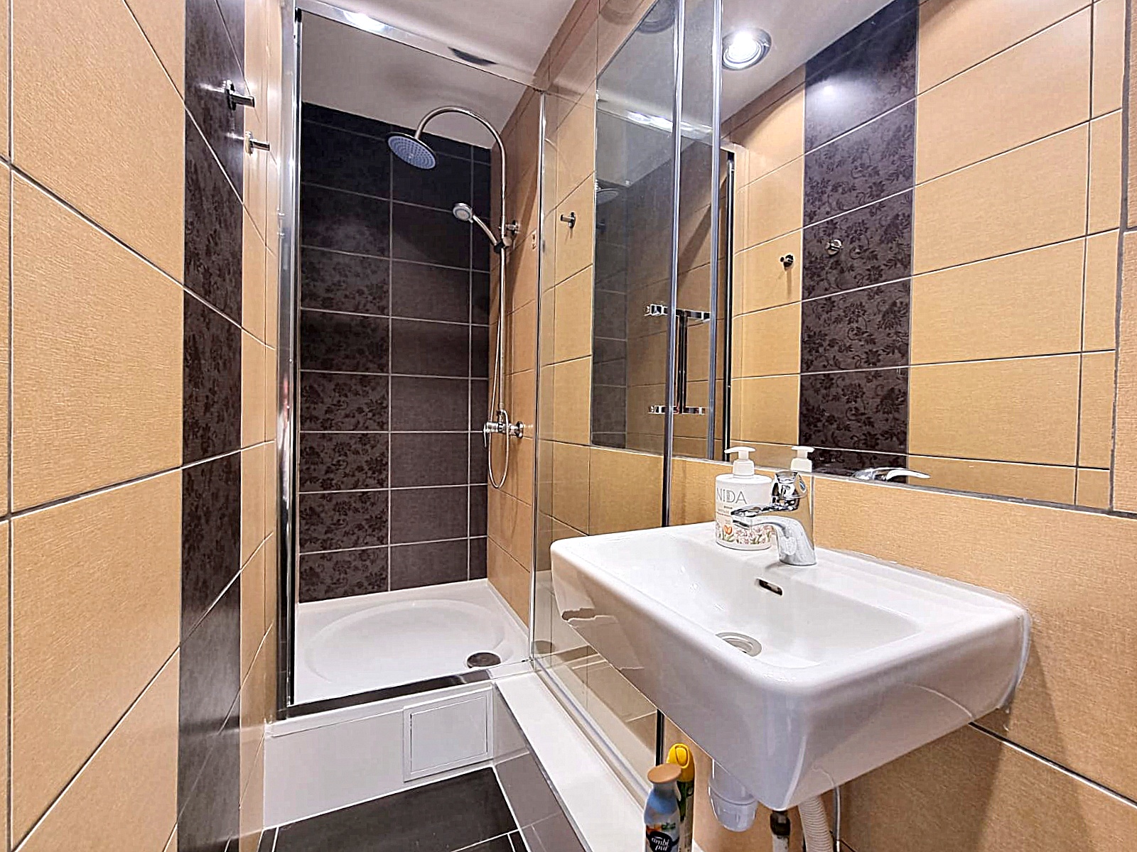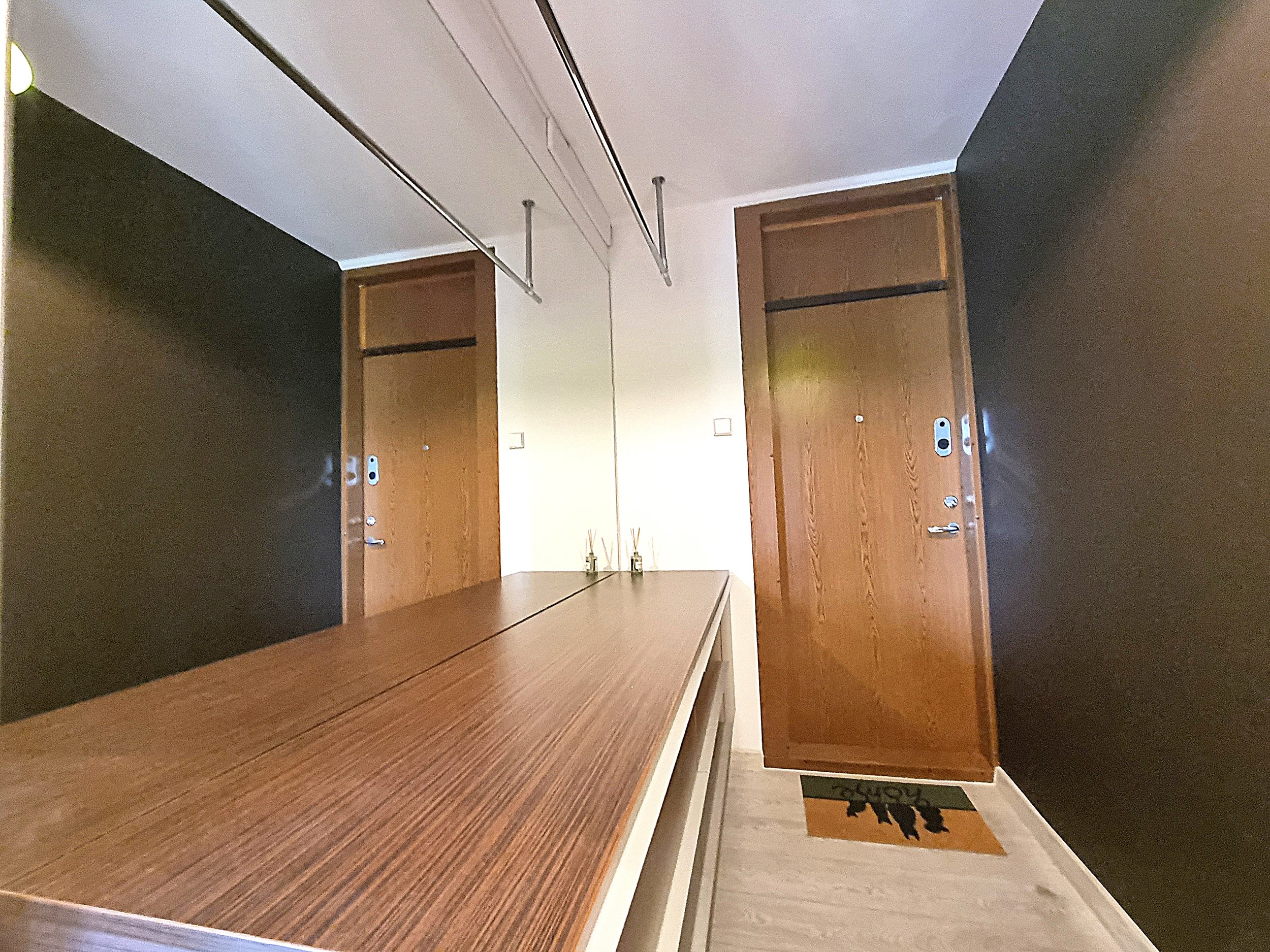 • Prieškambaryje erdvi sieninė spinta iki pat lubų.