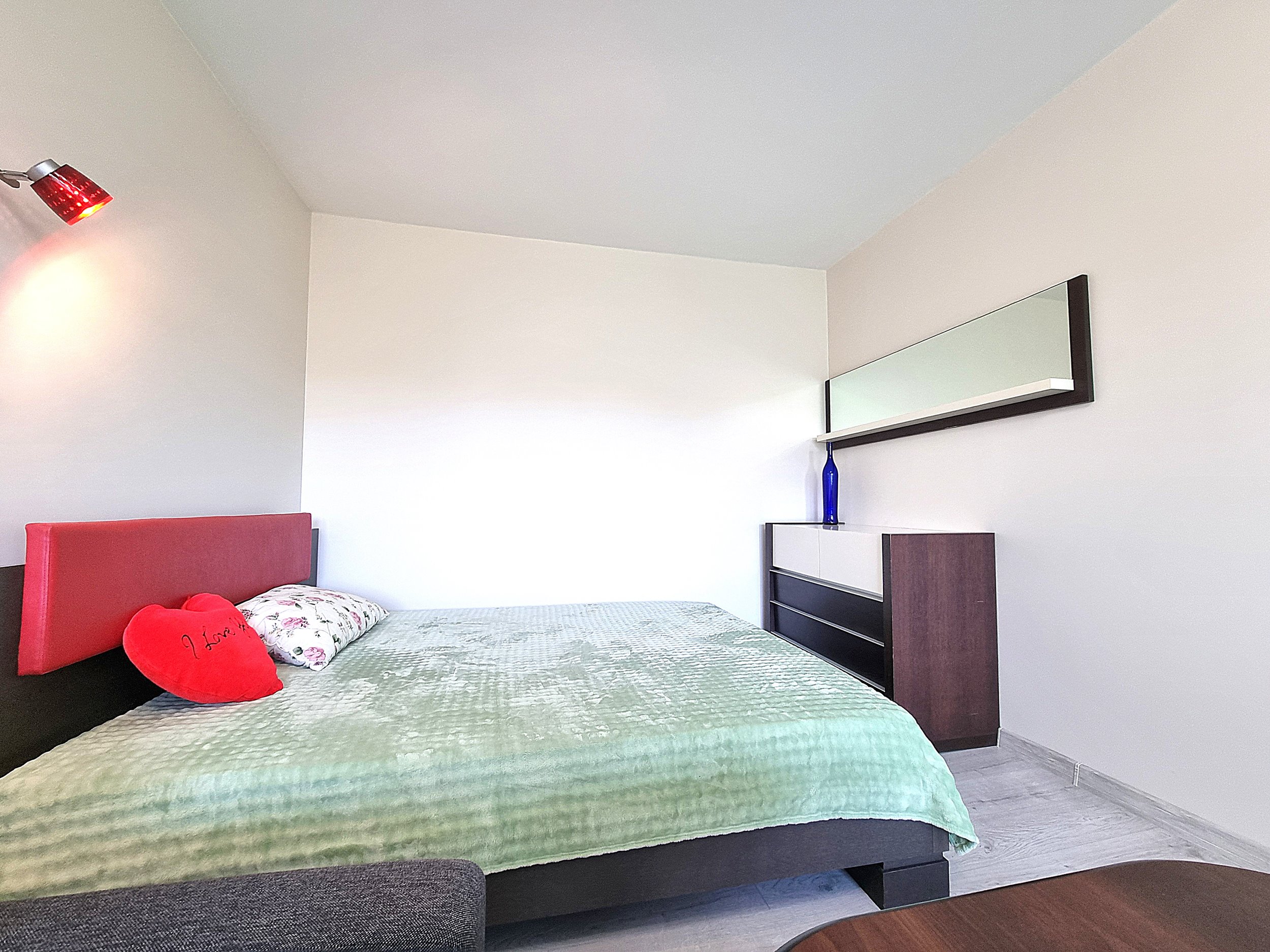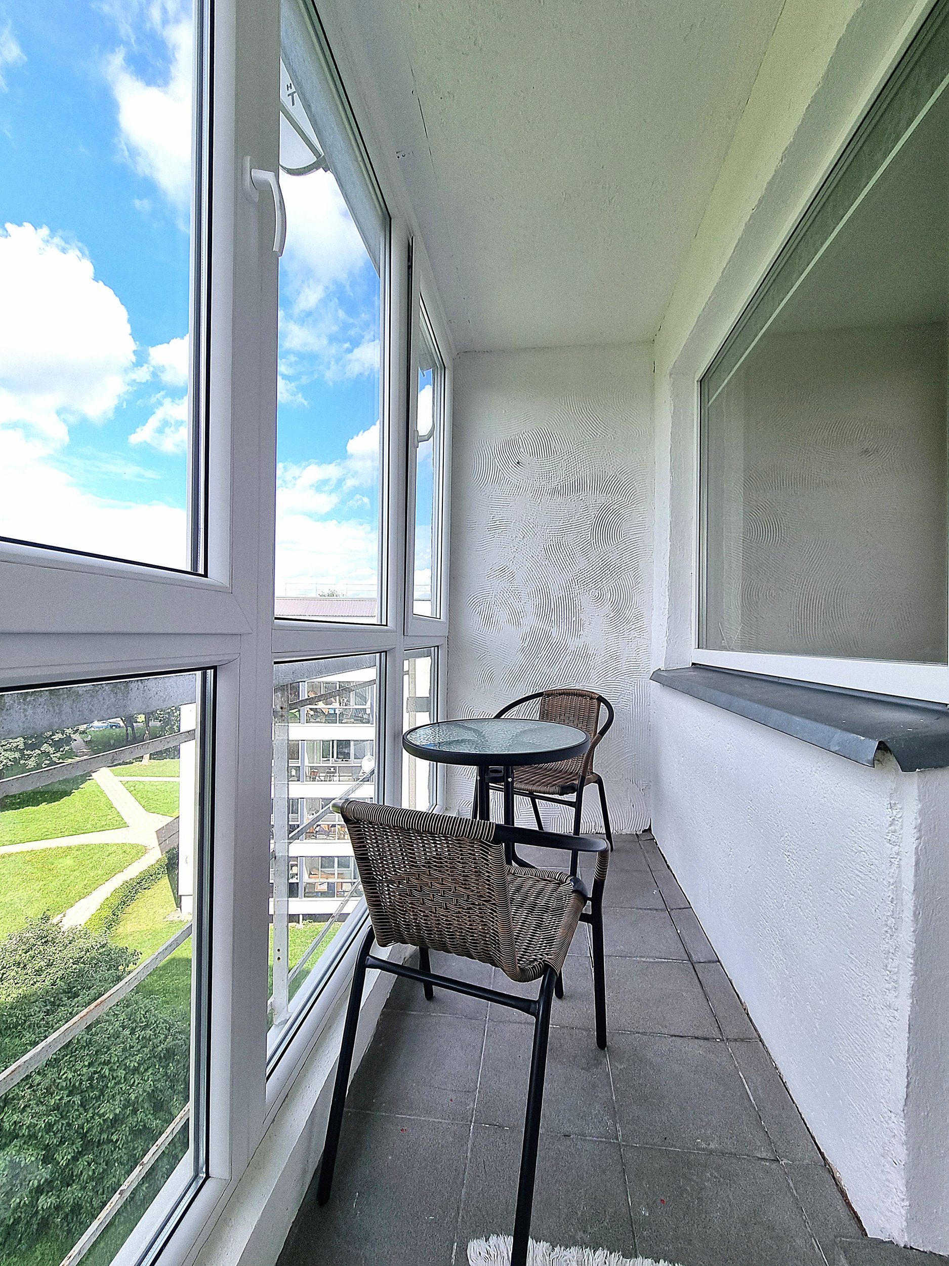 • Butas nuomojamas su visais nuotraukose matomais baldais ir buitine technika (orkaitė, šaldytuvas, mikrobangų krosnelė, skalbimo mašina), minimaliais virtuvės indais (įrankiai, lėkštės, puodeliai).
