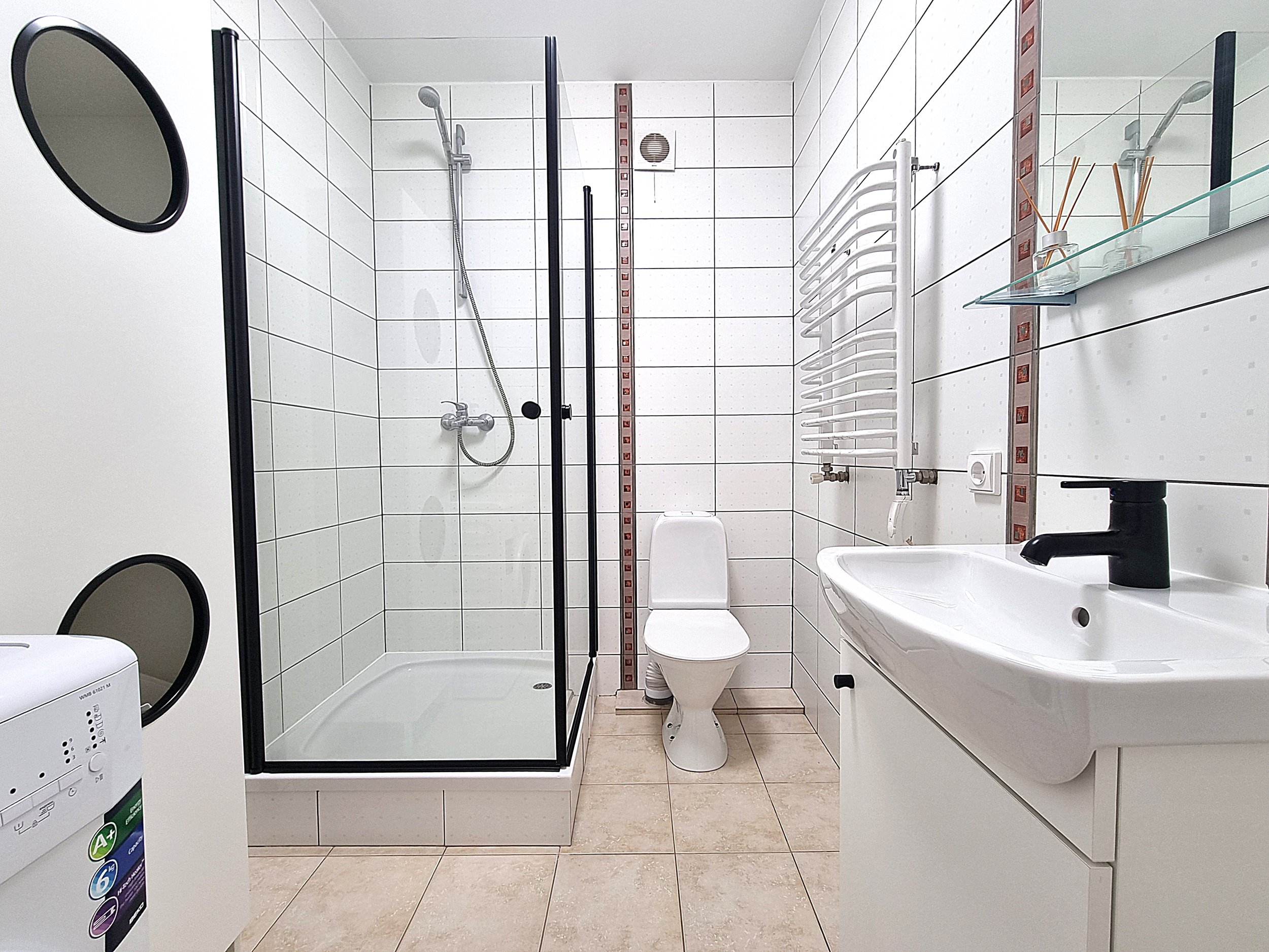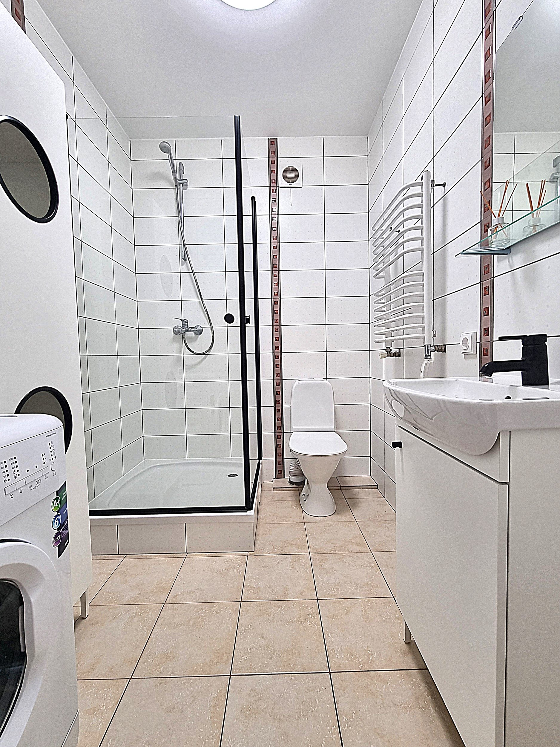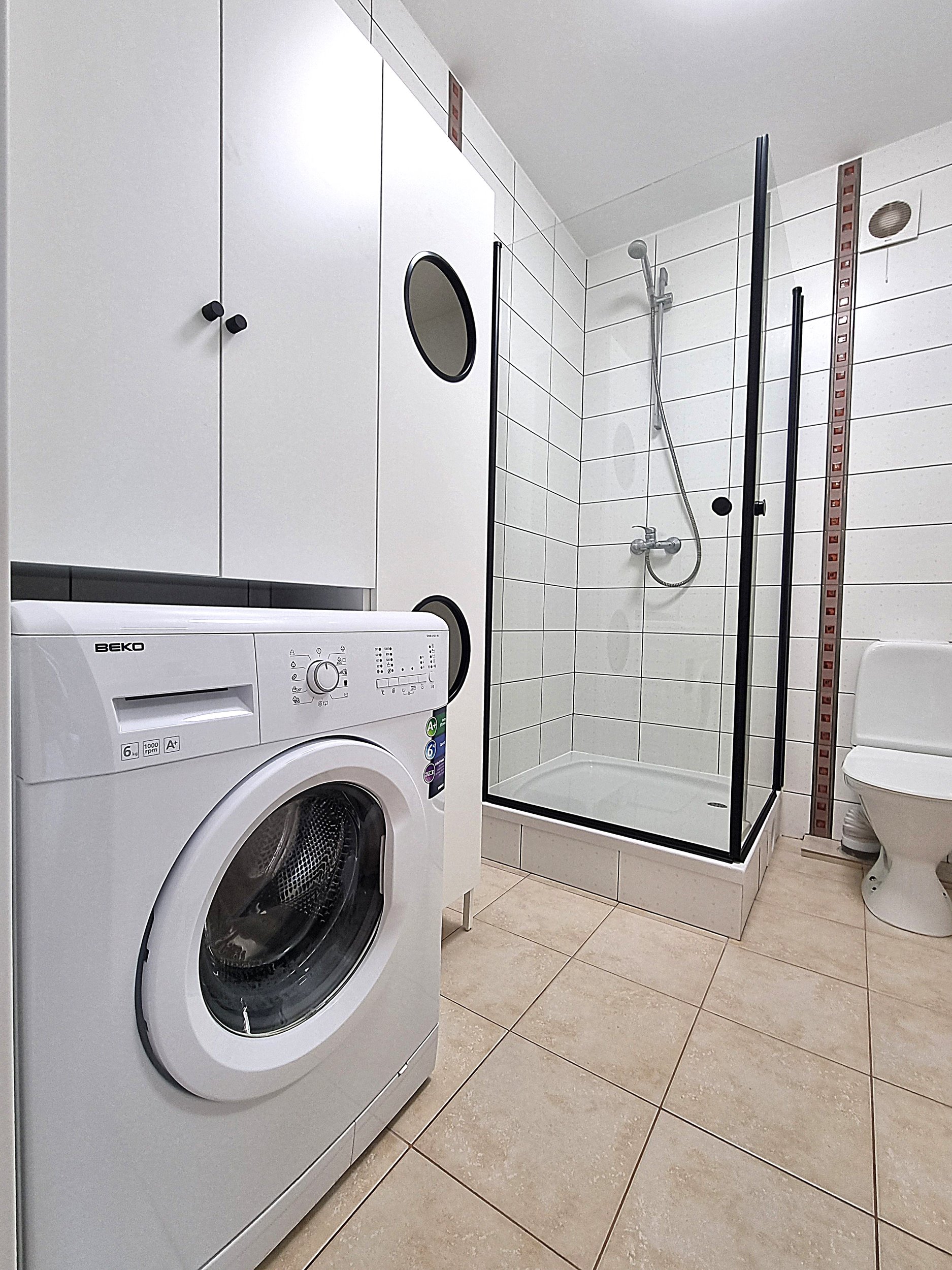 Butas po kosmetinio remonto: išdažytos sienos ir lubos, pakeista grindų danga, vonioje įrengta nauja dušo kabina ir vonios baldai, svetainėje-nauja sofa.