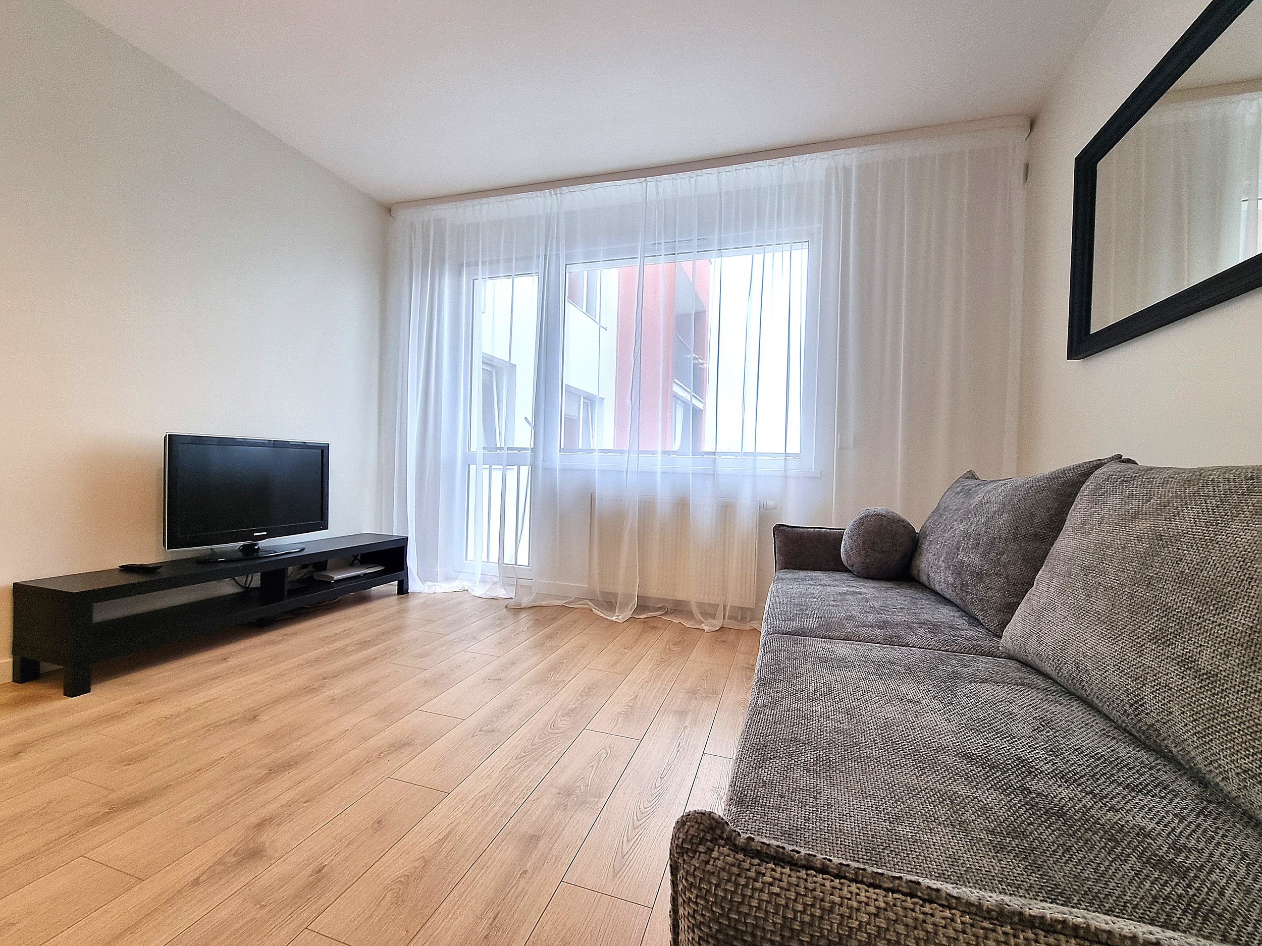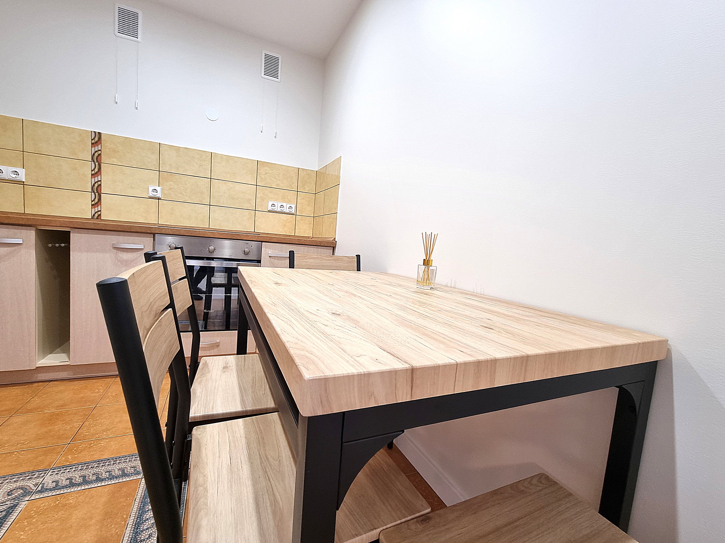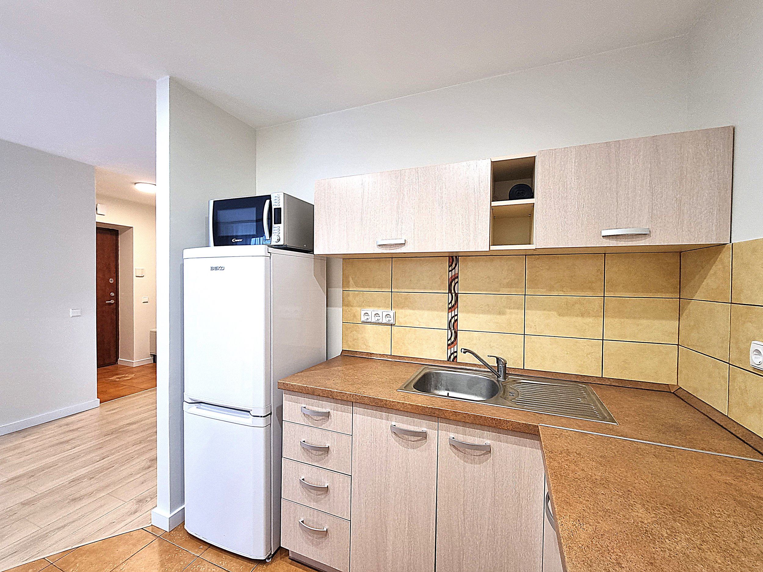 • Butas nuomojamas su visais nuotraukose matomais baldais ir buitine technika (orkaitė, šaldytuvas, mikrobangų krosnelė, skalbimo mašina), minimaliais virtuvės indais (įrankiai, lėkštės, puodeliai).