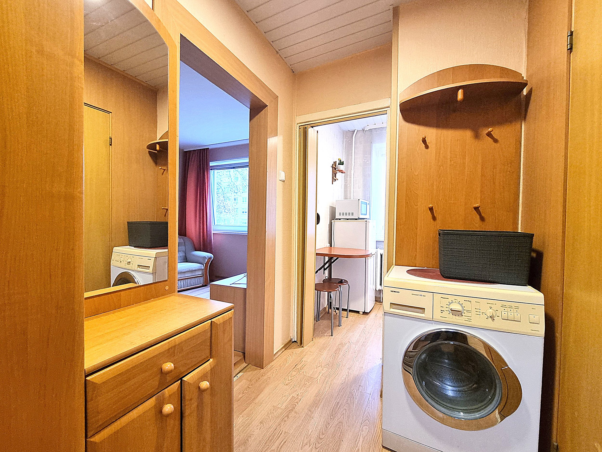 • Butas nuomojamas su visais nuotraukose matomais baldais ir buitine technika (dujų viryklė, šaldytuvas, mikrobangų krosnelė, skalbimo mašina), minimaliais virtuvės indais (įrankiai, lėkštės, puodeliai).