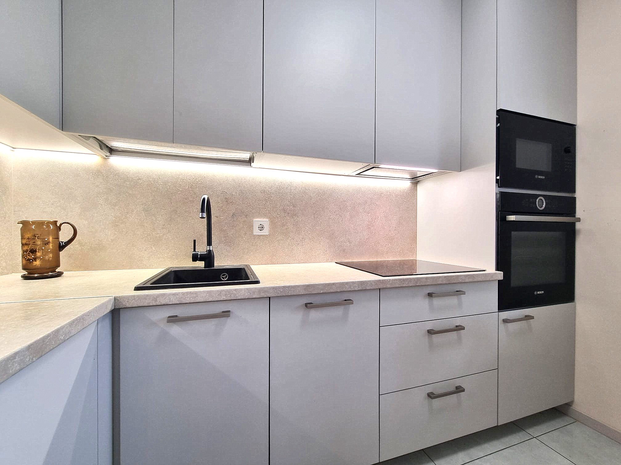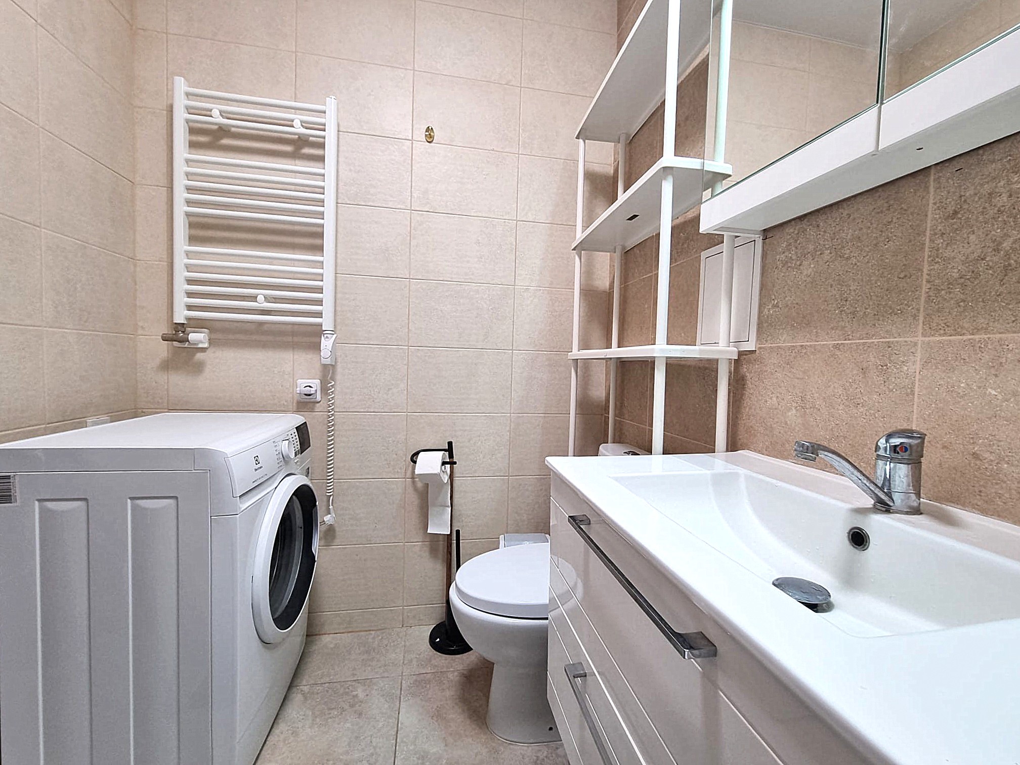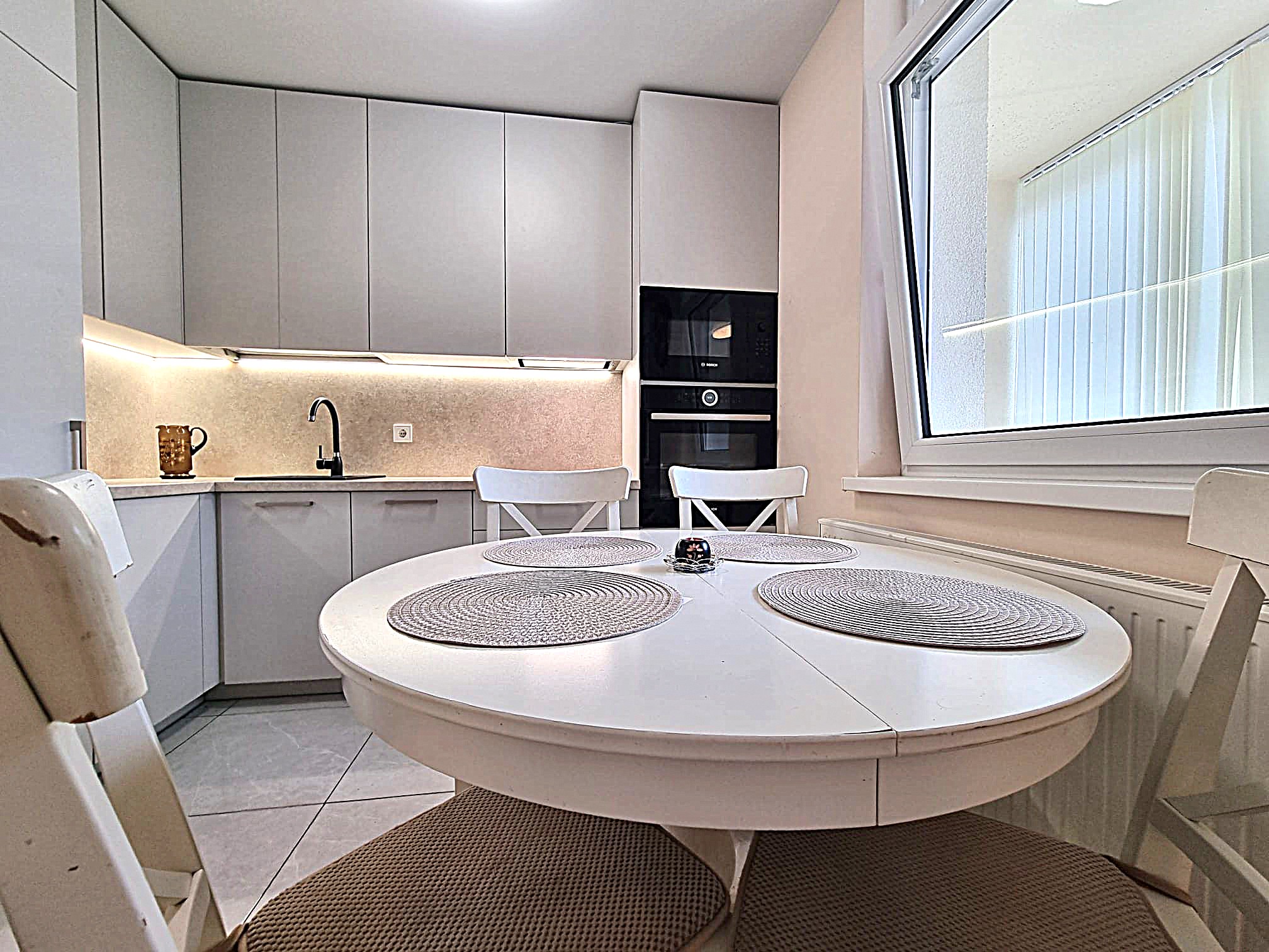 • Butas nuomojamas su visais nuotraukose matomais baldais ir buitine technika (orkaitė, šaldytuvas, indaplovė, skalbimo mašina), minimaliais virtuvės indais (įrankiai, lėkštės, puodeliai).
