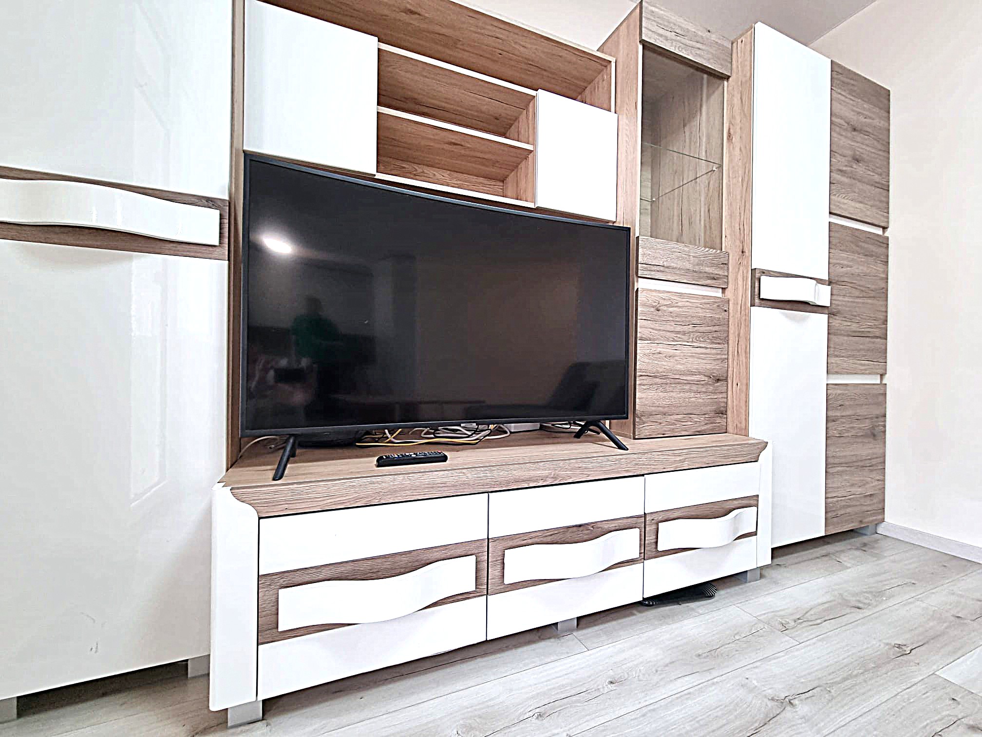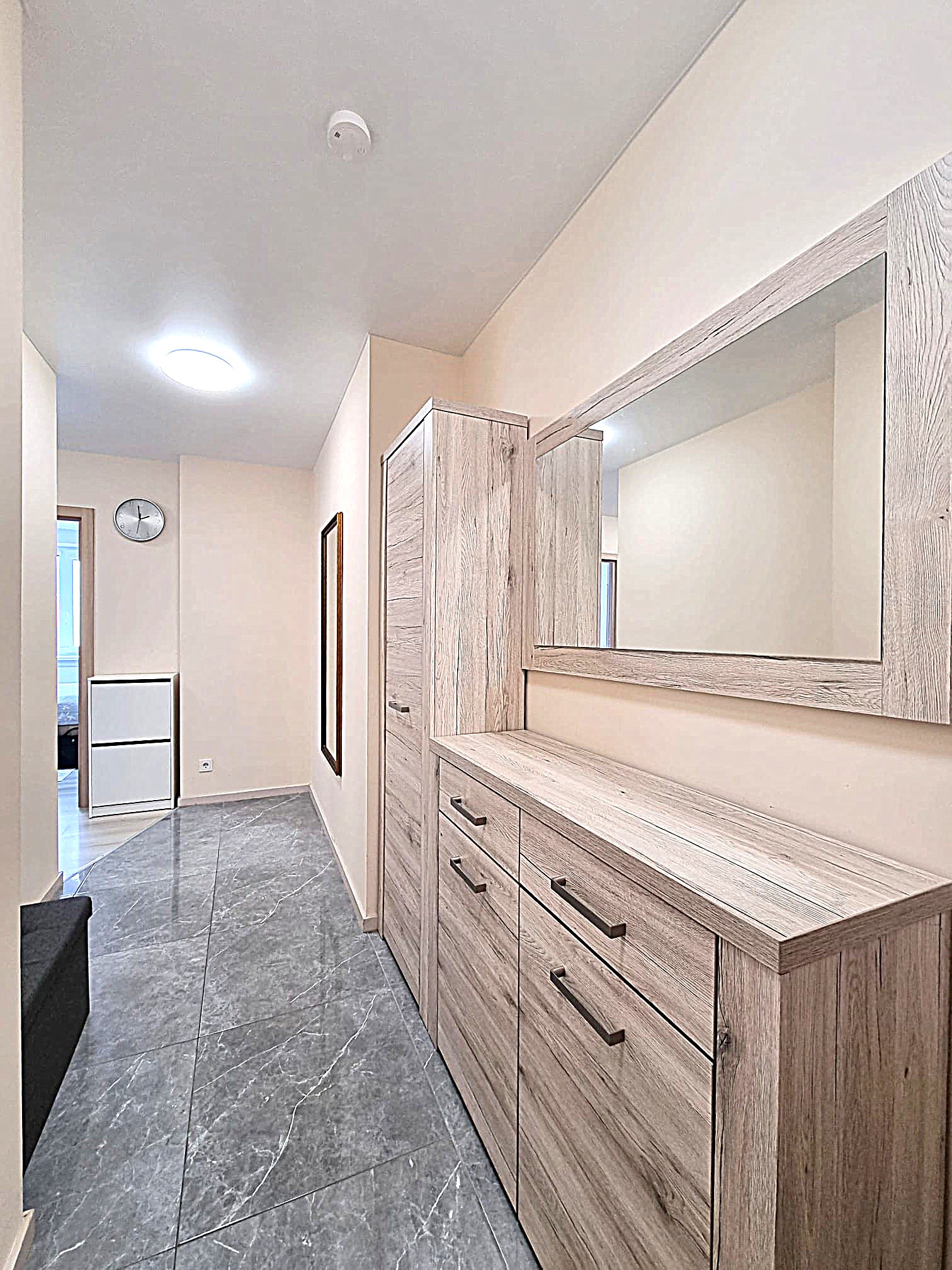 • Prieškambaryje erdvi sieninė spinta su komodu.