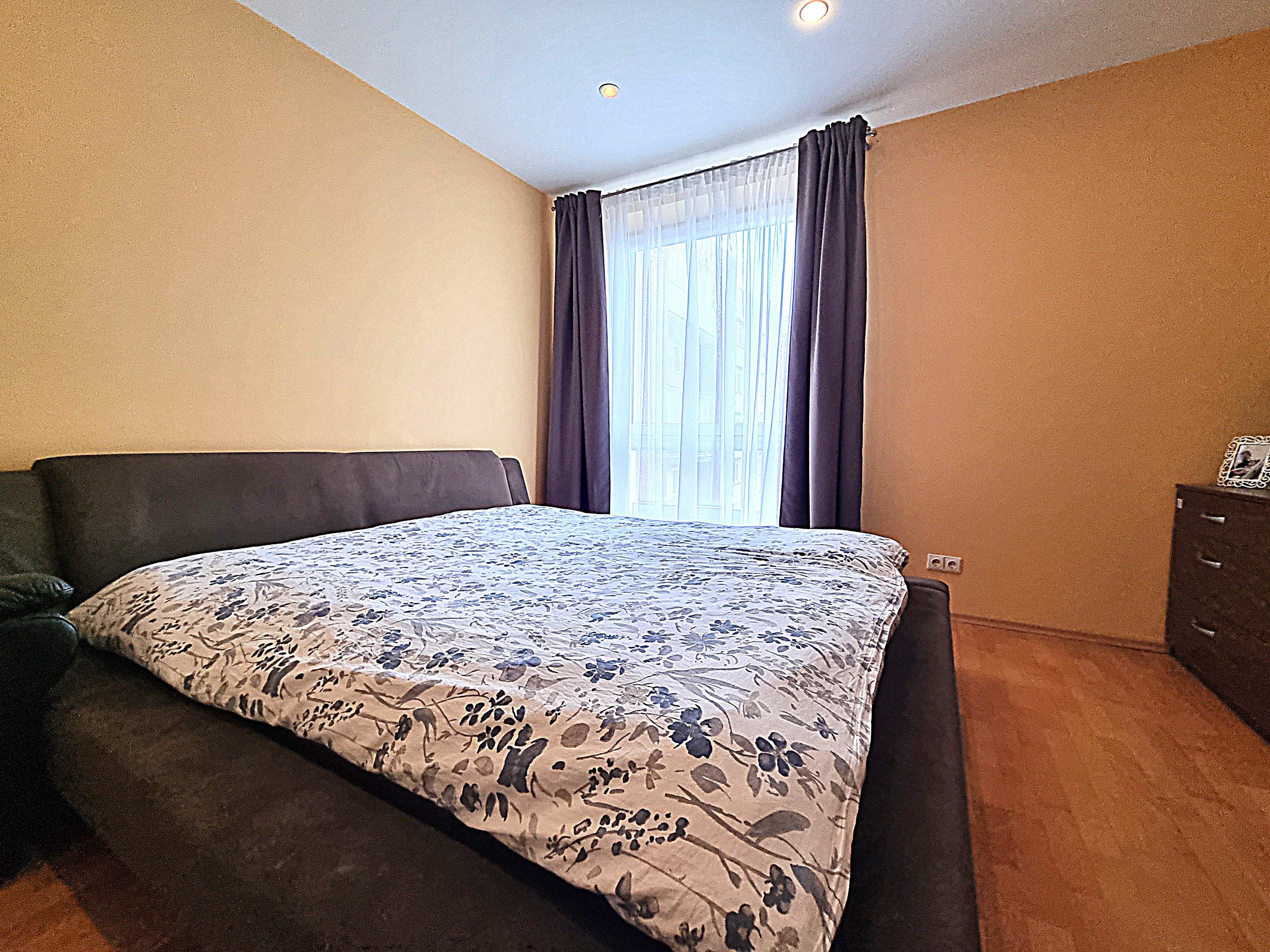 ĮRENGIMAS: • Svetainė sujungta kartu su virtuve. • Butas nuomojamas su visais nuotraukose matomais baldais ir buitine technika (orkaitė, šaldytuvas, mikrobangų krosnelė, skalbimo mašina), minimaliais virtuvės indais (įrankiai, lėkštės, puodeliai). • Prieškambaryje erdvi sieninė spinta iki pat lubų. • Miegamajame nauja dvigulė lova su nauju čiužiniu. • Vonioje yra skalbimo mašina.