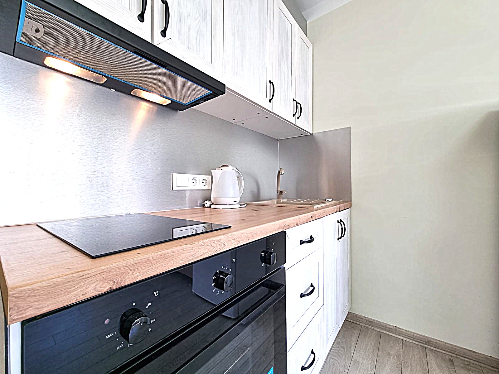 • Butas nuomojamas su visais nuotraukose matomais baldais ir buitine technika (orkaitė, šaldytuvas, mikrobangų krosnelė, skalbimo mašina), minimaliais virtuvės indais (įrankiai, lėkštės, puodeliai).