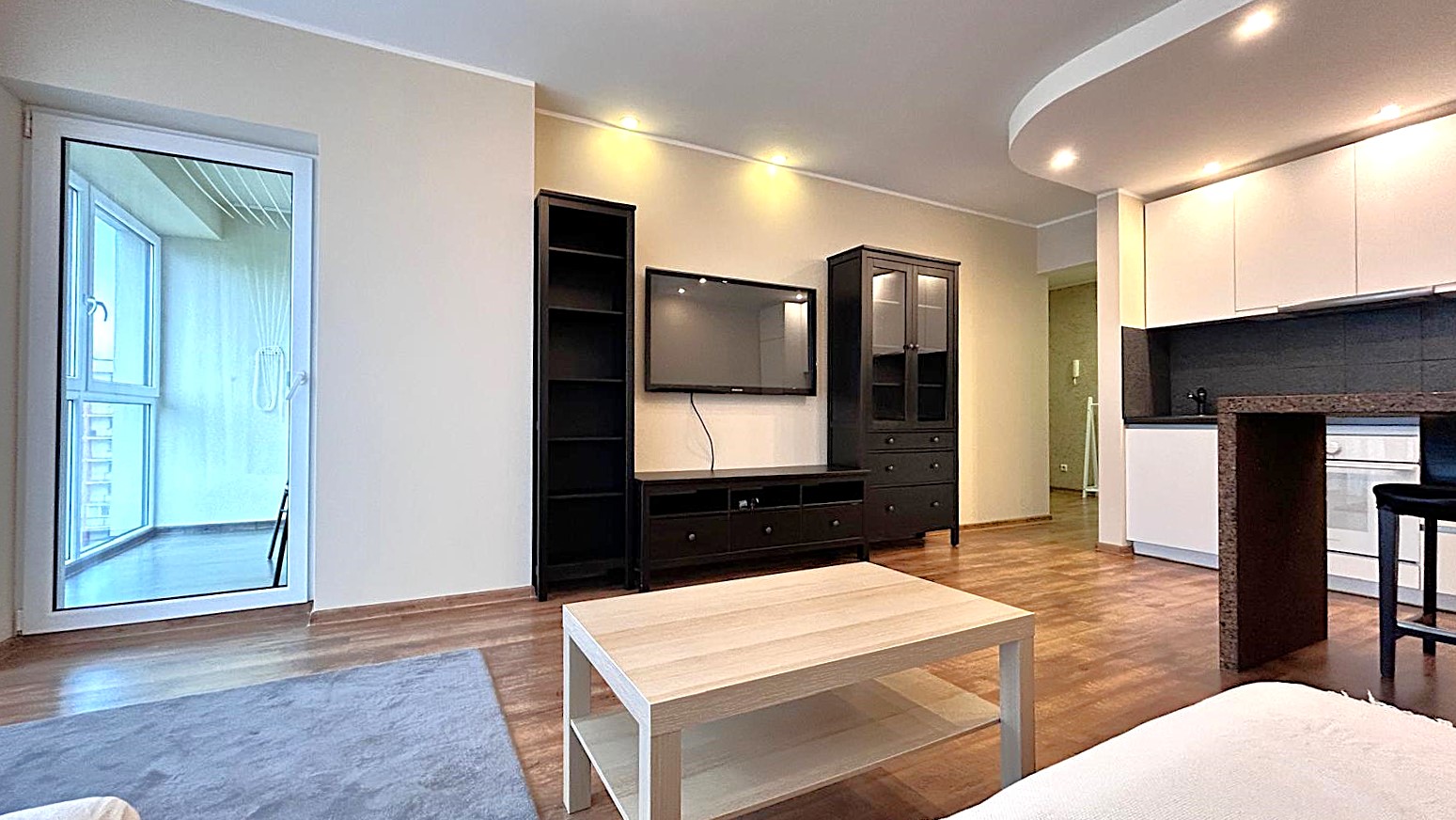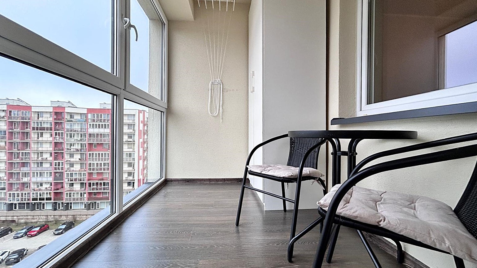 Butas turi privačią įstiklintą lodžiją su spinta;