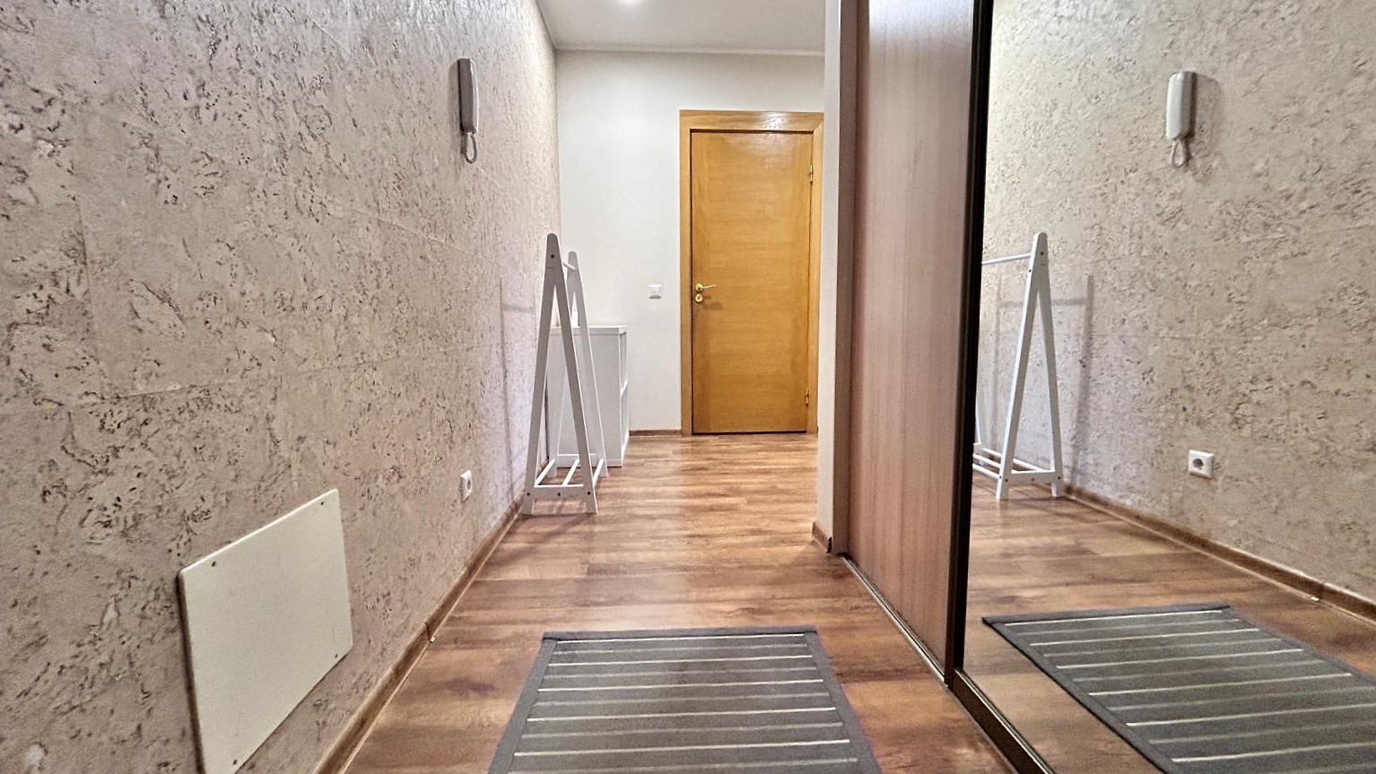 Erdvios įmontuojamos spintos miegamąjame ir prieškambaryje;
