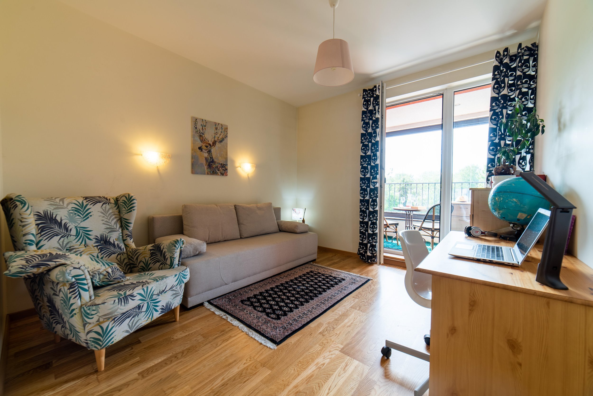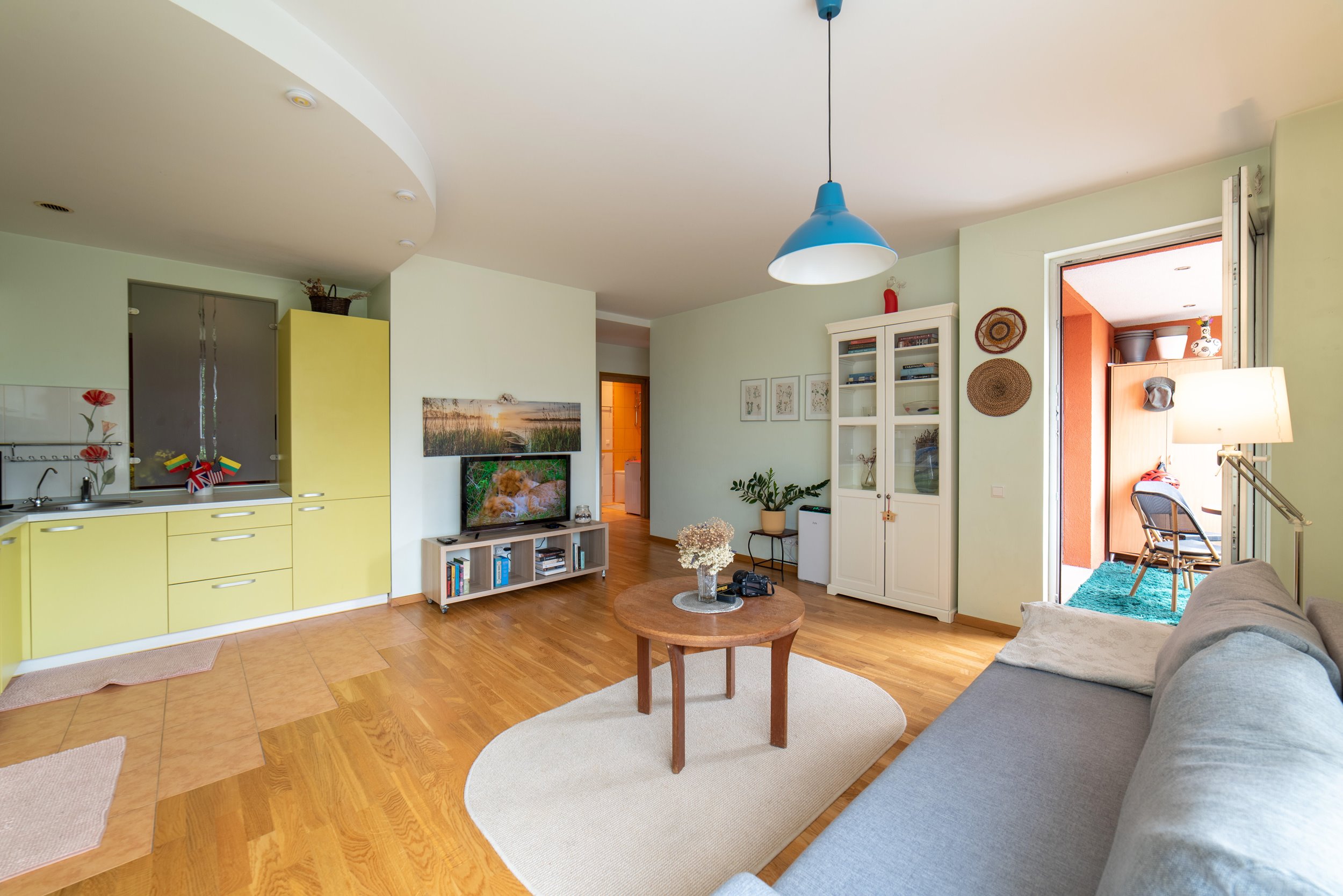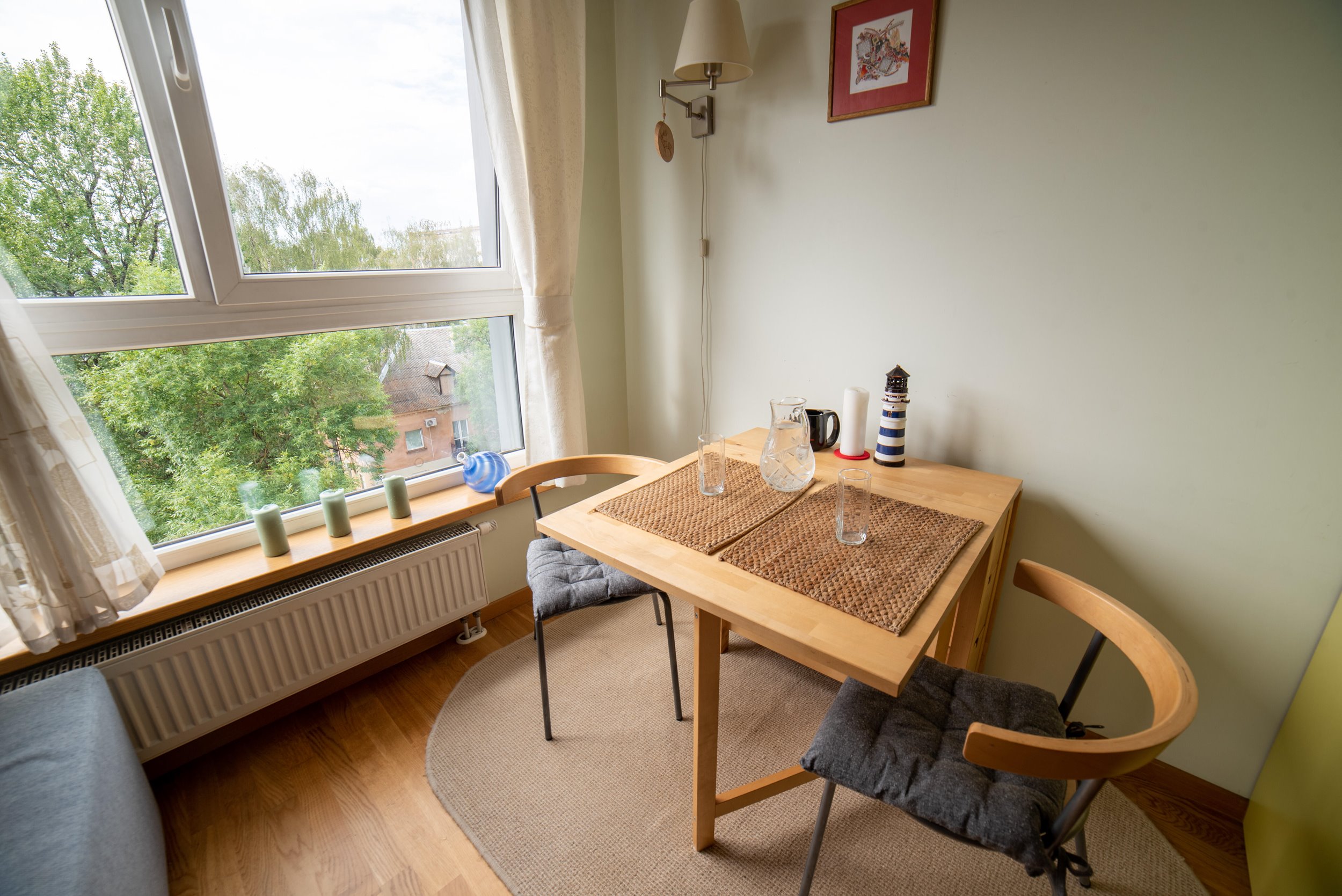 Lodžijoje galėsite gerti kavą mėgaudamiesi vakarine saule ir gėrėdamiesi Vilniaus vaizdais;