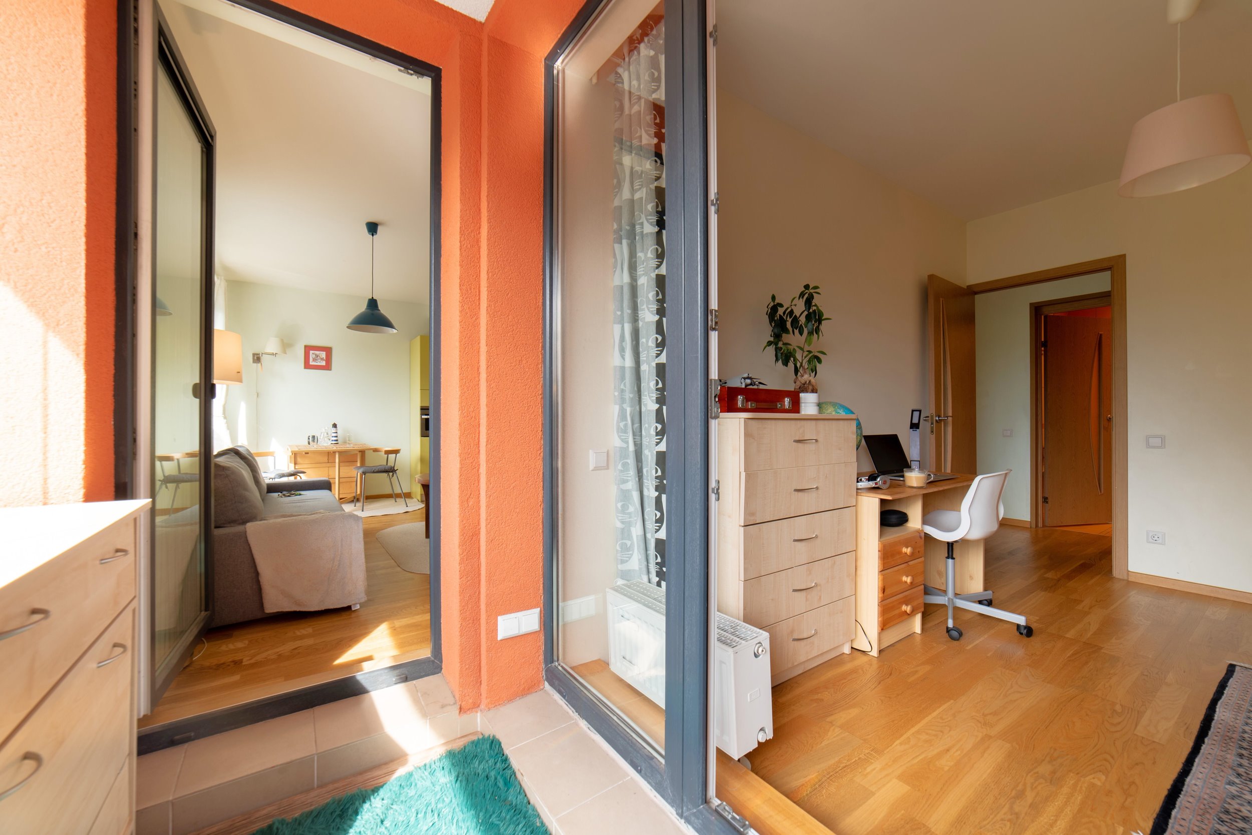 Įstiklinta lodžija į kurią patenkama iš abiejų kambarių (įvesta elektra, apšvietimas);