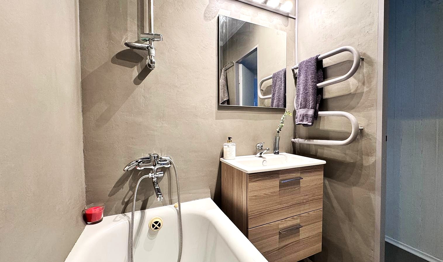 • Skoningos interjero detalės – dekoratyvinis betonas koridoriuje, vonioje ir WC.