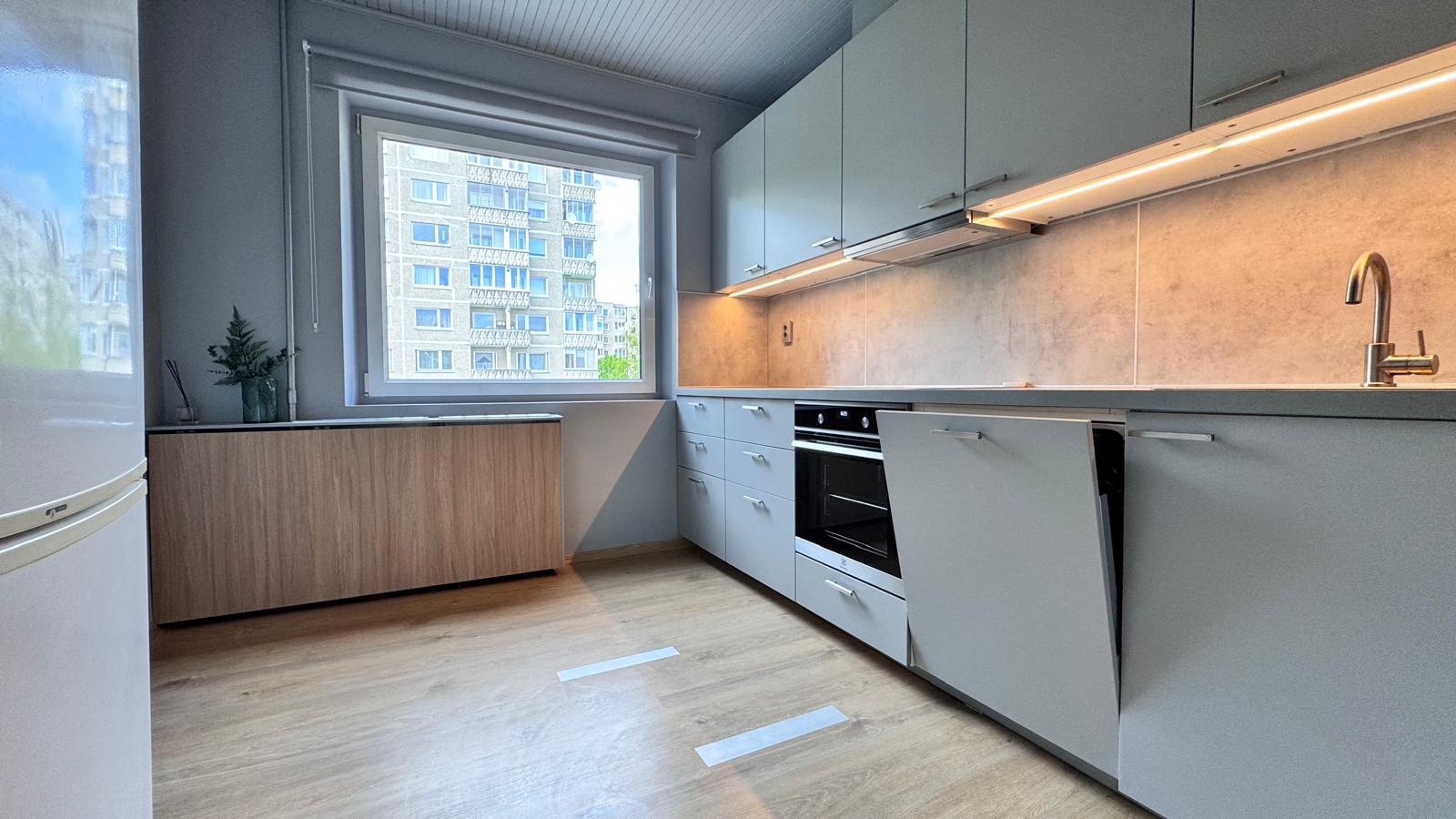 • Nauja virtuvė – baldų komplektas, indukcinė kaitlentė, elektrinė orkaitė, didelė indaplovė.
