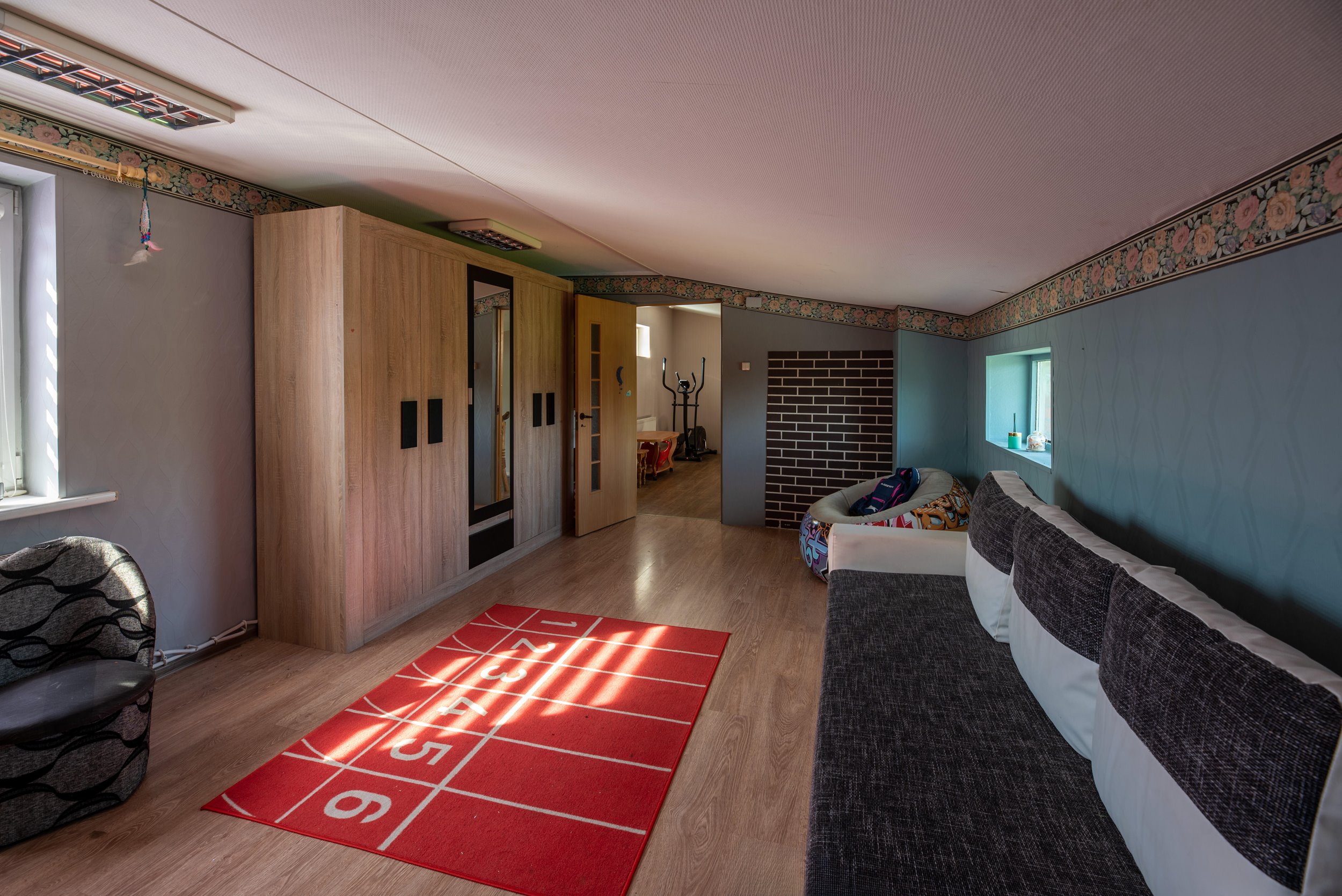 Į namą vanduo tiekiamas iš gręžinio. Kanalizacija – vietinė.