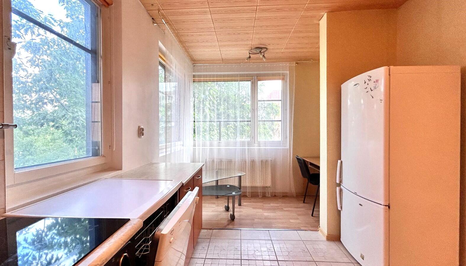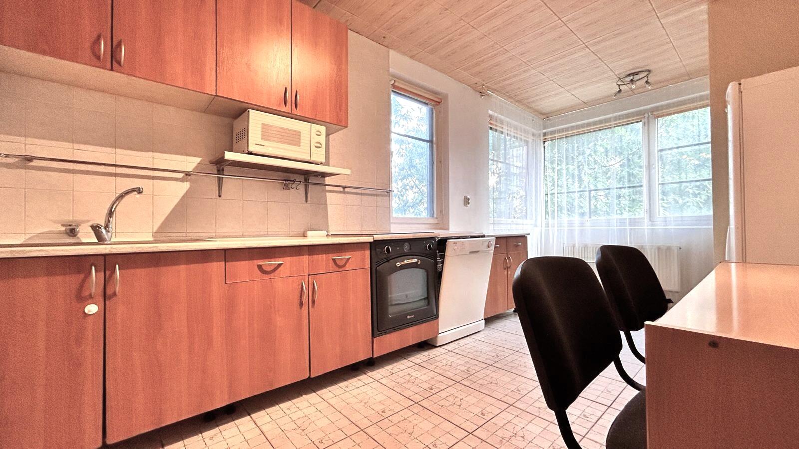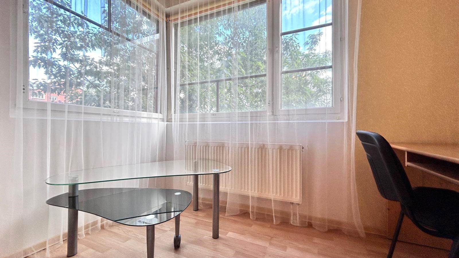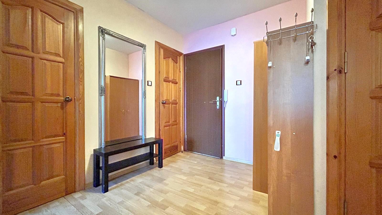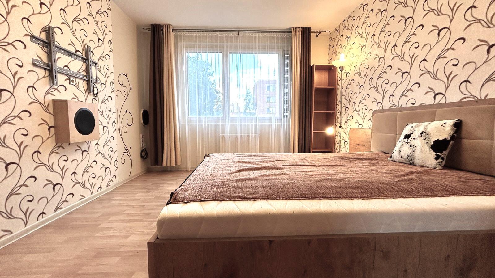 Labai erdvi virtuvė (yra indaplovė), įrengta kartu su stilingu valgomuoju ir darbo/mokslo vieta, atskiras kambarys gyvenimui, miegui, darbui ar mokymuisi iš namų (šeimininkai pastatys ir sutvarkys dvi patogias viengules lovas), modernus miegamasis su kokybiška instaliacija ir garso aparatūra namų kino sistemai (esant poreikiui pakabins televizorių). Prieškambaryje talpi įmontuota spinta. Vonia atskirai nuo WC, kuriame taip pat įrengtas praustuvas. Priedo labai erdvus sandėliukas bute.