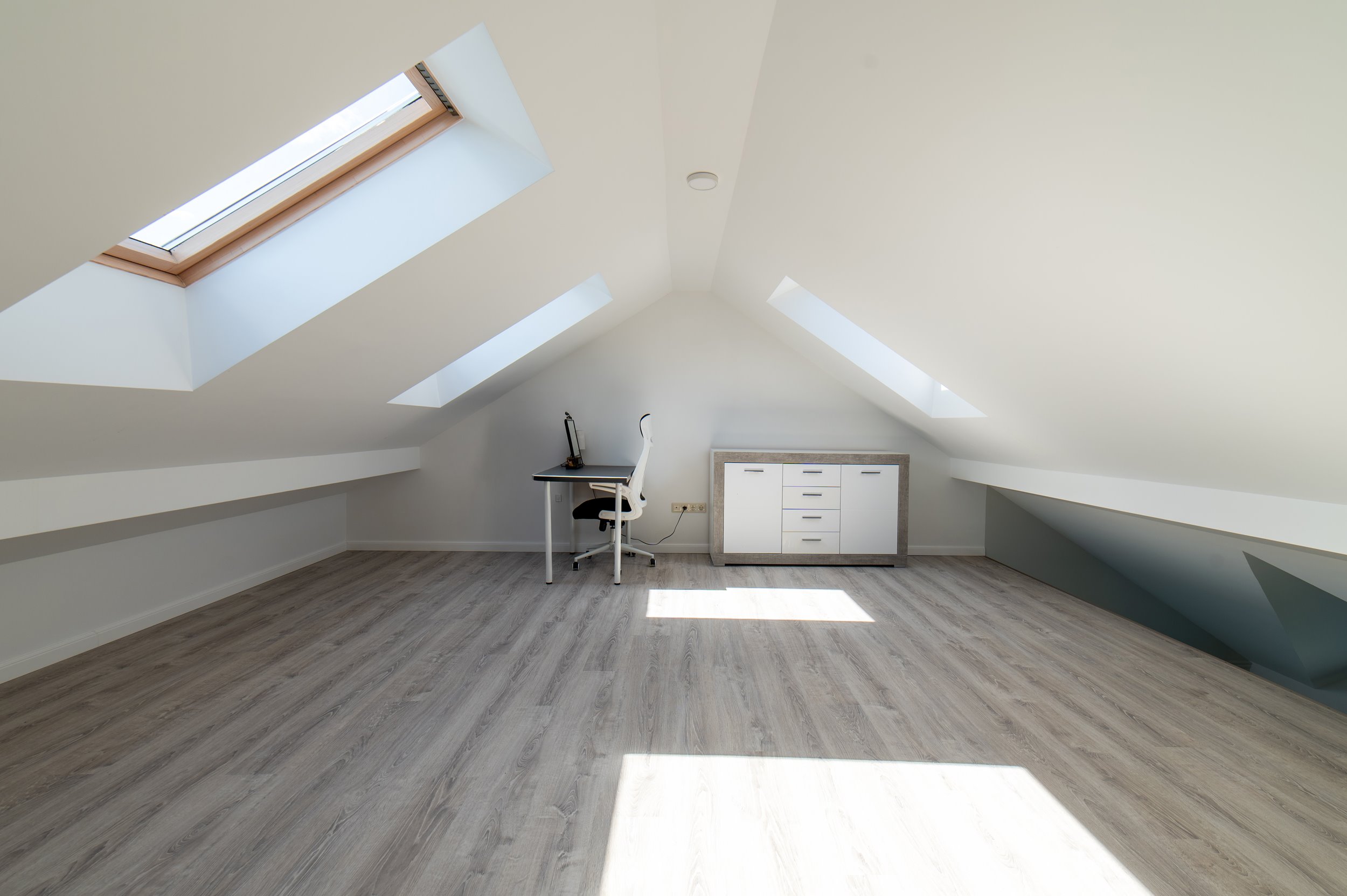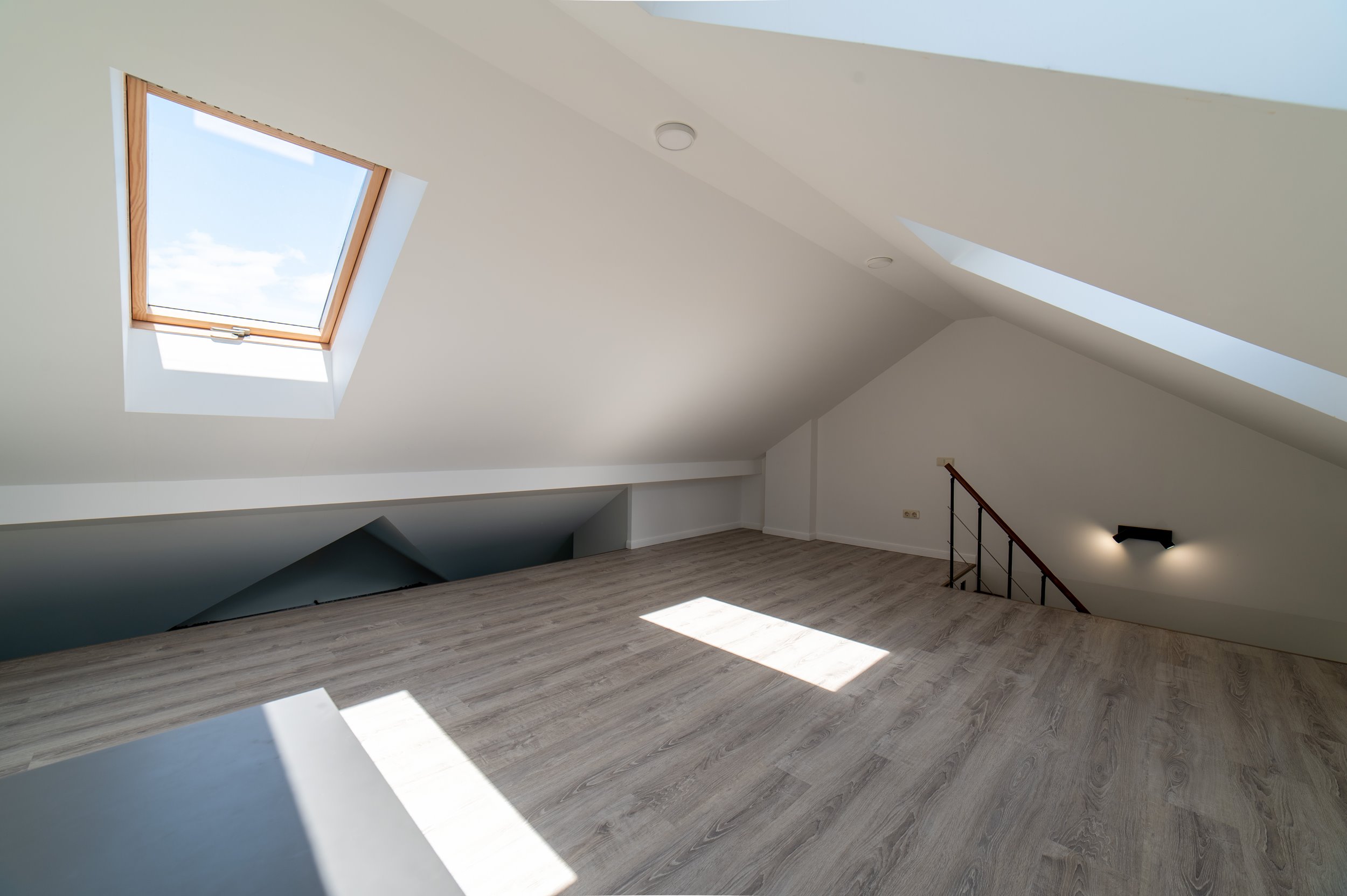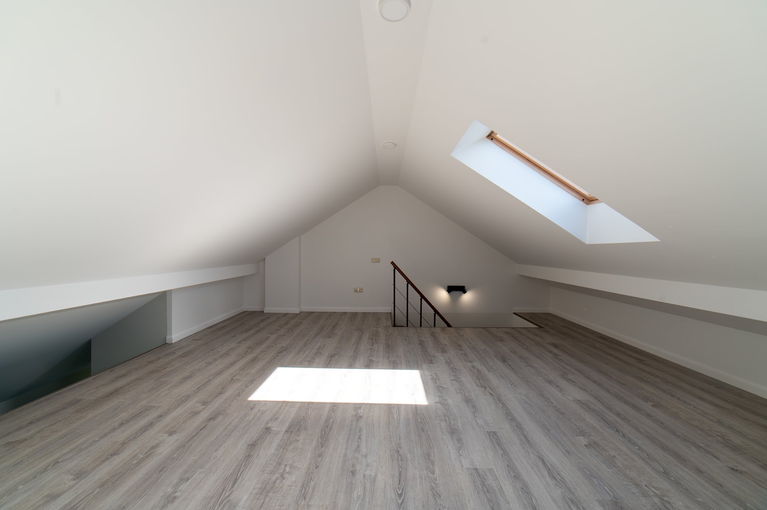 Iš svetainės veda laiptai į pastogės erdvę – šviesią, stoglangiais apšviestą patalpą, kuri gali tapti namų biuru, kūrybine studija, papildomu poilsio kampeliu ar net karališku miegamuoju.