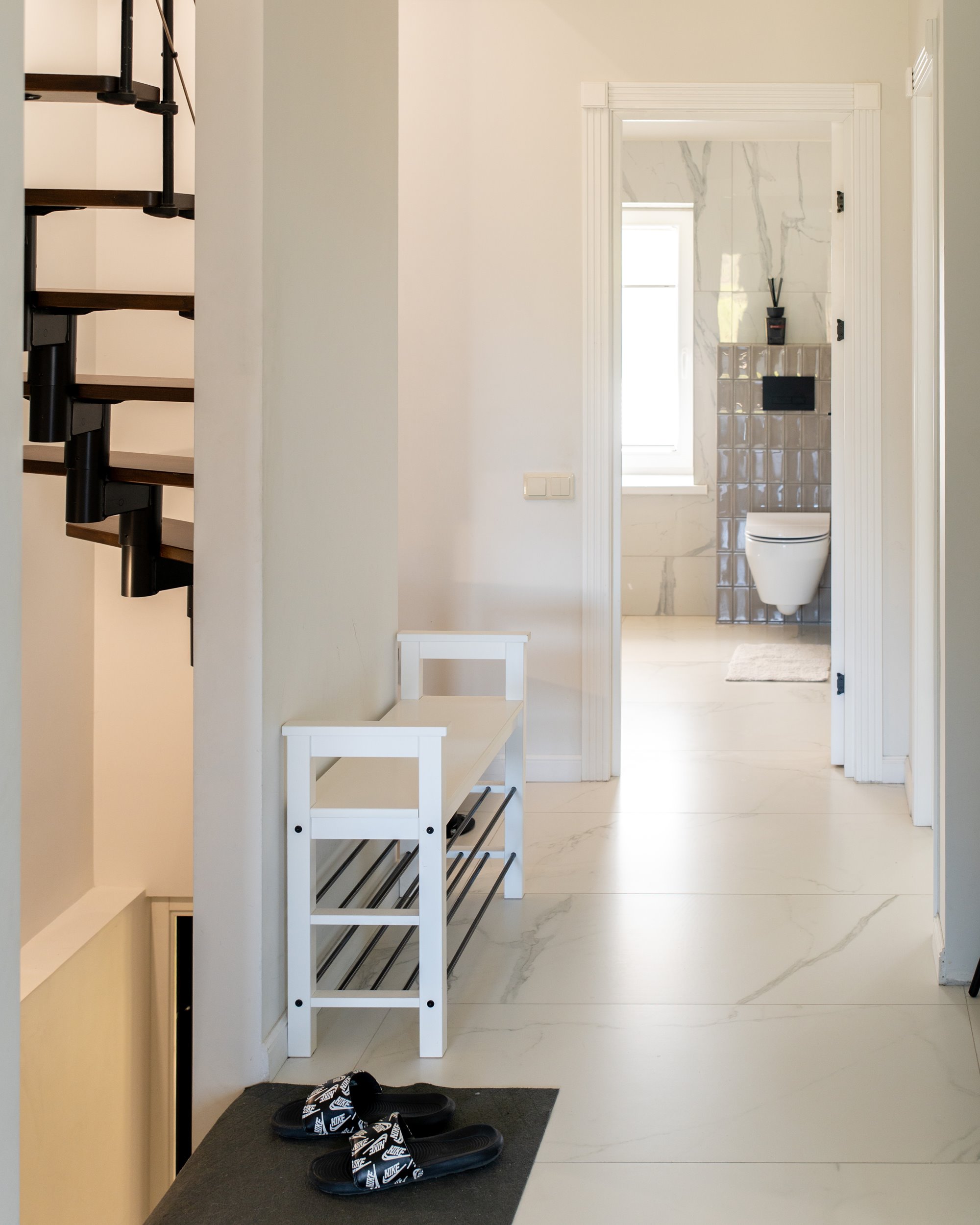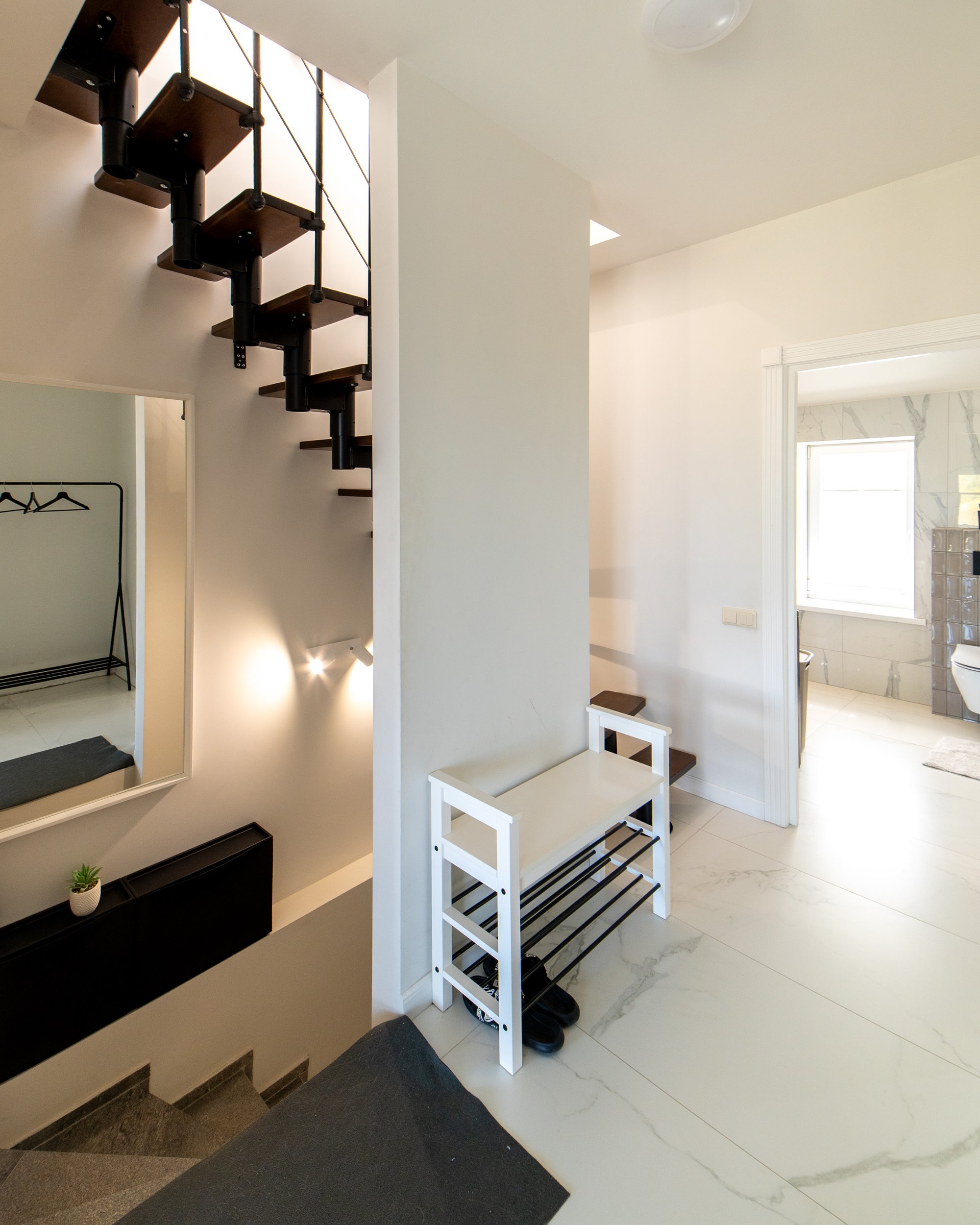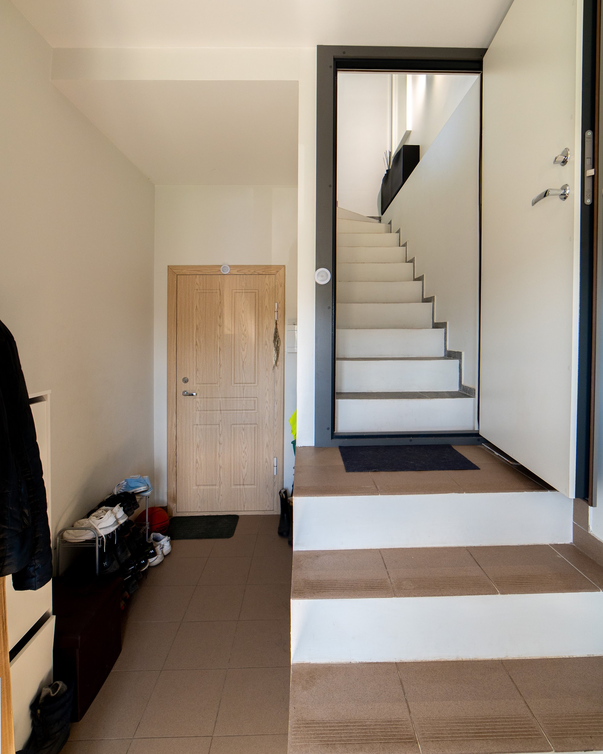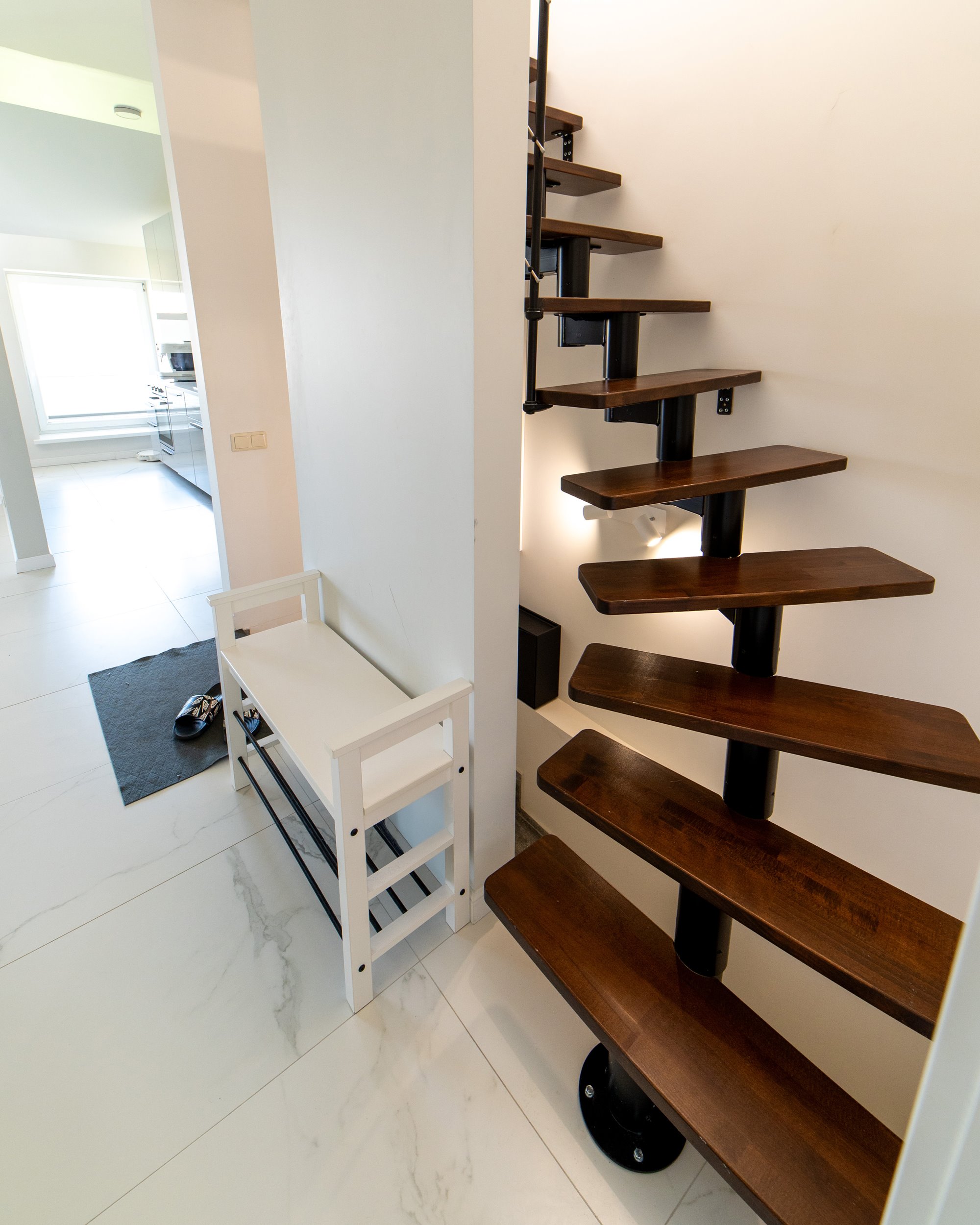 Iš namo bendro su kaimynu holo, pusiaukelėje į antrą aukštą pakilus laiptais – Jūsų privačios erdvės durys. Už jų – kelios papildomos pakopos ir Jūs pasitinkami šviesios, erdvios gyvenamosios zonos.
