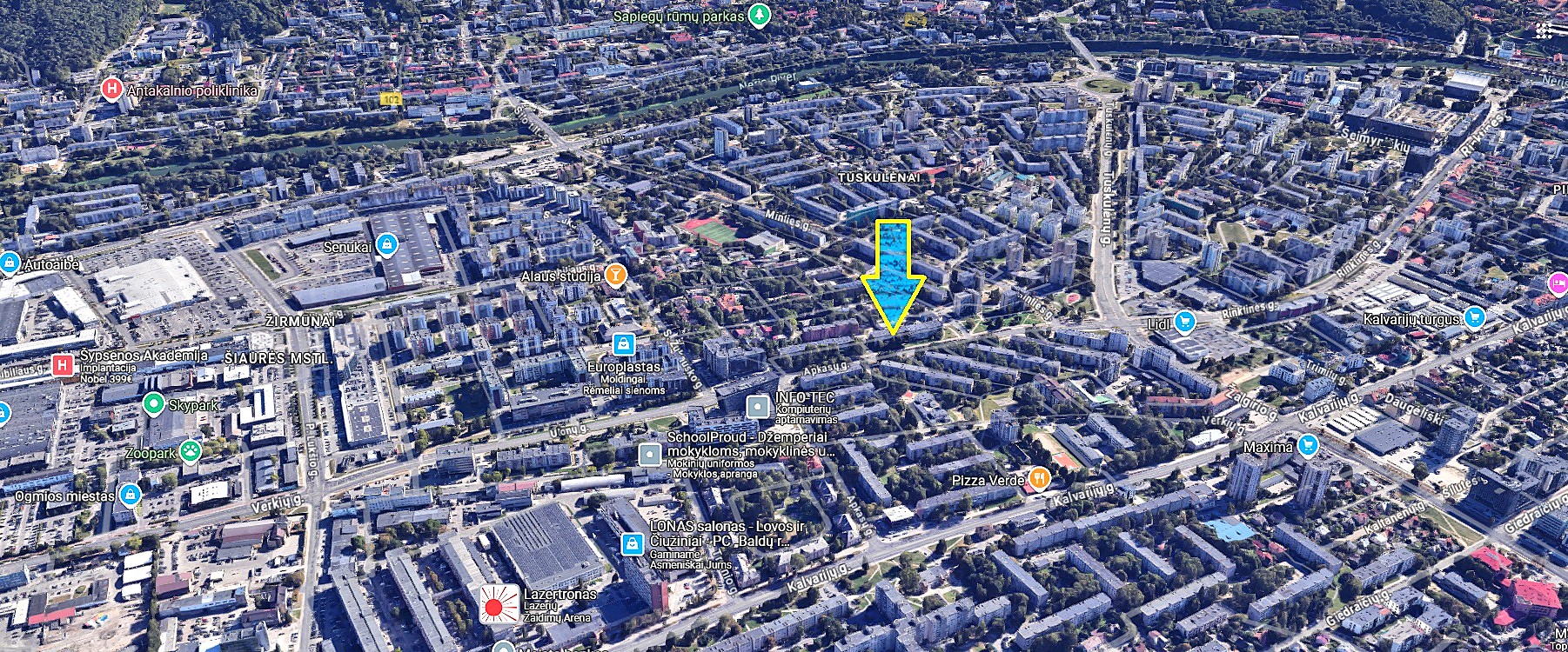 - Patogi lokacija tarp Šnipiškių ir Žirmūnų (Senamiestį pasieksite pėstute, netoli Neries upė, Kalvarijų turgus, geras susisiekimas su visais Vilniaus rajonais, šalia prekybos centrai, gydymo įstaigos, vaikų darželiai, mokyklos, degalinės ).