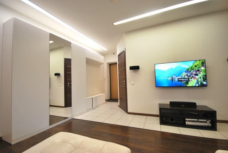 Kitchen with universal chest of drawers for all utensils, one bedroom, cozy living room with video and audio equipment. Comfortable bath with shower cabin in one space with WC. A spacious built-in wardrobe in the bedroom and a multi-functional wardrobe in the hall.