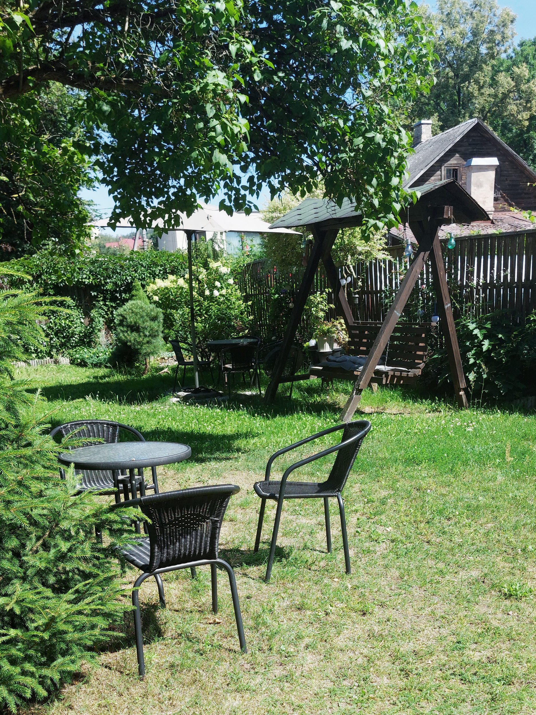 Šalia namo gražiai įrengtas privatus kiemas su butui priklausančiu staliuku ir kėdėmis poilsio zonoje, kuri puikiai tinka jaukiems pusryčiams bei ramiems vakarams. Kieme taip pat įrengtos parkavimo vietos, kur galima palikti automobilį. Esant poreikiui galima išsipirkti parkavimo abonementą antram automobiliui gatvėje. Kiemas su automatiniais vartais. Kaimynai ramūs, tylūs ir draugiški.