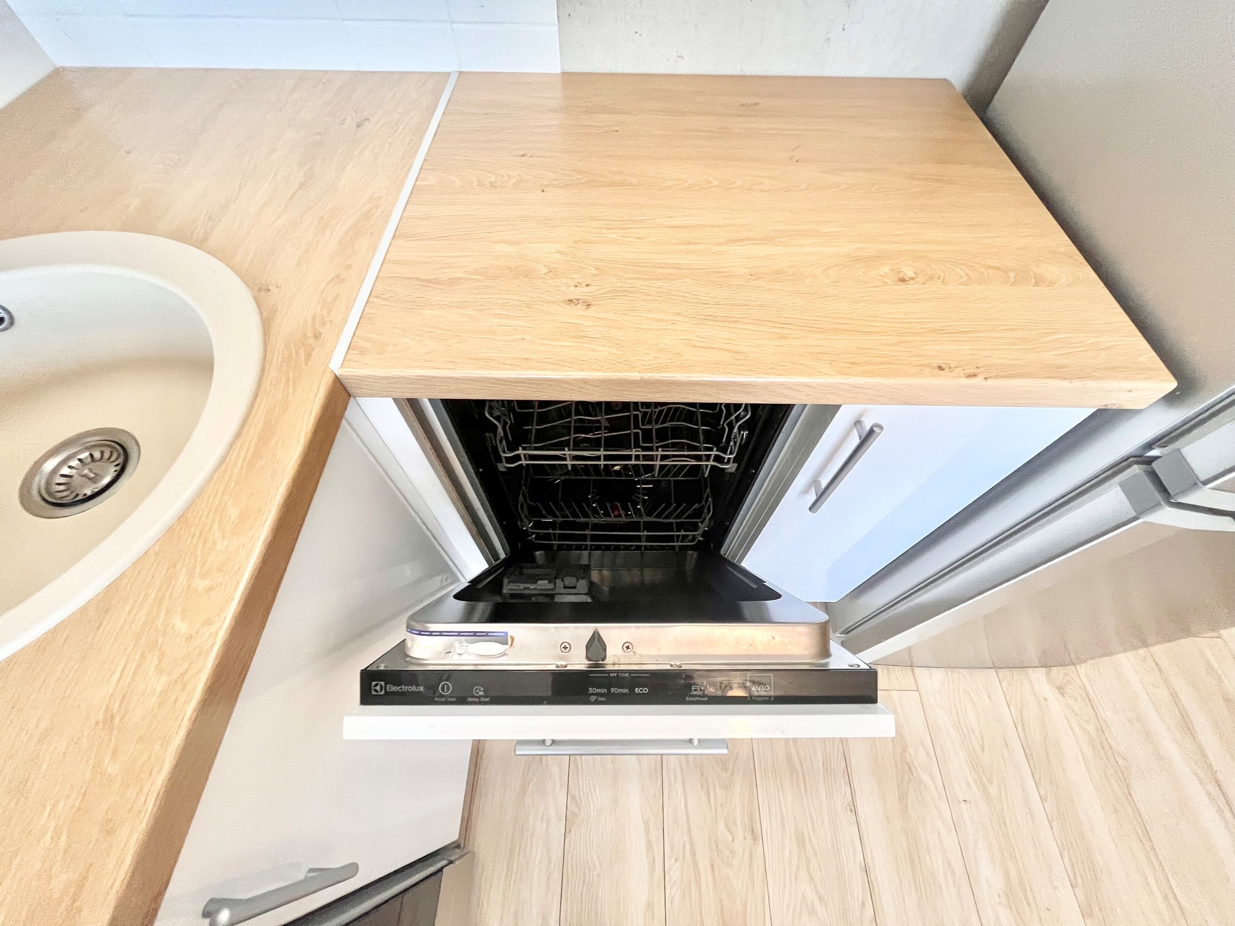 – Patogiai išplanuoti du kambariai – svetainė su virtuve ir atskiras miegamasis – Multifunkcinė skalbimo mašina su džiovykle – Indaplovė – daugiau laiko sau, mažiau buities rūpesčių – Dideli langai – daug natūralios šviesos – Tvarkingas, prižiūrėtas namas su liftu