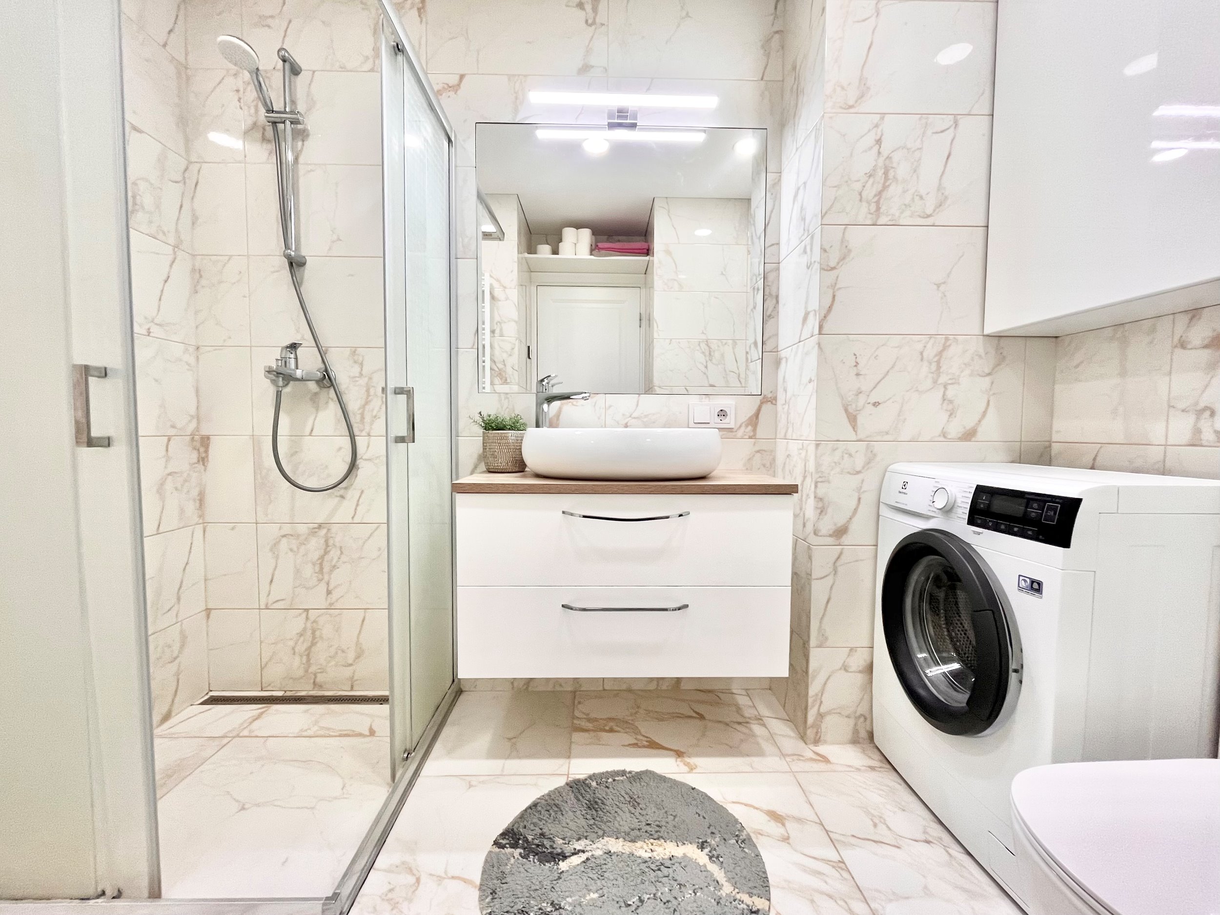 Pagrindiniai privalumai: – Šviesus ir jaukus 1,5 kambario butas su erdviu balkonu – Pilnai įrengtas: yra skalbimo mašina, indaplovė – 2017 m. statyba, ekonomiškas namas – Liftas – patogumas kasdienai